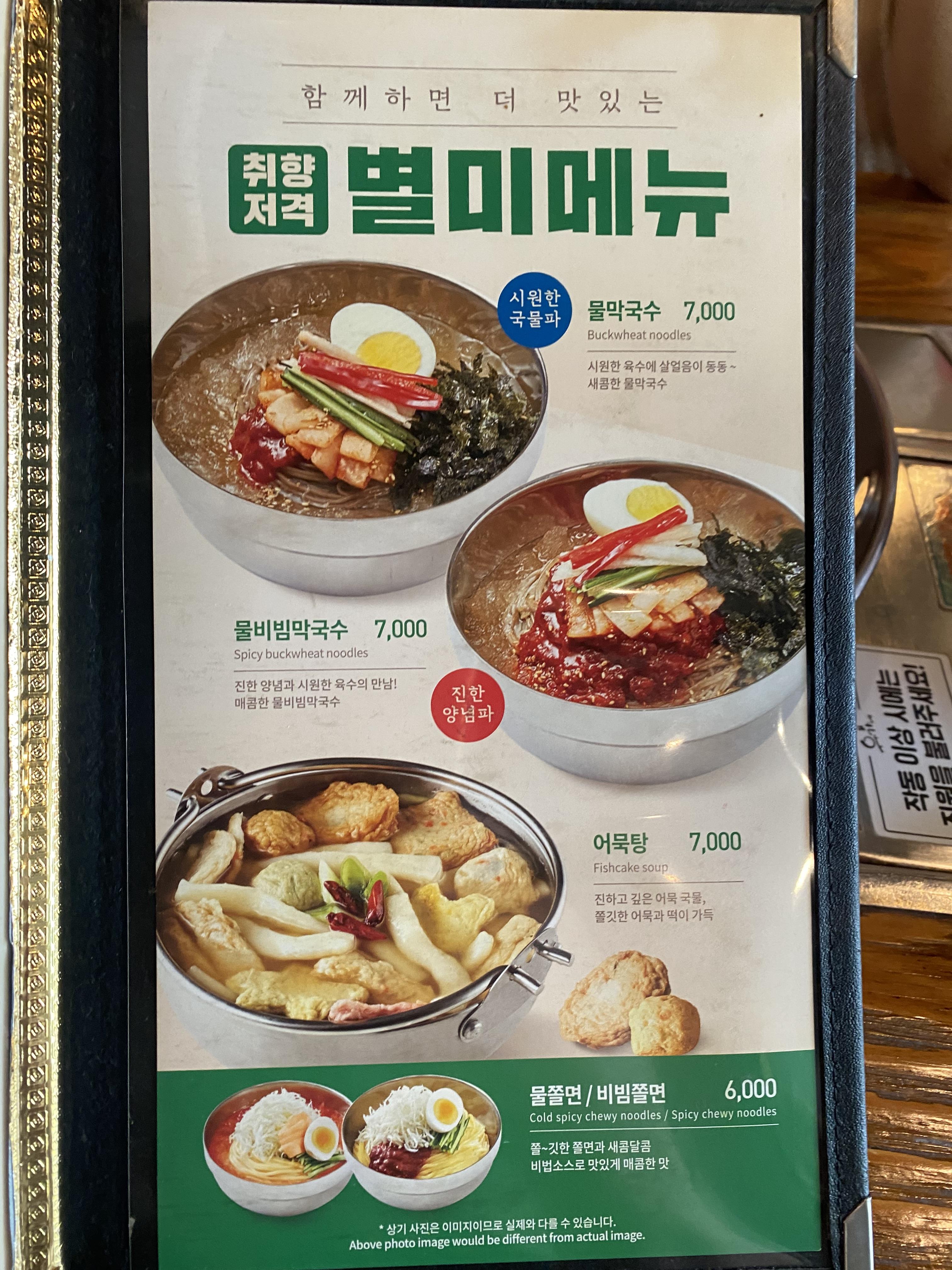 찜닭 갈비까지 있다니!!!! 선택 장애가 올려고 합니다ㅠㅠ 어우.... 더운 여름엔 시원한 물막국수도 괘아늘듯.