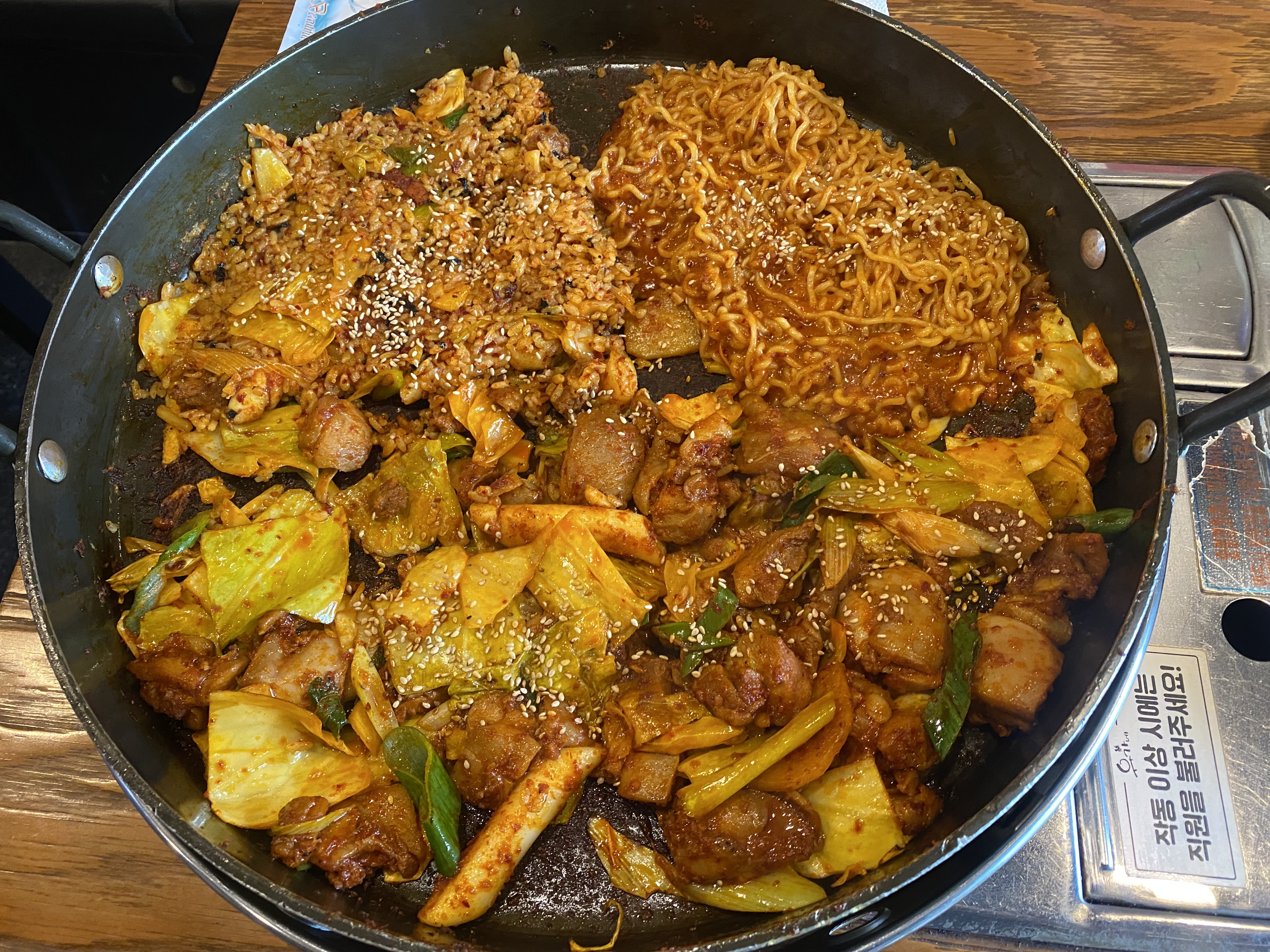 쨔잔~~ 옛날 닭갈비가 아닙니데이. 예전에 먹을 땐 모든 재료가 생으로 철판에 올린 상태로 알바생이 직접 조리를 해주는 방식이었는데.... 이상하게도 주문을 하고 나서 한참을 기다리니 조리가 다 된 상태에서 바로 먹기만 하면 되는 방식으로 음식이 나오네요. 맛은 뭐~ 예전보다 훨씬 맛이 좋아진 거 같았고요 결국 저희는 밥과 닭갈비는 다 먹었는데 라면 사리는 남겨야 했다는...ㅠㅠ 맵기 단계도 조절할 수 있는데 보통맛이었습니다. 요 정도 맵기면 아들도 충분히 먹을 수 있겠다는 생각이 들었네요. 다음엔 아들과 함께 먹기로 약속을 하고 각자 일터로 복귀를 했습니다. 울 동네 유가네 닭갈비 달동점 강추!!!