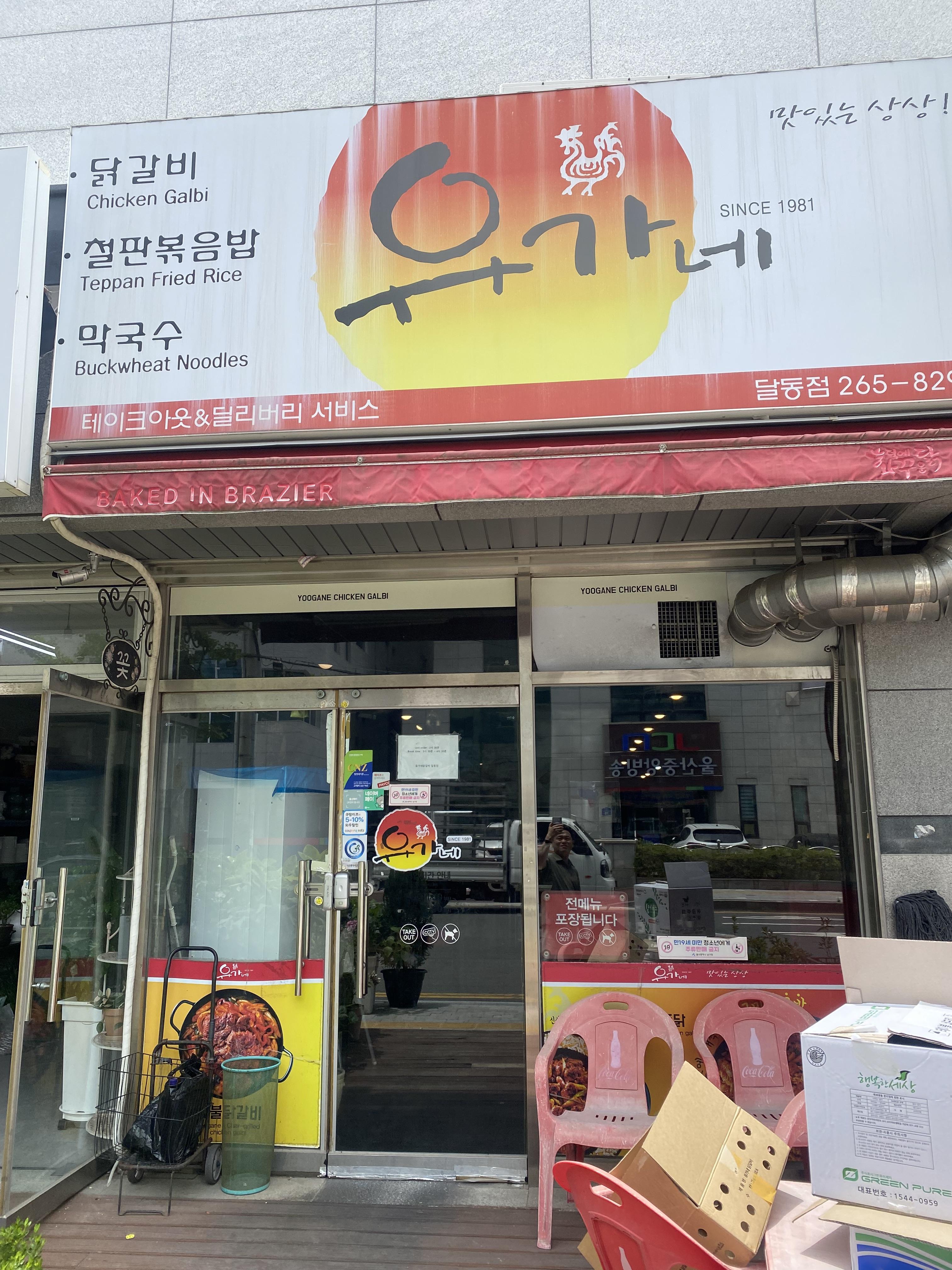 초등 공개수업하는 날이었습니다. 성공적인 공개수업을 마치고 와이프님과 아들 빼고 단둘이 동네에서 점심밥 뭐 먹지~ 하고 잠시 고민을 하다가 유가네 닭갈비가 생각났습니다. 사 년 넘게 살았는데 아들이 아직 완전 초초초 맵도리라 한 번도 가볼 생각을 못 했던 곳인데 즐겁게 방문을 했습니다. 상호는 '유가네 달동점'입니다.