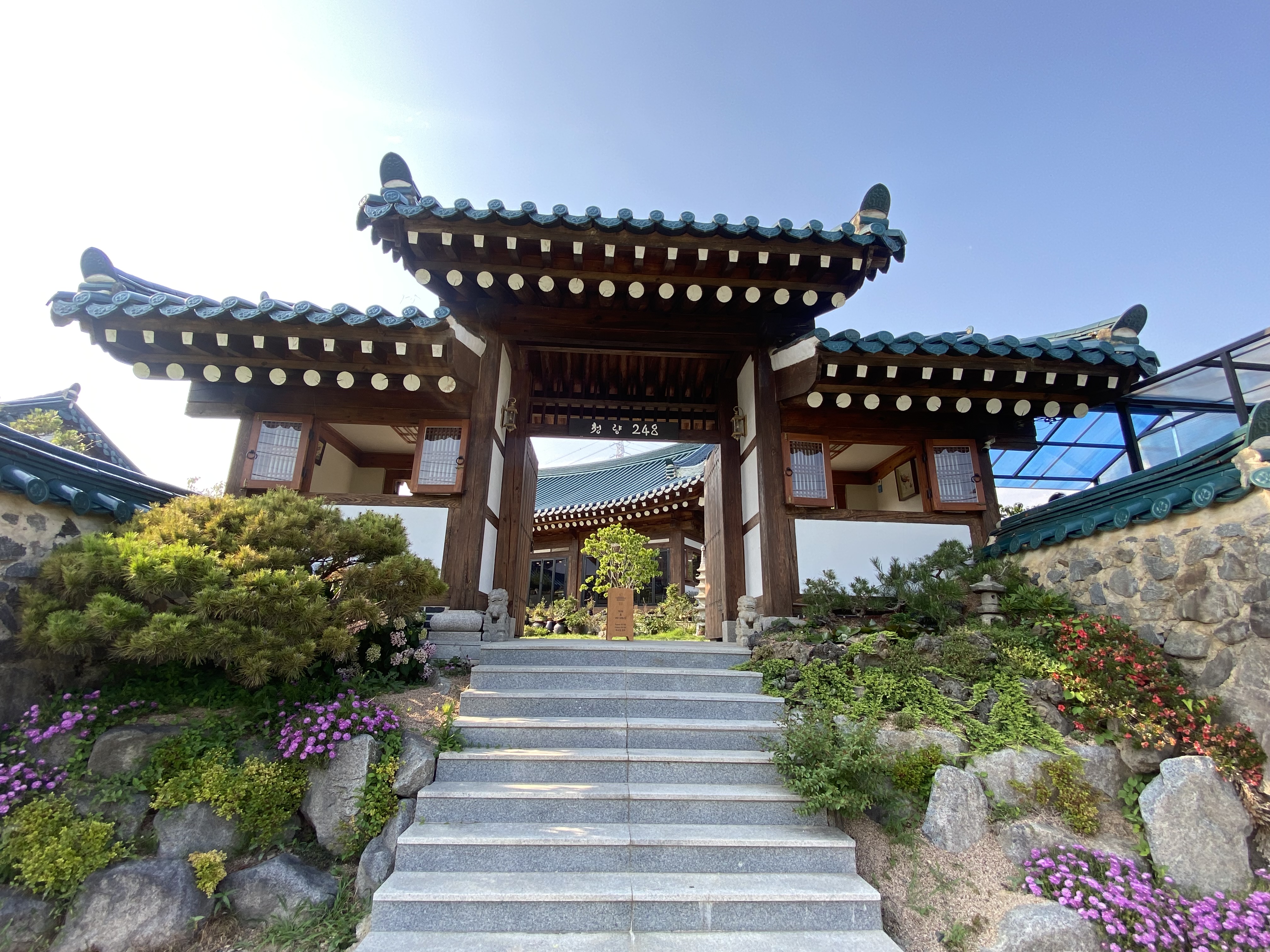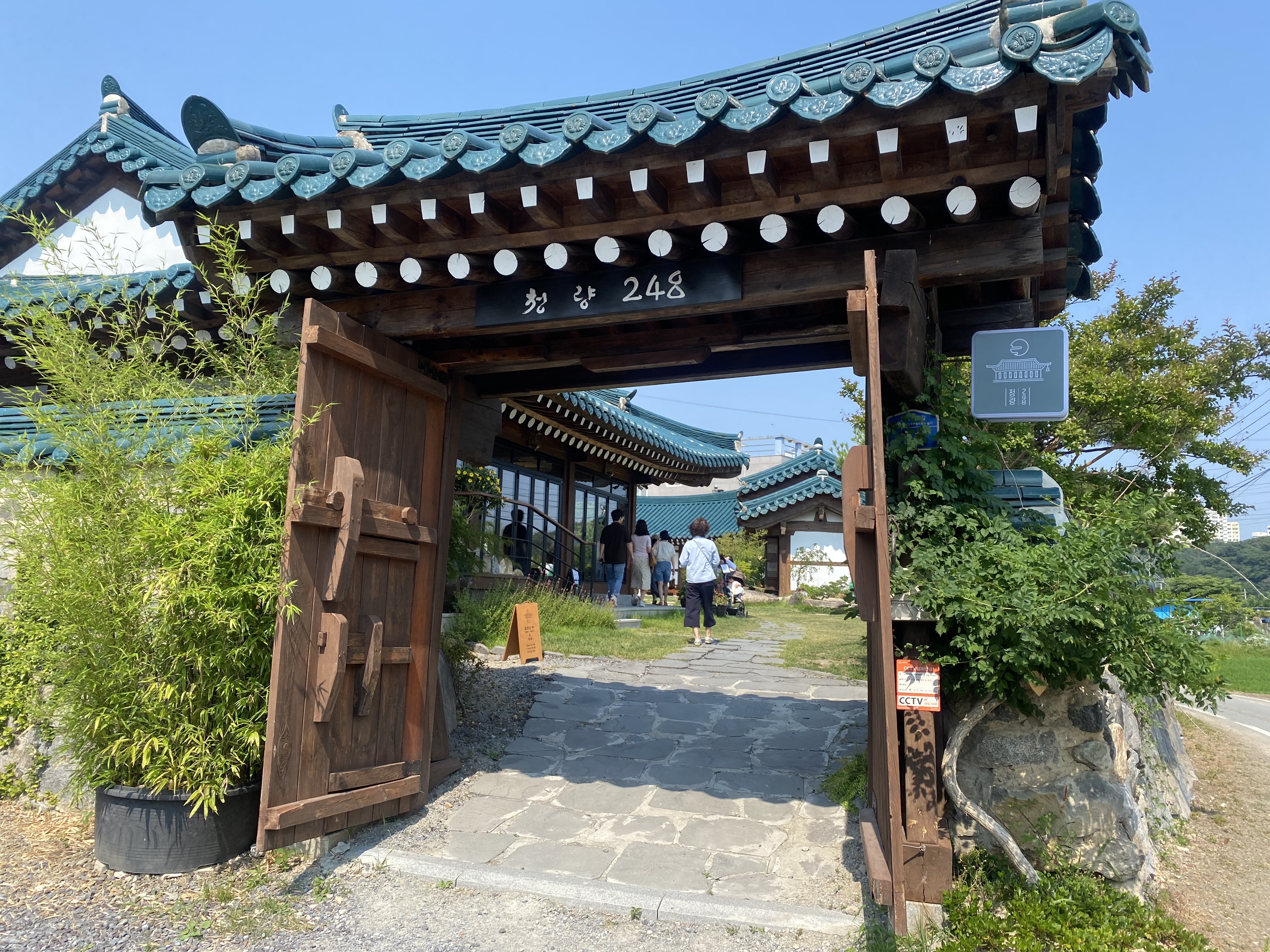 저희는 카페 맞은편 주차장에 주차를 하고 좌측 입구로 들어왔고요, 우측 사진이 대문 정면 사진입니다. 청량에 이런 곳이 있을 줄이야~ 일단 '캬~ '감탄 일발 발사~~!
