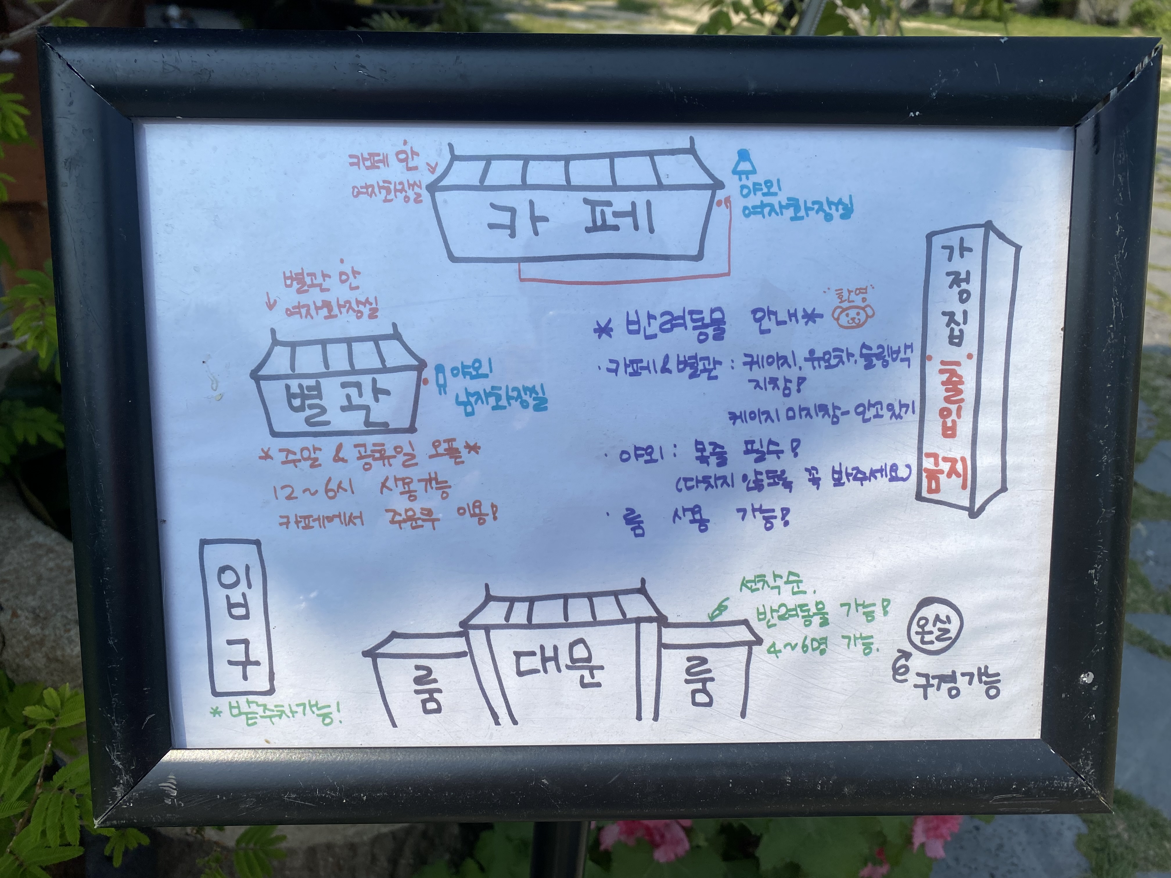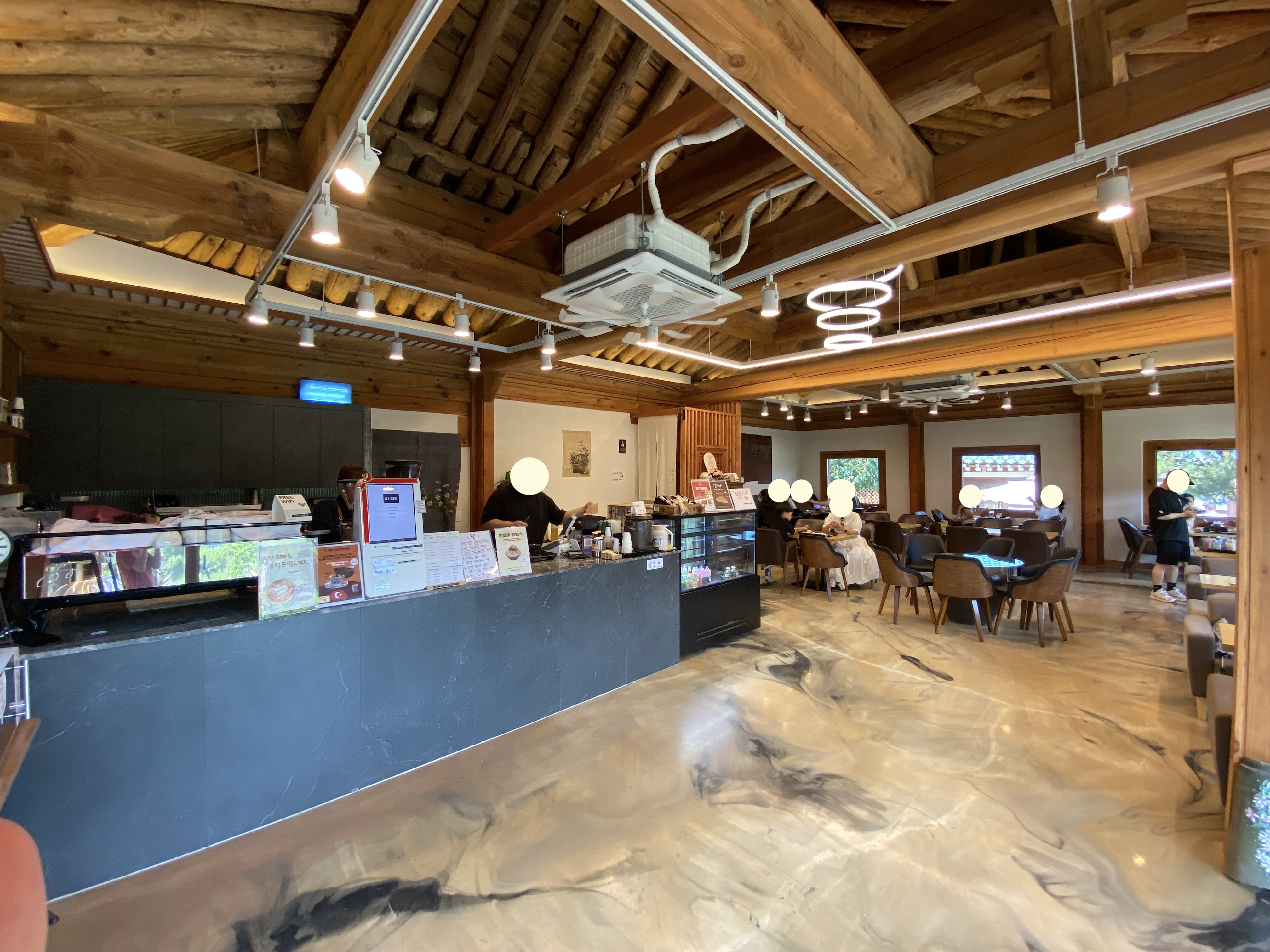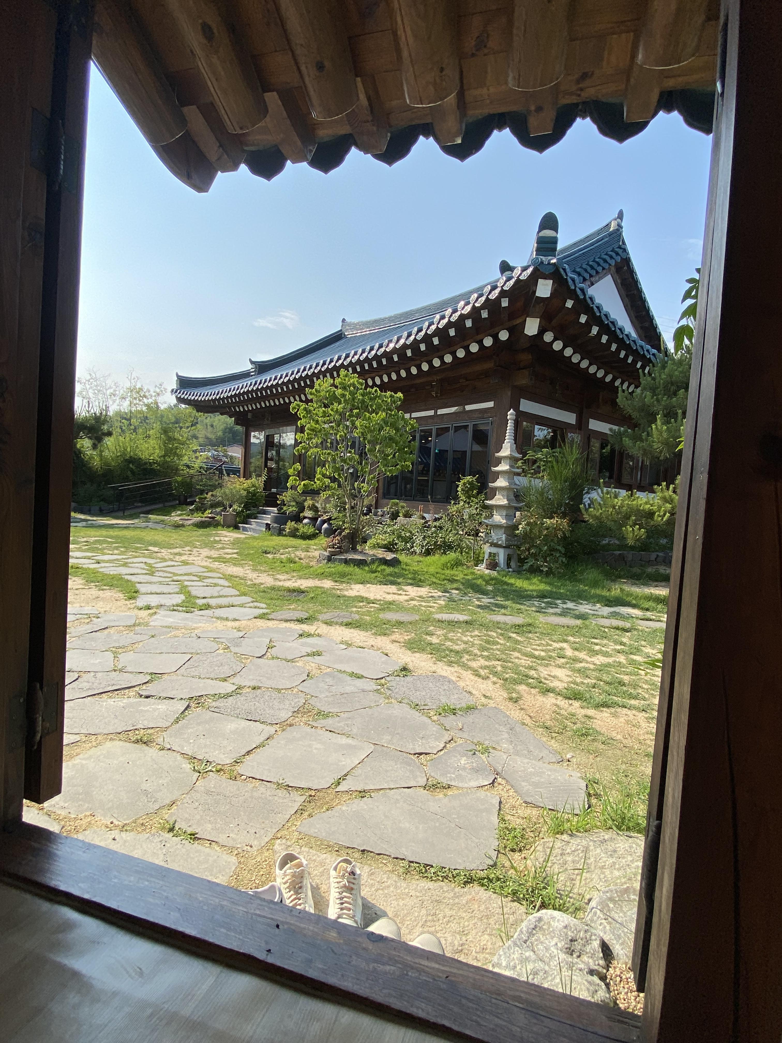 들어서면 넓은 잔디밭 정원이 이쁘게 잘 꾸며져 있습니다. 핫플이라 역시 방문객이 엄청 많아 별관과 대문 양옆 방은 이미 자리가 다 차있어서 겨우 카페 본관 건물에 한자리 잡을 수 있었답니다.