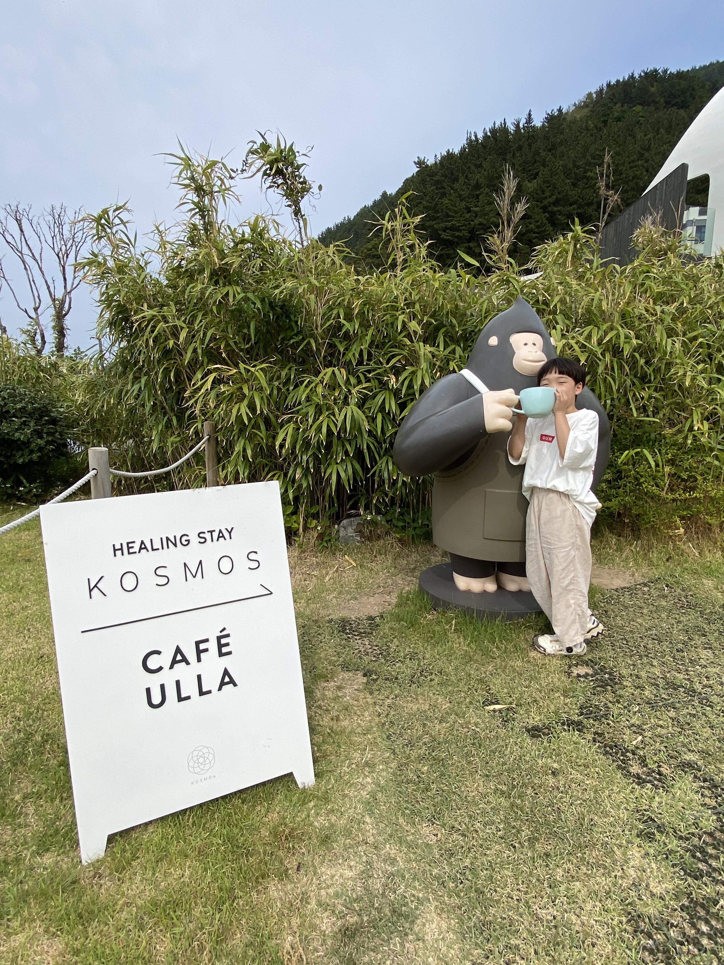 넓은 주차장이 마련되어 있어서 방문객들은 편하게 주차를 할 수 있습니다. 카페 울라 들어가는 길에 보면 힐링 스테이 KOSMOS라고 되어 있는데 카페 울라와 같이 조성되어 있습니다.