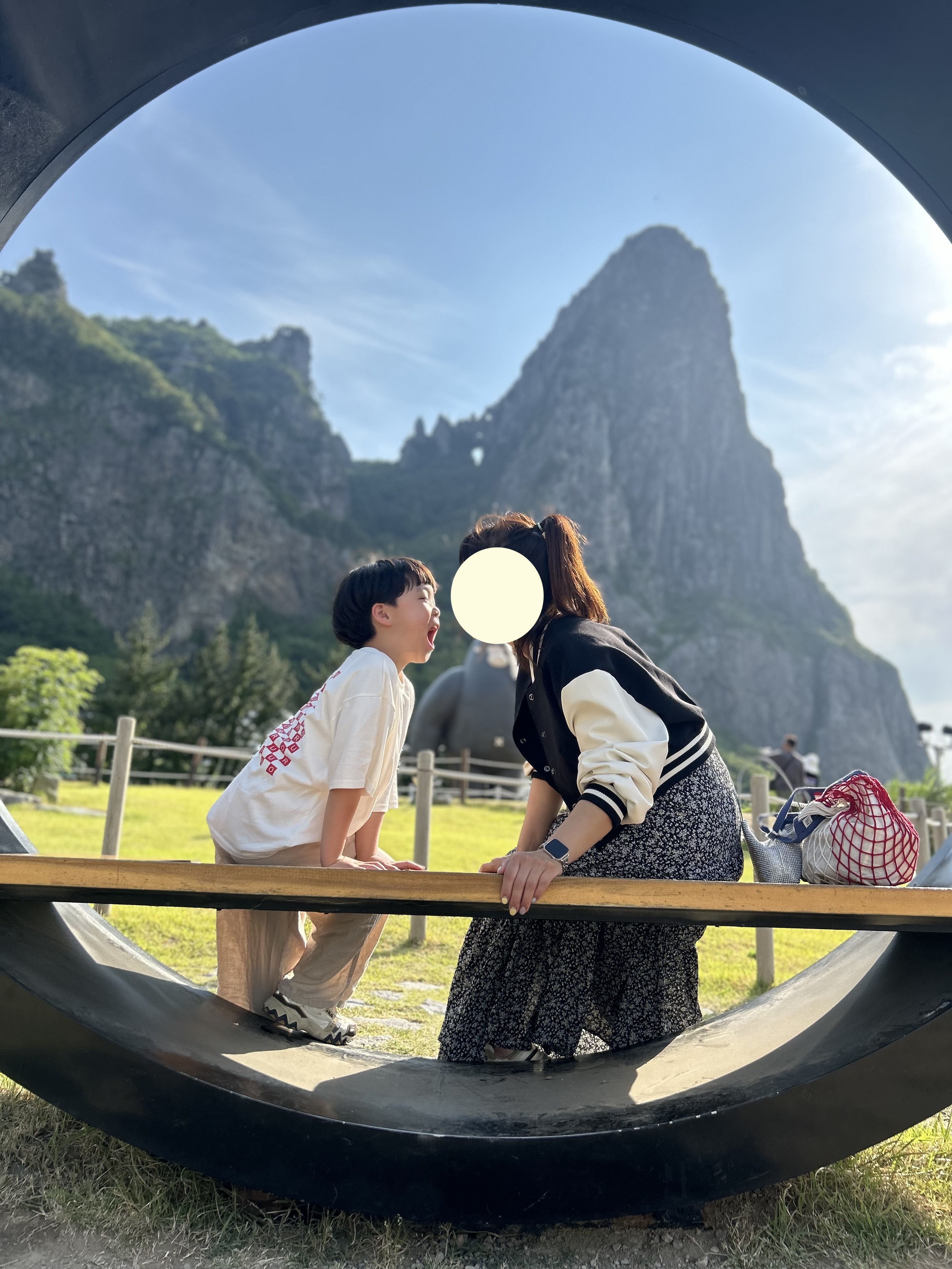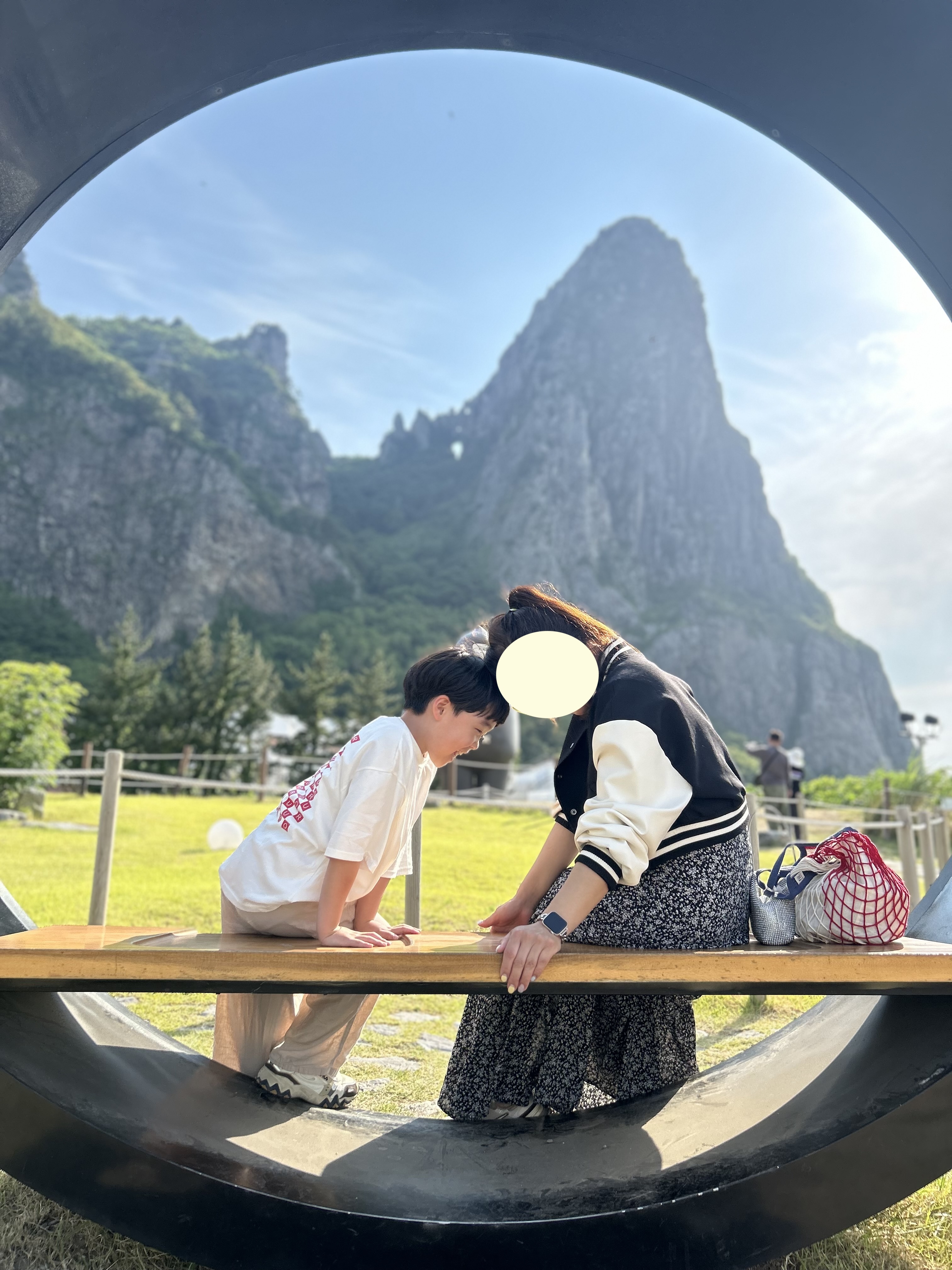 요기 포토존은 타이밍 잘 맞춰야지 안 그럼 한참을 줄 서야 한 컷 겨우 남길 수 있는데 방문객들이 저희 가족사진을 몇 컷 찍어주셨는데 제가 원하는 뷰가 안 나와서 결국 엄마와 아들 사진만 올려봅니다.