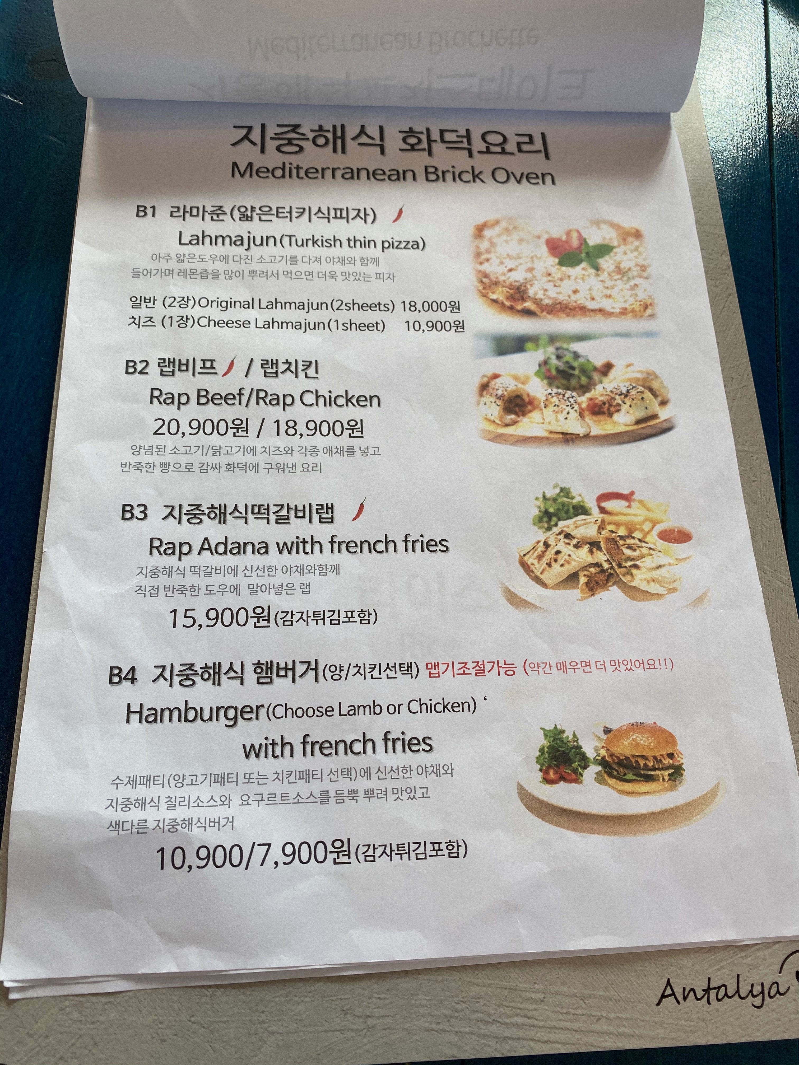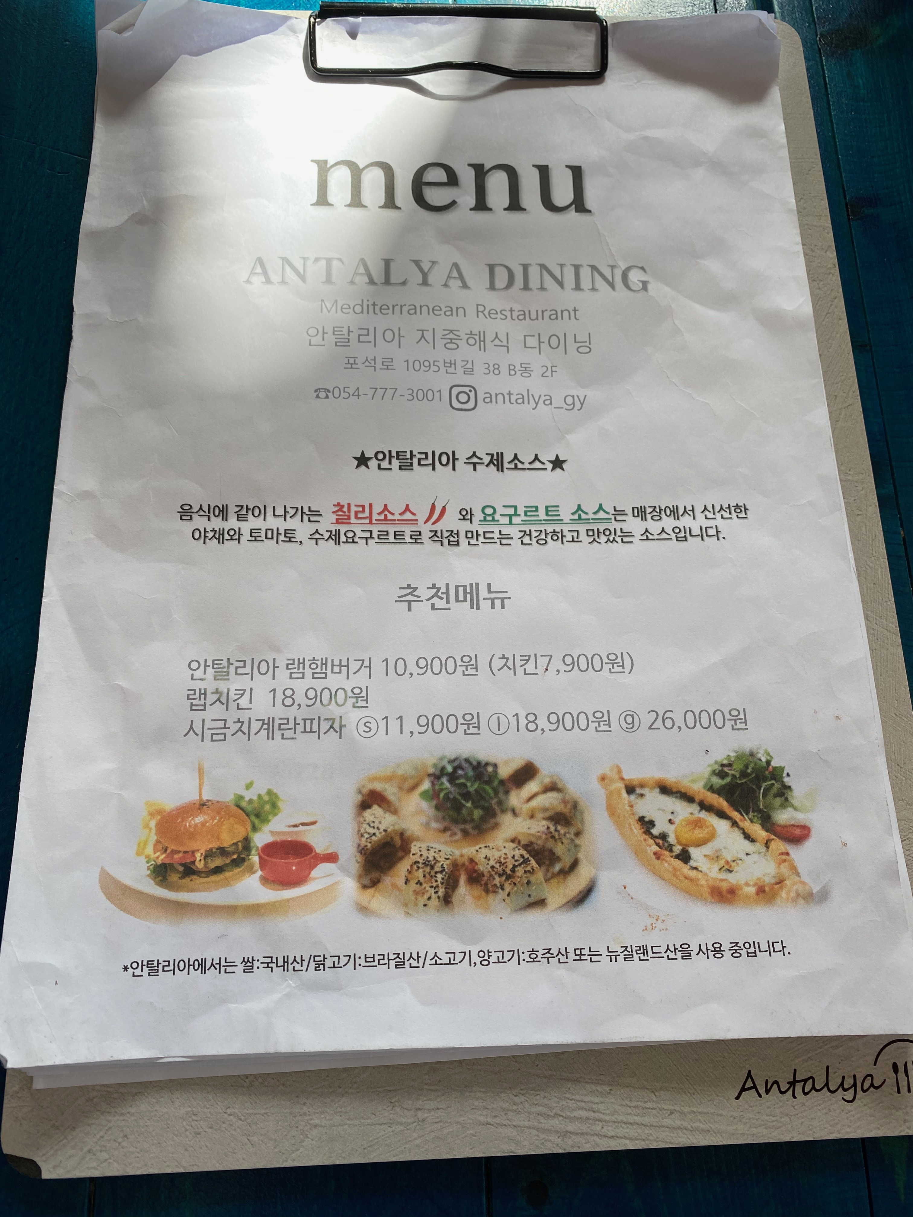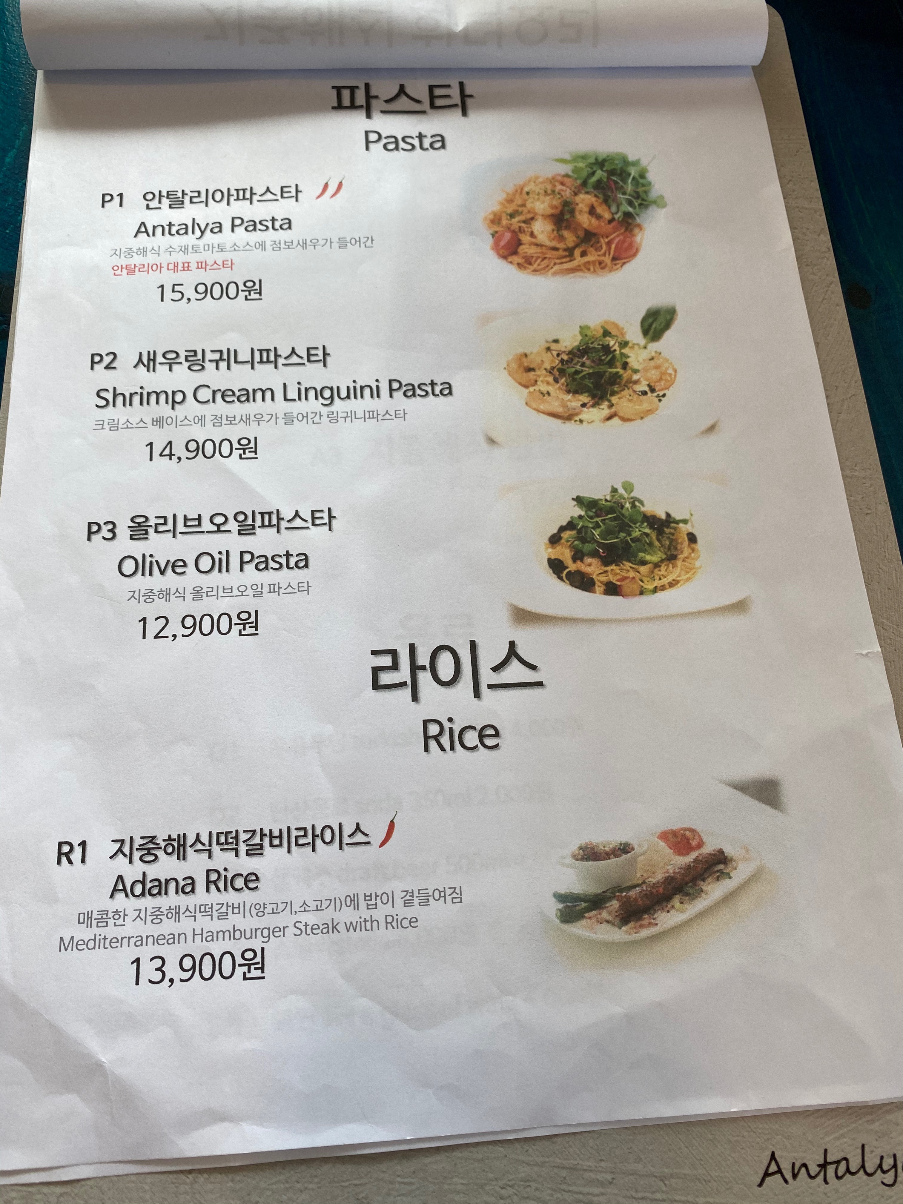 블로그에 소개된 글들은 와이프님이 보신 관계로 어떤 평이 나있는지 모르겠으나 와이프님 왈 요 동네 맛집은 너무 오래 기다려야 해서 다른 곳을 알아보다 우연찮게 들린 곳인데 기대 이상으로 맛나서 추천한다... 뭐 이런 글을 보고 안탈리아 식당을 선택했다고 하더군요.