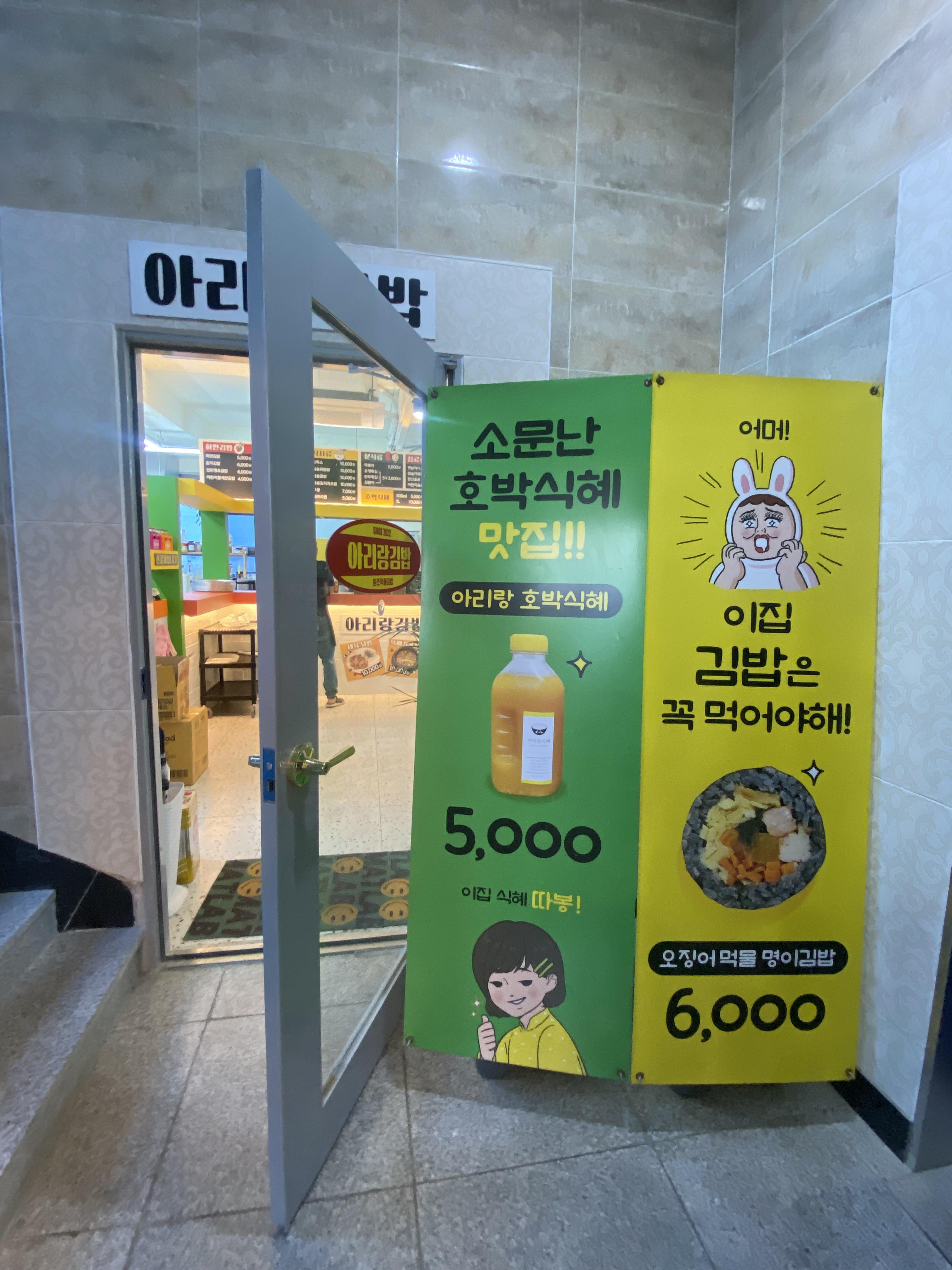 맛은 지극히 개인적 입맛에 따른 평을 해보자면 저동항에 이렇게 맛있는 김밥집이 있어서 얼마나 행복한지요~ 가격도 물론 김밥으로만 따지자면 살짝 비싸지만 울릉도 식당에서 세 식구 한 끼 해결하는 가격으로는 절대로 나올 수 없는 가성비 한 끼 식사 가격이라 전혀 부담되지 않으면서도 배부르게 맛있게 먹을 수 있는 아리랑김밥이었습니다. 재료 소진이 빨리 되면 오후 5시 이전에라도 문을 닫는다고 하는데 다행이라고 해야 할까요? 여행객들이 덜 붐빌 때 울릉도 여행을 해서 그런지 김밥 주문도 여유 있게 하고 먹고 싶었던 메뉴도 솔드아웃 되기 전에 다 주문을 할 수 있었습니다. 호박식혜도 사진에는 없으나 꼭 한 병 사서 맛보시길 추천합니다. 명이김밥은 진짜~ 햐~~ 맵찔이는 진미땡초김밥 드시지 마세요. 혀가 얼얼합니데이. 제 입맛은 부지갱이김밥보단 명이김밥이 잘 맞았습니다. 그래도 울릉도 여행할 때 아니면 맛볼 수 없으니 둘 다 맛보세요^^ 완전 강추!!!
