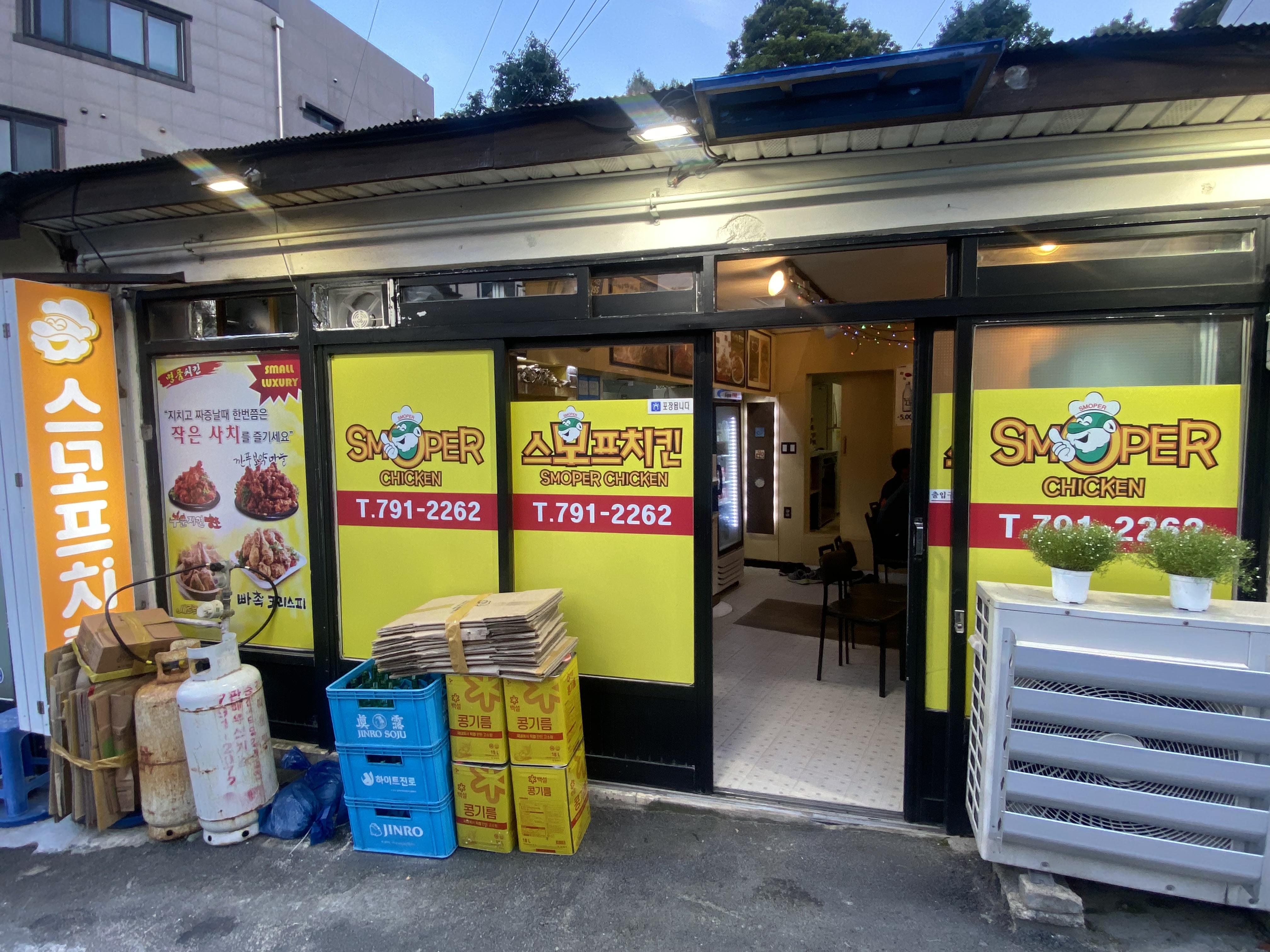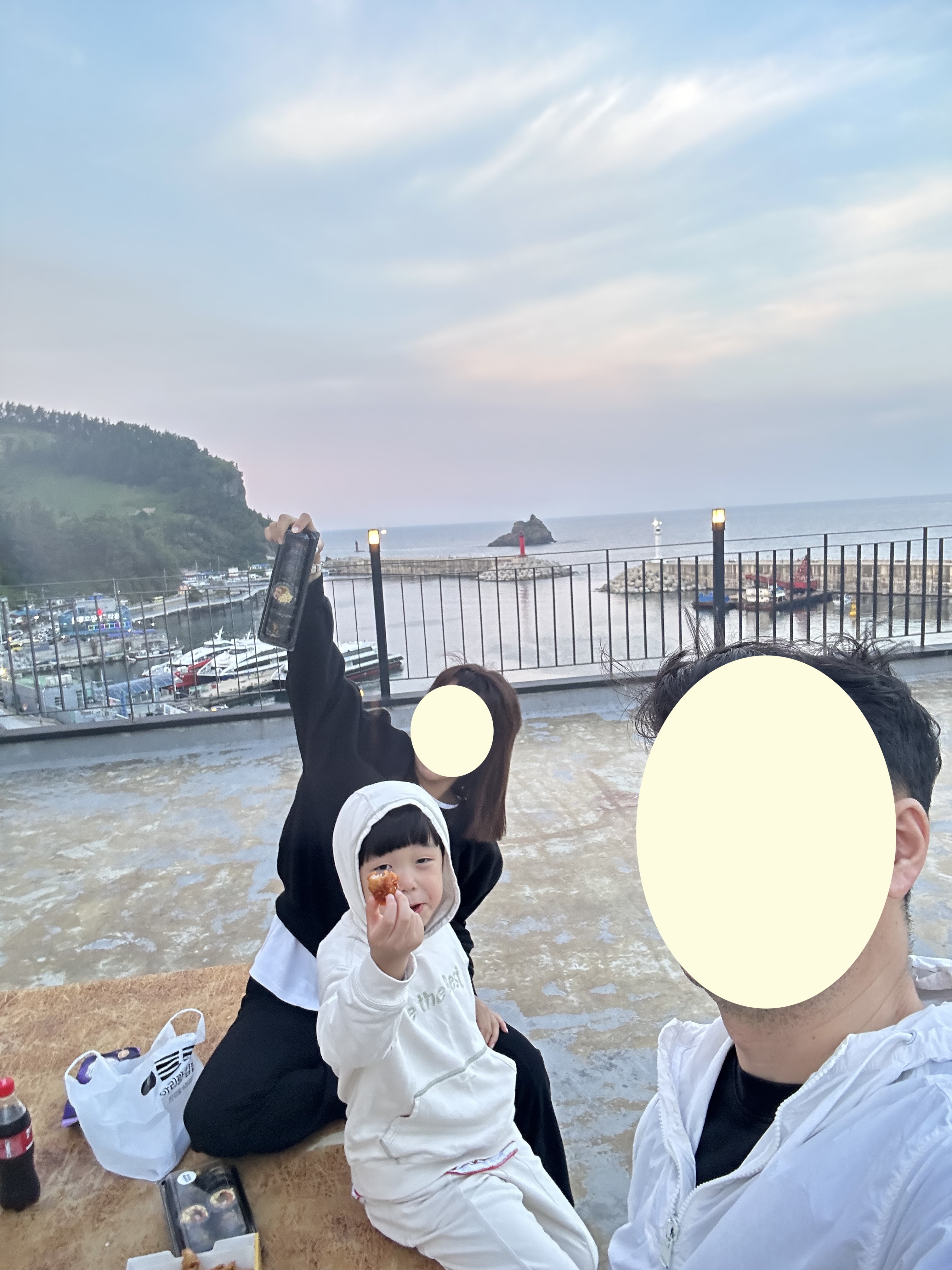 요기 호텔 소개하면서 옥상 뷰 설명드렸었죠? 바로 거기서 저동항 최후의 만찬을 아리랑 김밥과 스모프 치킨으로 즐기는 시간을 가졌습니다. 저동항에서 치킨이 생각난다면 스모프 치킨 강추합니다!!!