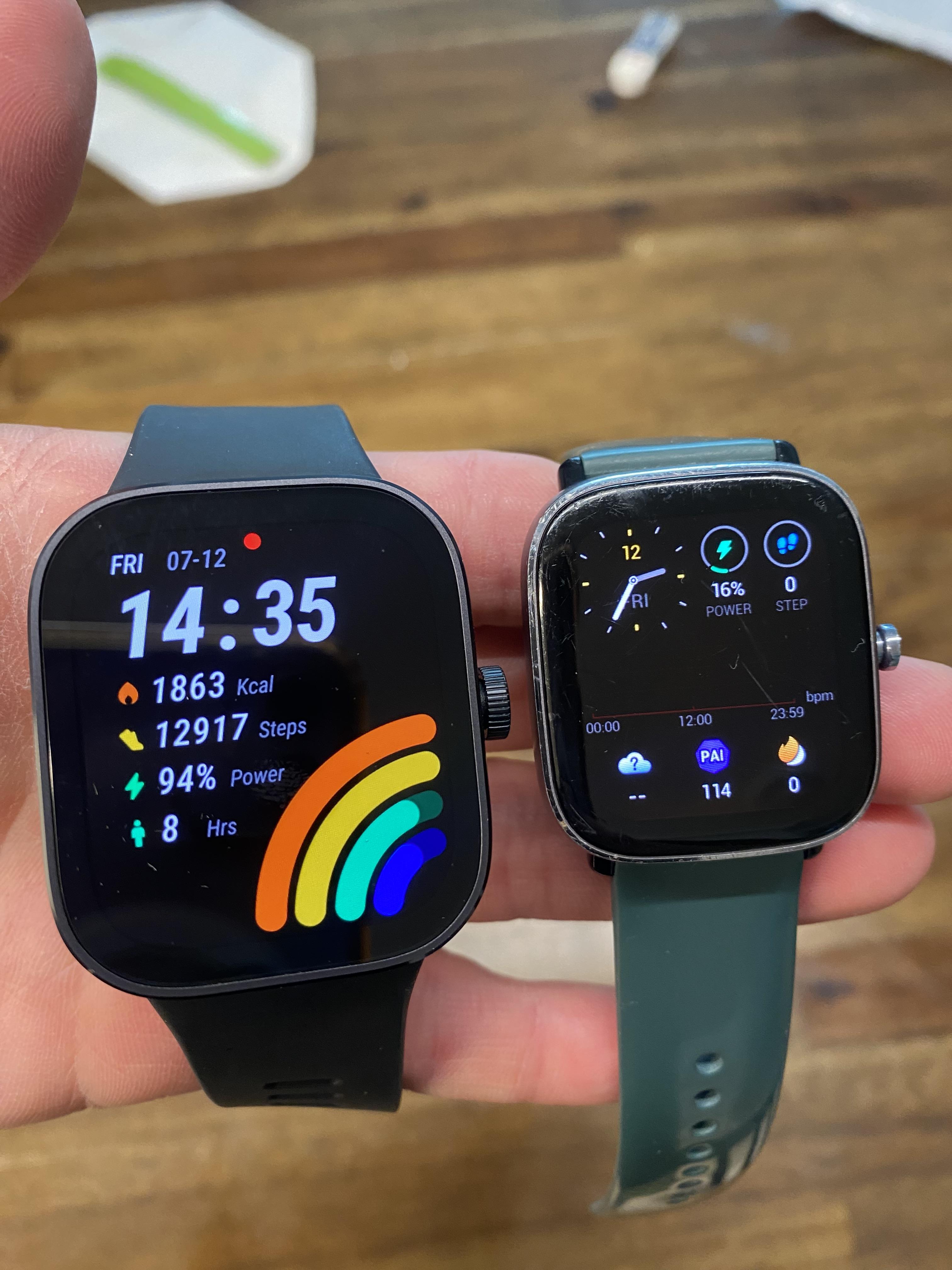 우와~ 기존 어메이즈핏 미니 제품과 외관상 비교를 해보니 액정이 비교불가할 만큼 크기가 커졌고 AMOLED 디스플레이의 선명함은 LCD 디스플레이와는 확연한 차이가 납니다. 사용자 후기를 보면 제공되는 기본 스트랩이 가장 불만이라고 하는데 저는 뭐 기존 어메이즈핏 스트랩을 같은 방식으로 사용하는데 충분히 익숙해져 있어서 그런지 크게 불편한 점 못 느꼈습니다.