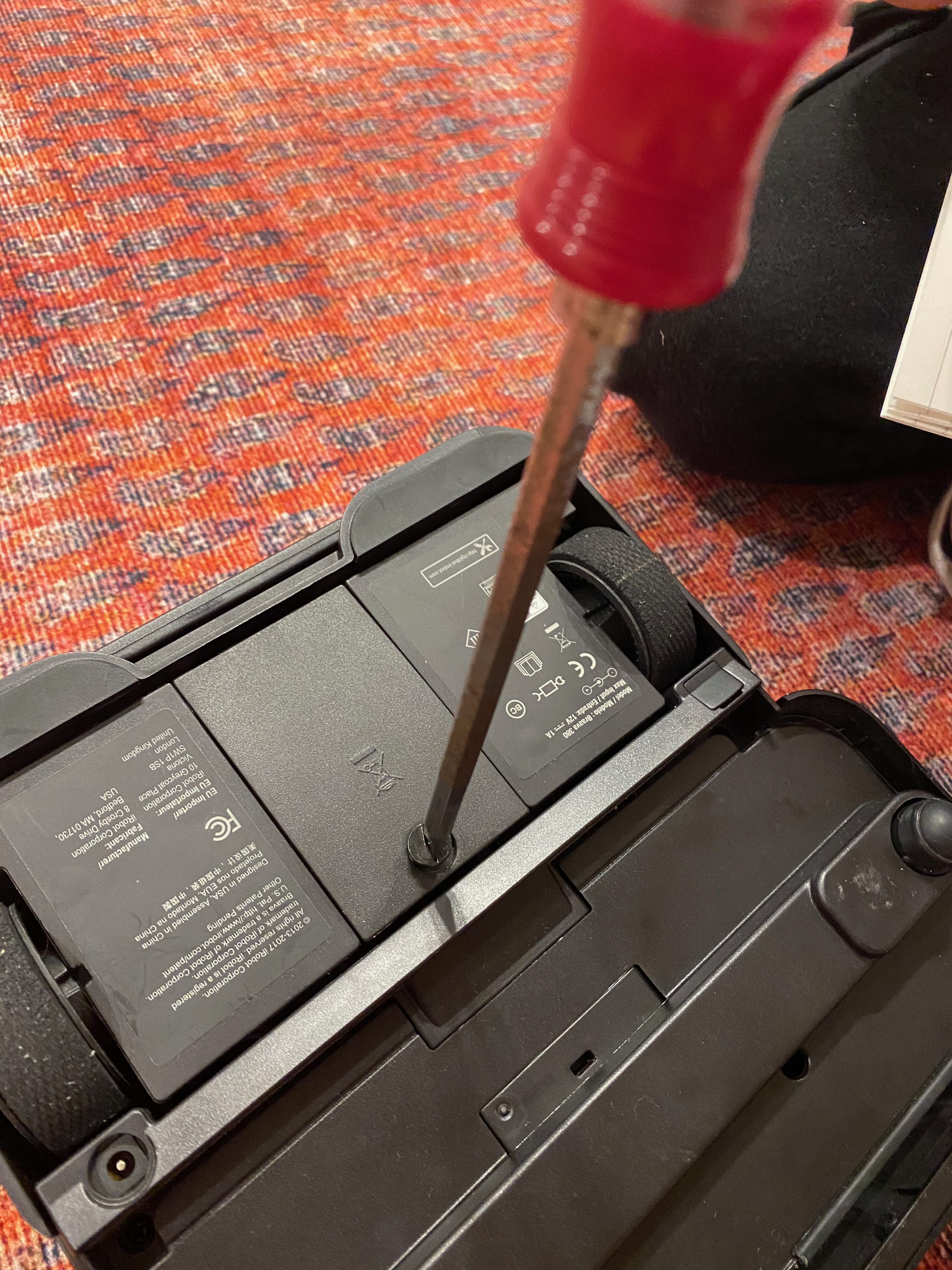 일자 드라이버로 열심히 돌려보니 아이로봇 정품 배터리가 나옵니다. 배터리 교체는 엄청 쉽습니다. 그냥 흰색 부위를 빼고 꼽고 하면 끝~!!