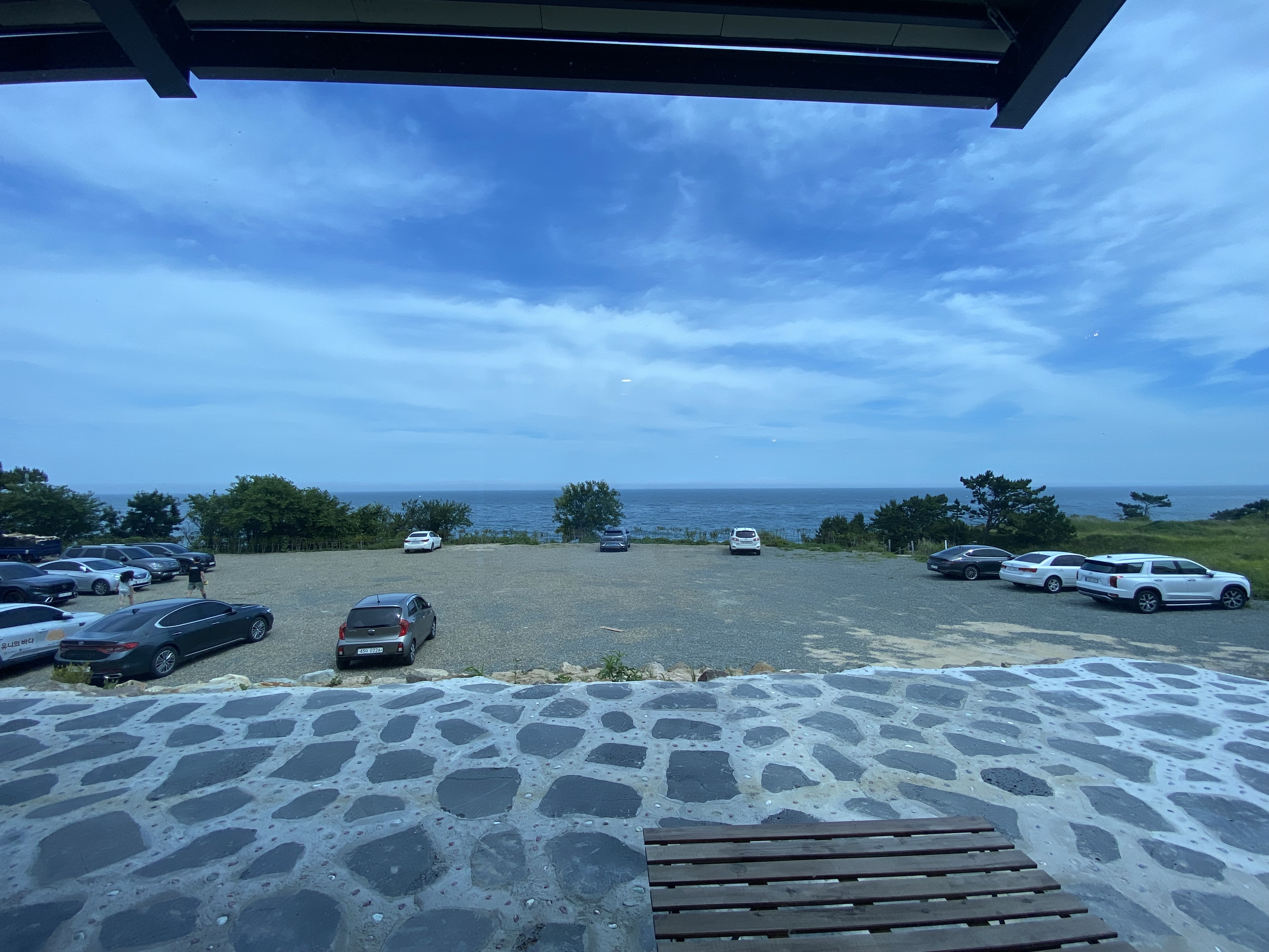 한쪽 구석에 마련된 테이블로 자리 안내를 받습니다. 여기는 도로가 주차장보다 건물 뒤편에 마련된 주차장이 더 넓은데 주상절리 해안가로 이어지는 길도 있어서 식사 후 소화시키는 겸 산책로를 다녀올 수 있습니다.