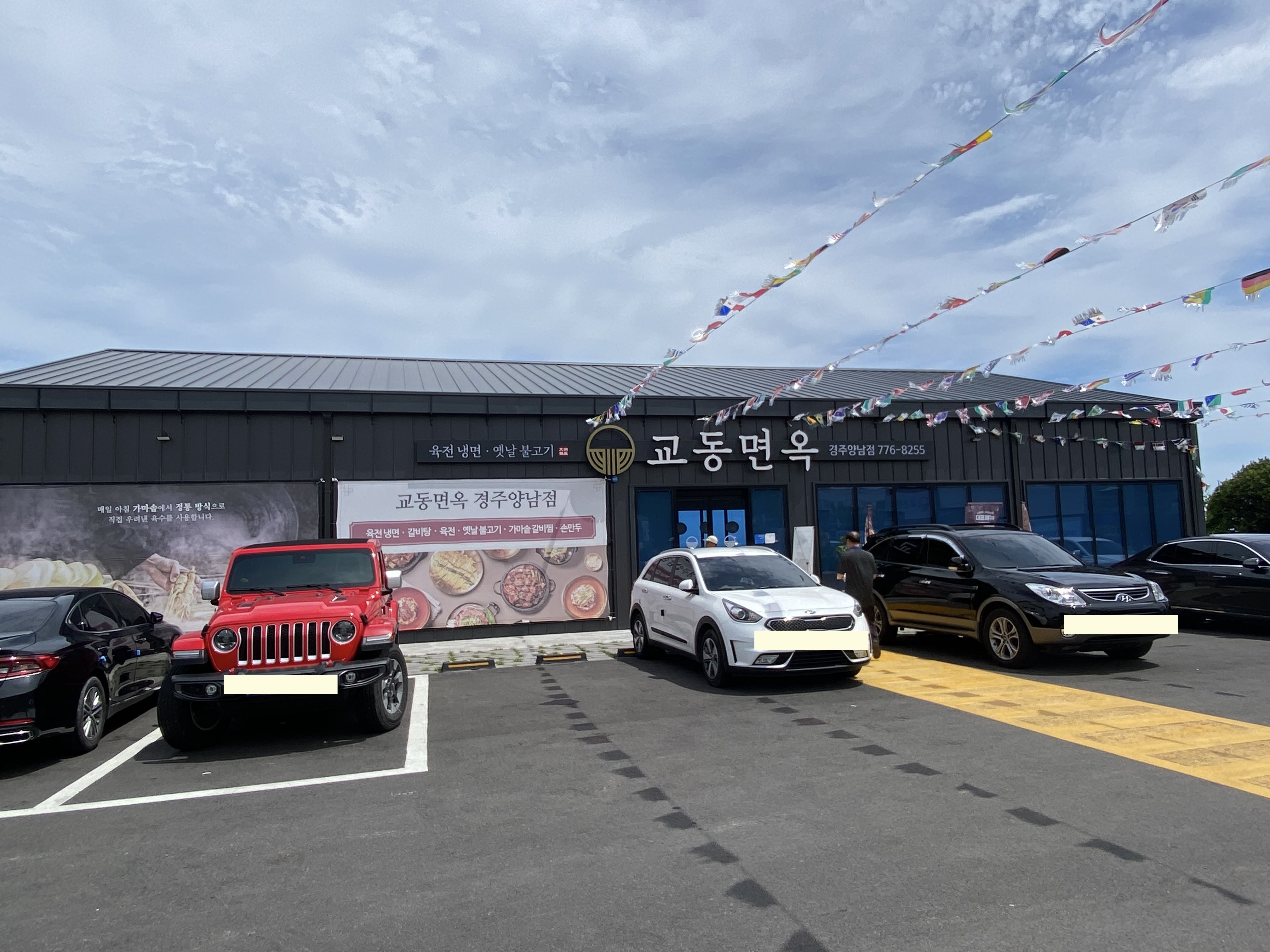 양남 주상절리에 가면 꼭 들러서 맛보는 남가옥 진주 냉면집이 있는데 앞번에 갔을 때는 시간을 너무 잘못 맞춰서 대기 줄이 엄청 길게 늘어서 있더군요. 그래서 과감히 포기하고 다시 유턴을 해서 울산에서 올라가다 보면 새로 생긴 식당이 하나 있는데 '교동면옥 경주양남점'이라고 거길 가봤습니다.