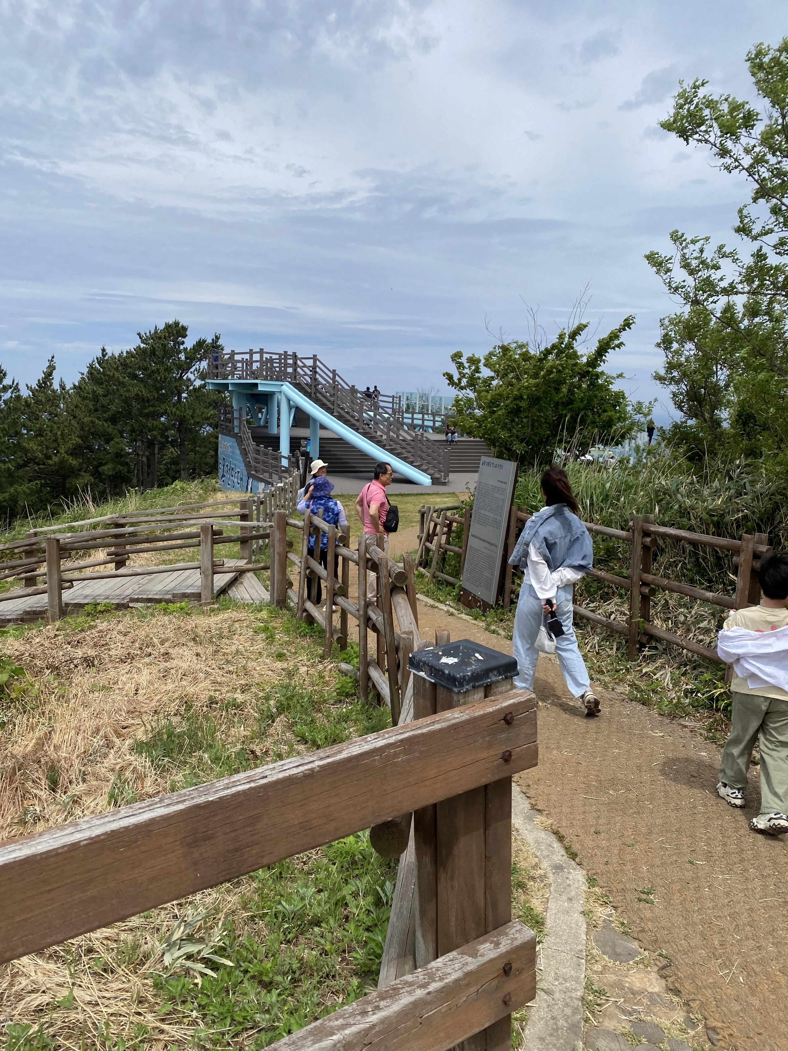 10분여 올라오니 드디어 도착지점이 보입니다. 울릉해담길 안내 표지판이 모노레일 이용객을 반기네요.