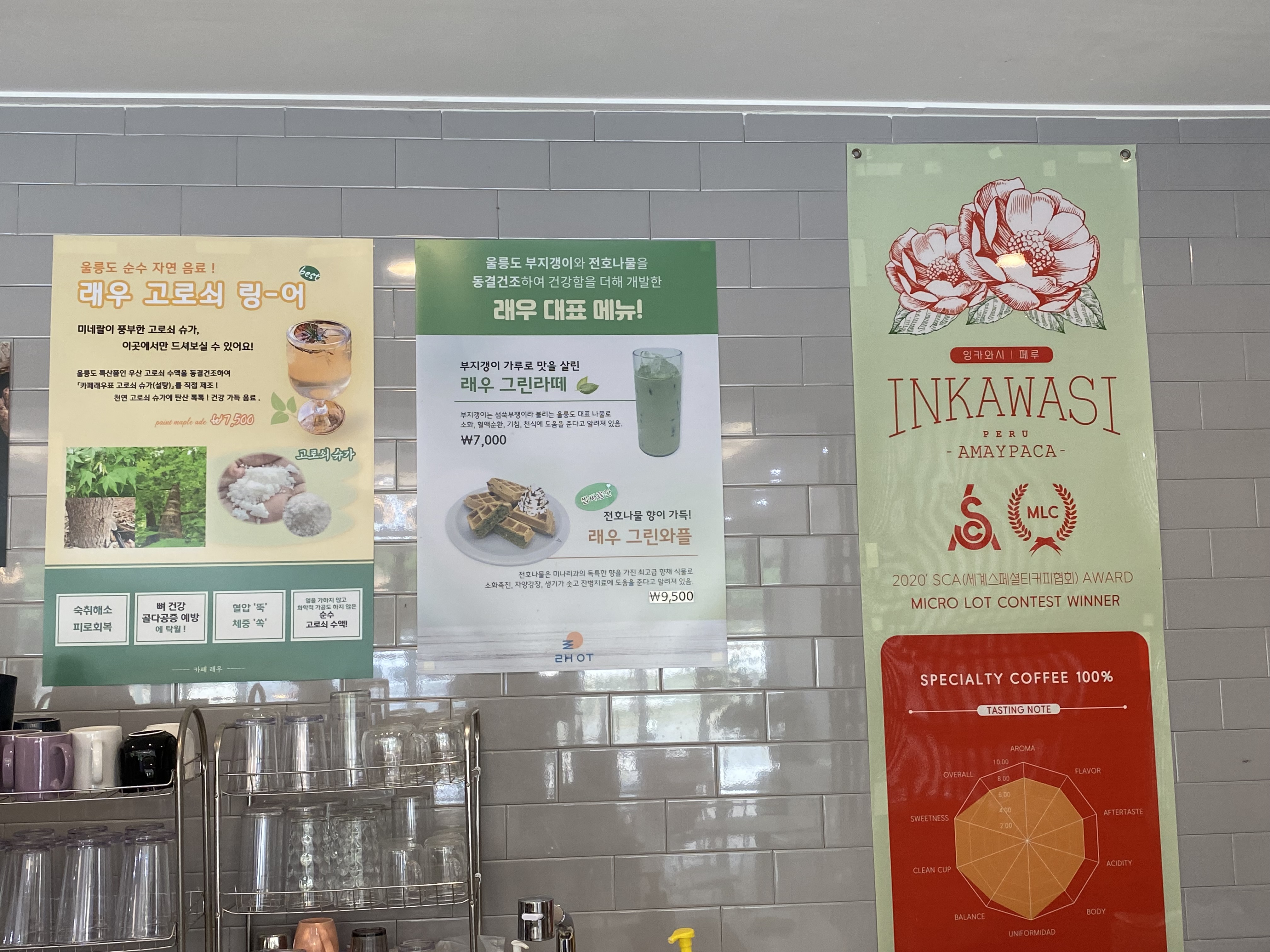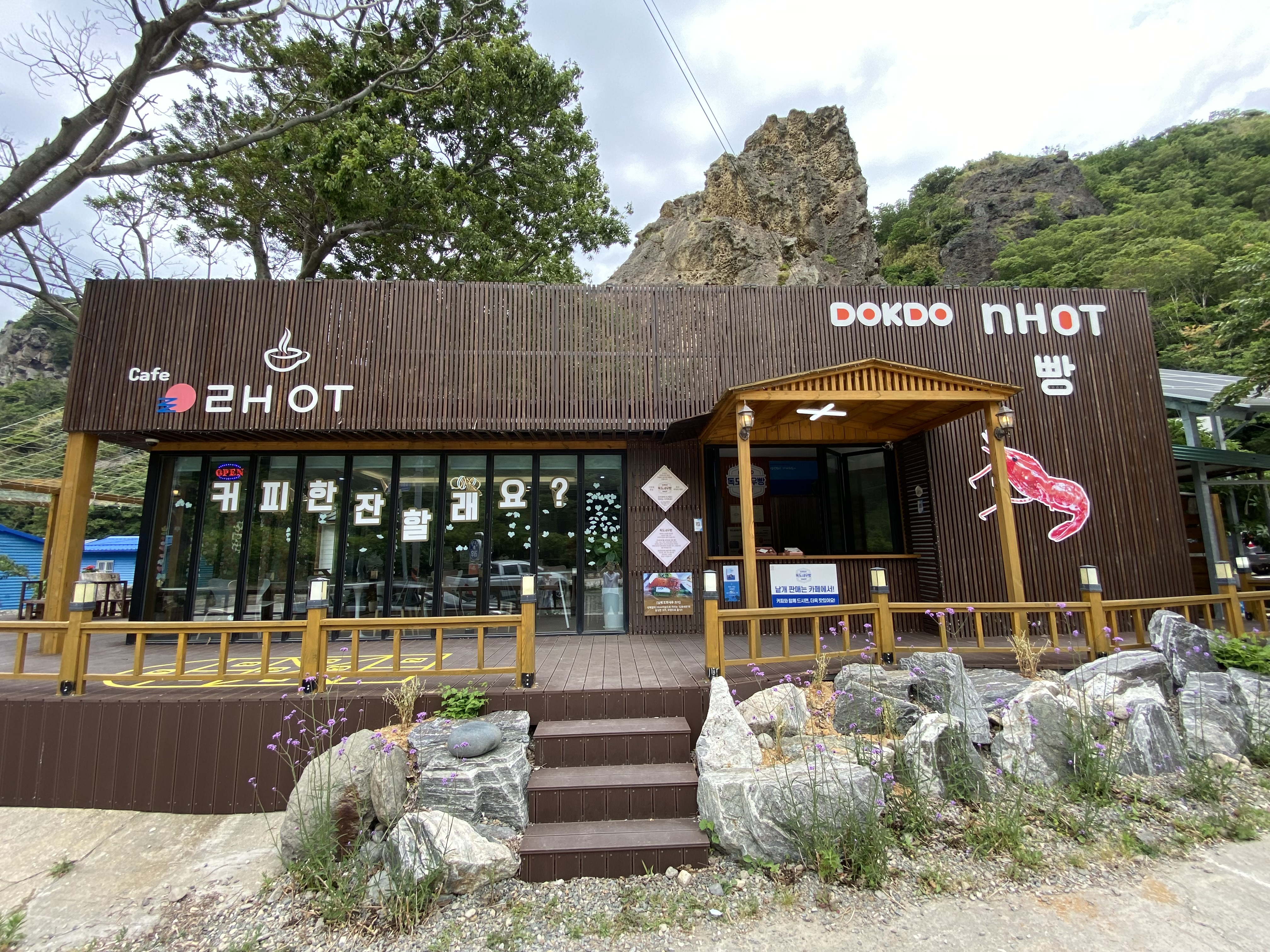 태하 향목 관광모노레일에서 향목 전망대까지 짧은 듯 살짝 긴 느낌의 트레킹 코스로 탁 트인 울릉도 서면 바다를 보고 나서 이제 서면 해안가 드라이브 코스를 타고 최종 목적지인 사동항으로 가야 하나 이러고 있던 중에 와이프님이 인스타에 올라온 독도 새우빵을 보더니 마침 동네도 태하고 거리를 보니 바로 앞이라고 해서 새우빵 먹으로 급히 '카페 래우'에 들리기로 합니다.
