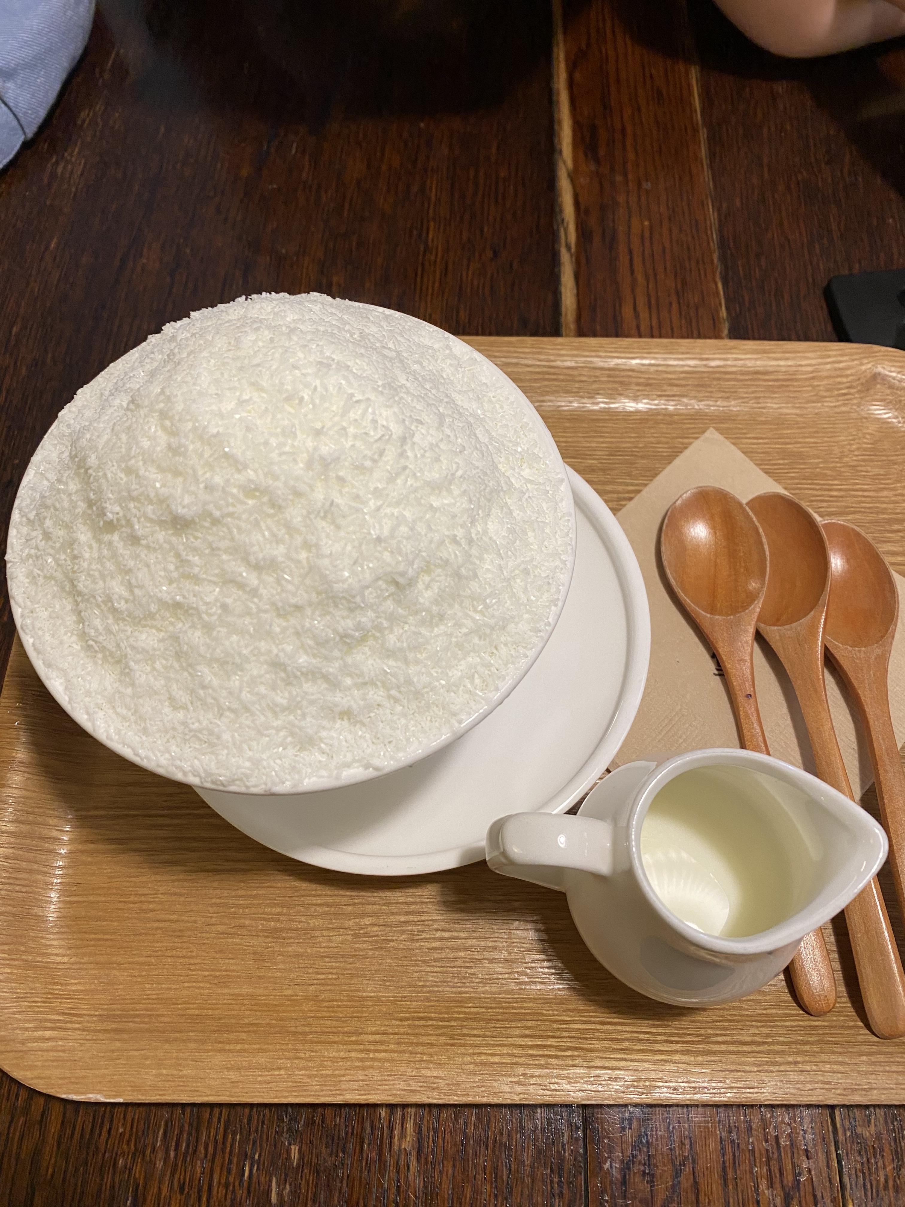 그렇게 우유빙수가 나왔고요~ 연유를 살짝 뿌려서 5분 순삭~~ 끝!!! 아아 커피도 찐하게 맛있었는데 우유빙수에 홀릭 되어 사진은 못 담았네요. 오랜만에 깔끔하고 맛있는 우유빙수로 지친 에너지를 보충할 수 있었습니다. 백금당 울산점 강추!!!!