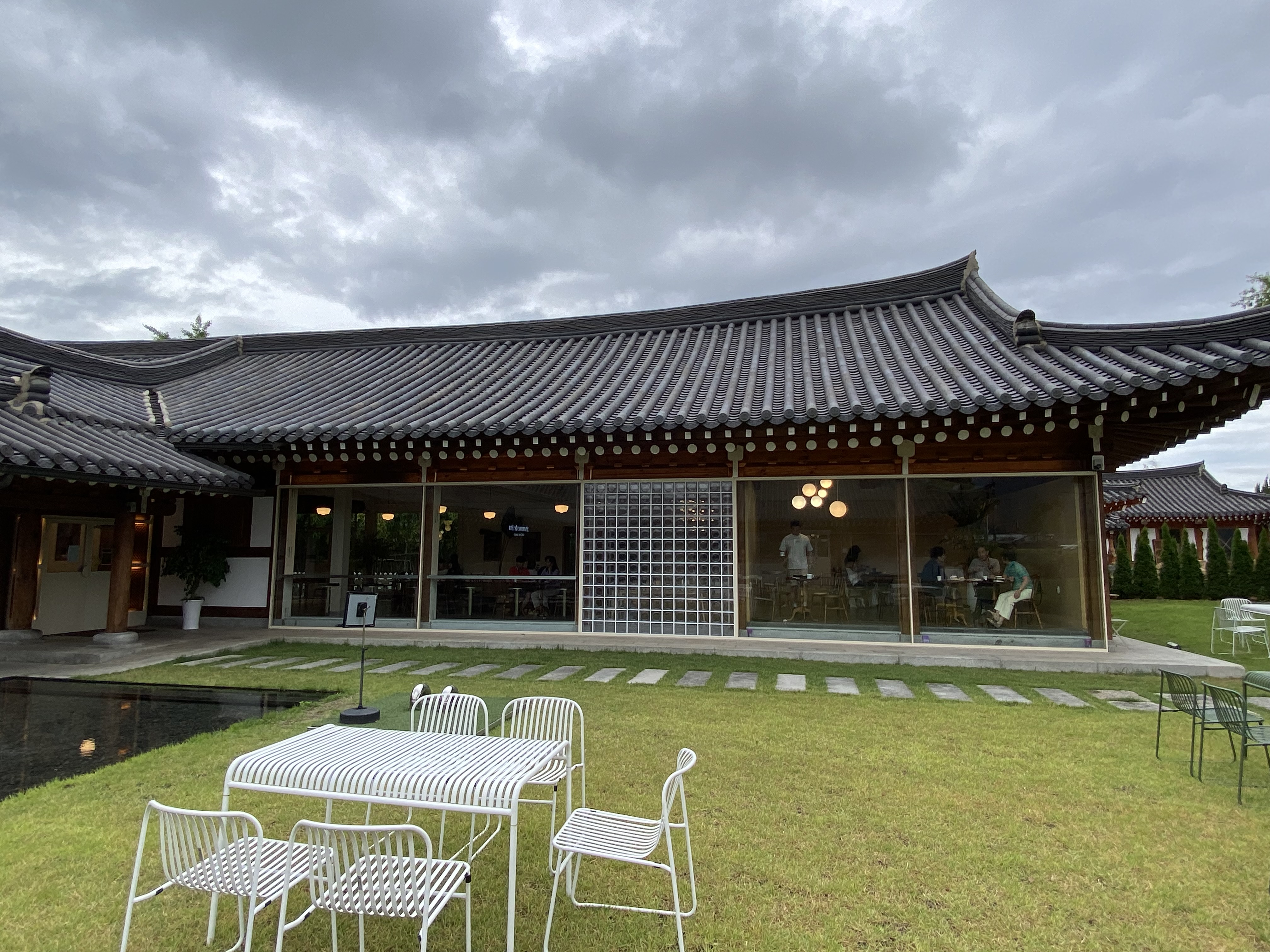 저희는 본관과 대칭되는 건물에 가서 자리를 잡았습니다. 날씨가 어두워지면서 갑자기 비가 후드득~!!