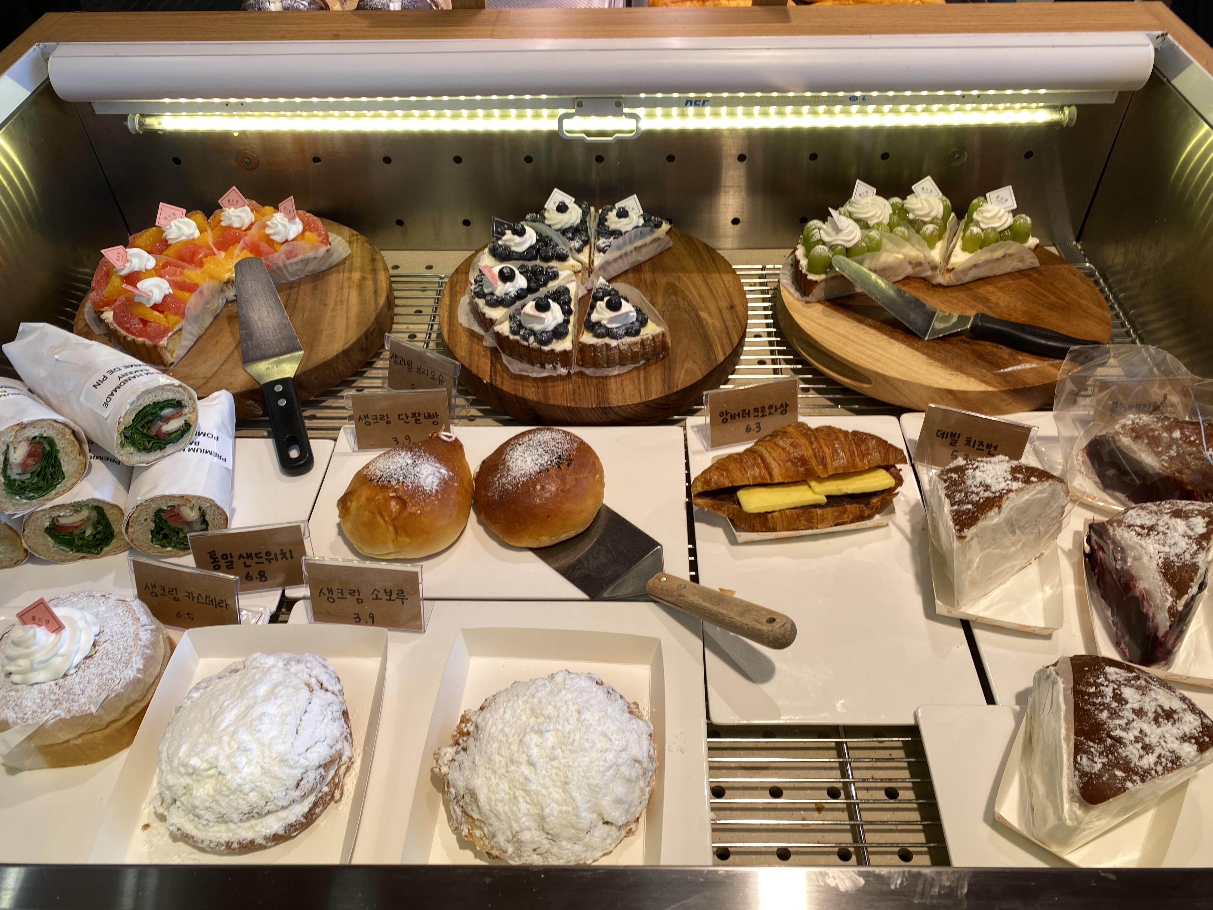 여긴 진짜 넘 맛있어 보이는 빵들이 잔뜩 있습니다. 정신없이 담다 보면 가격이 후덜덜 해집니데이.