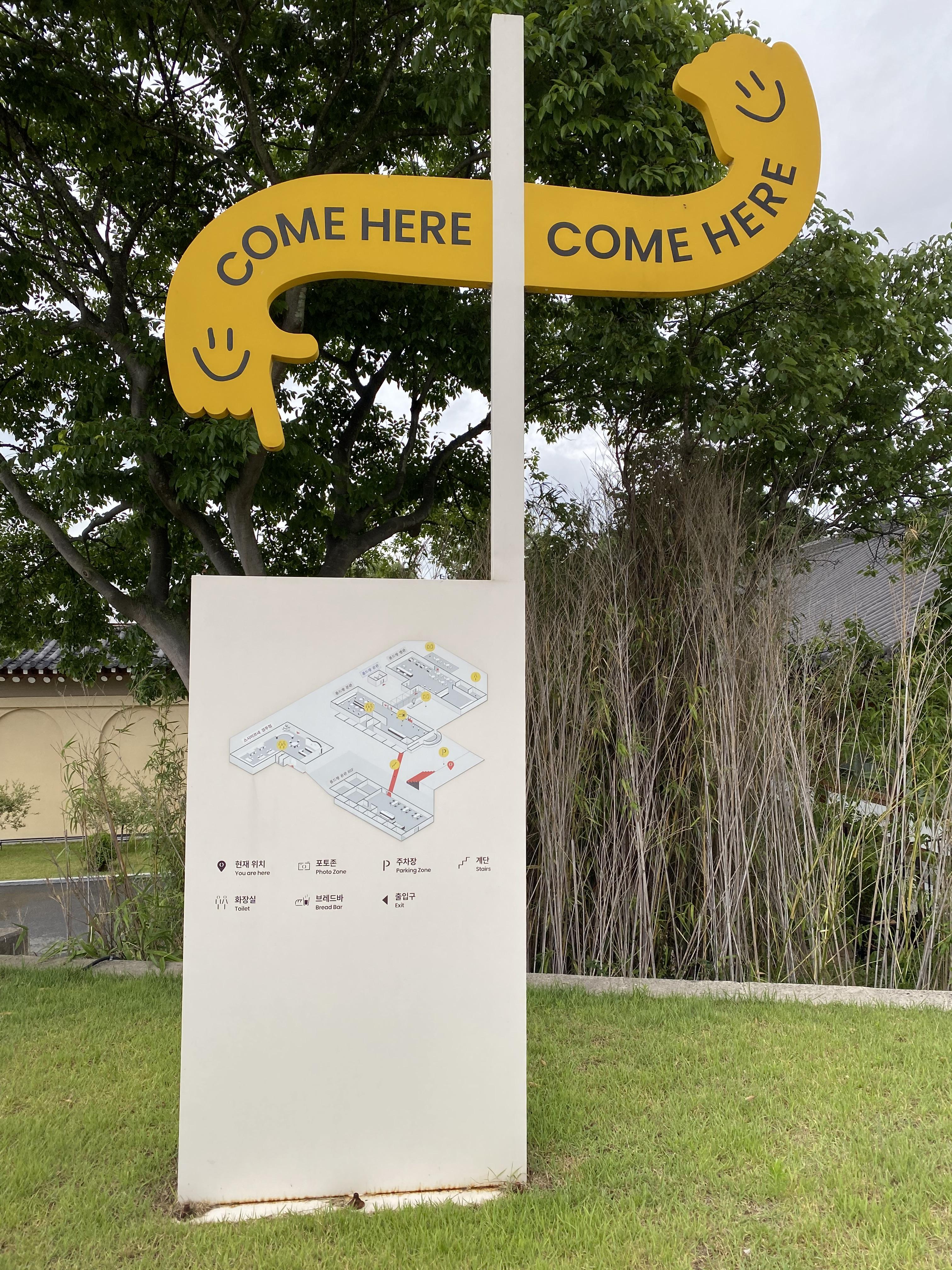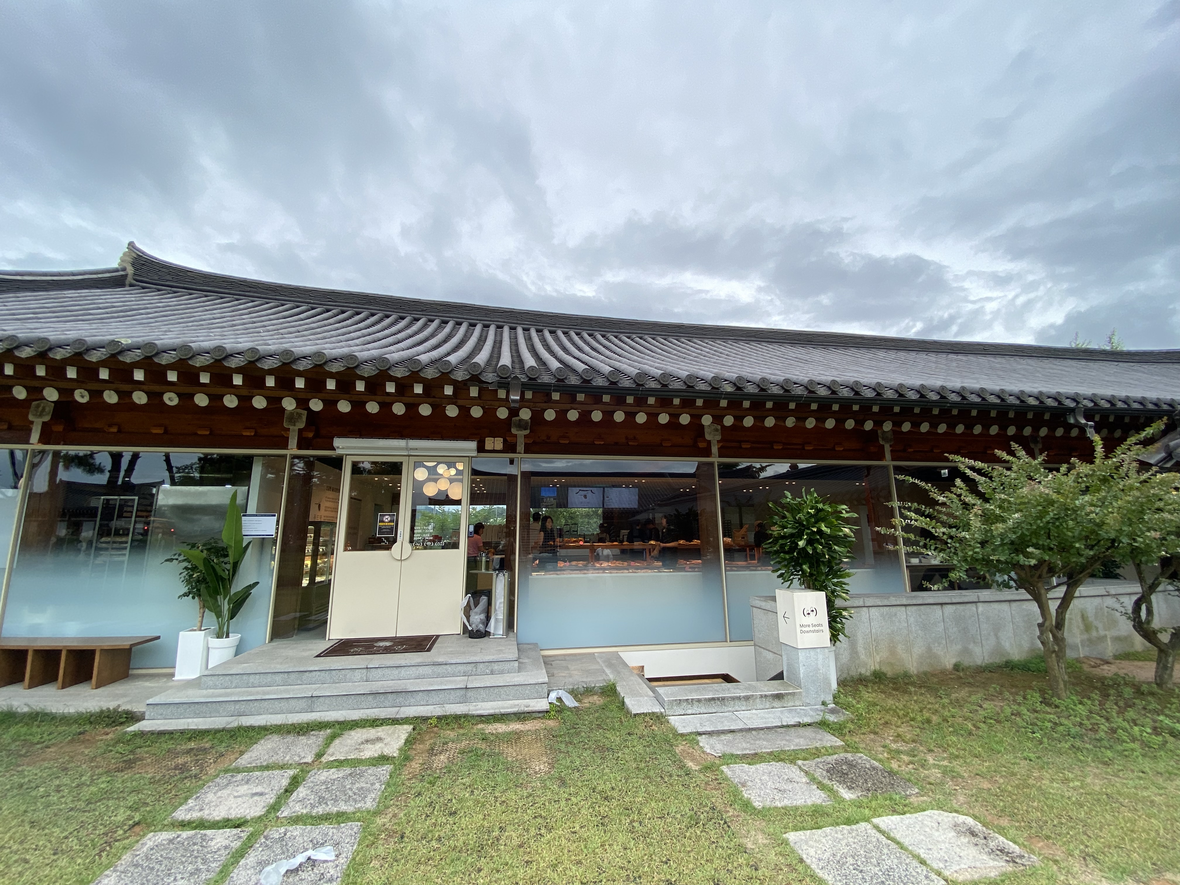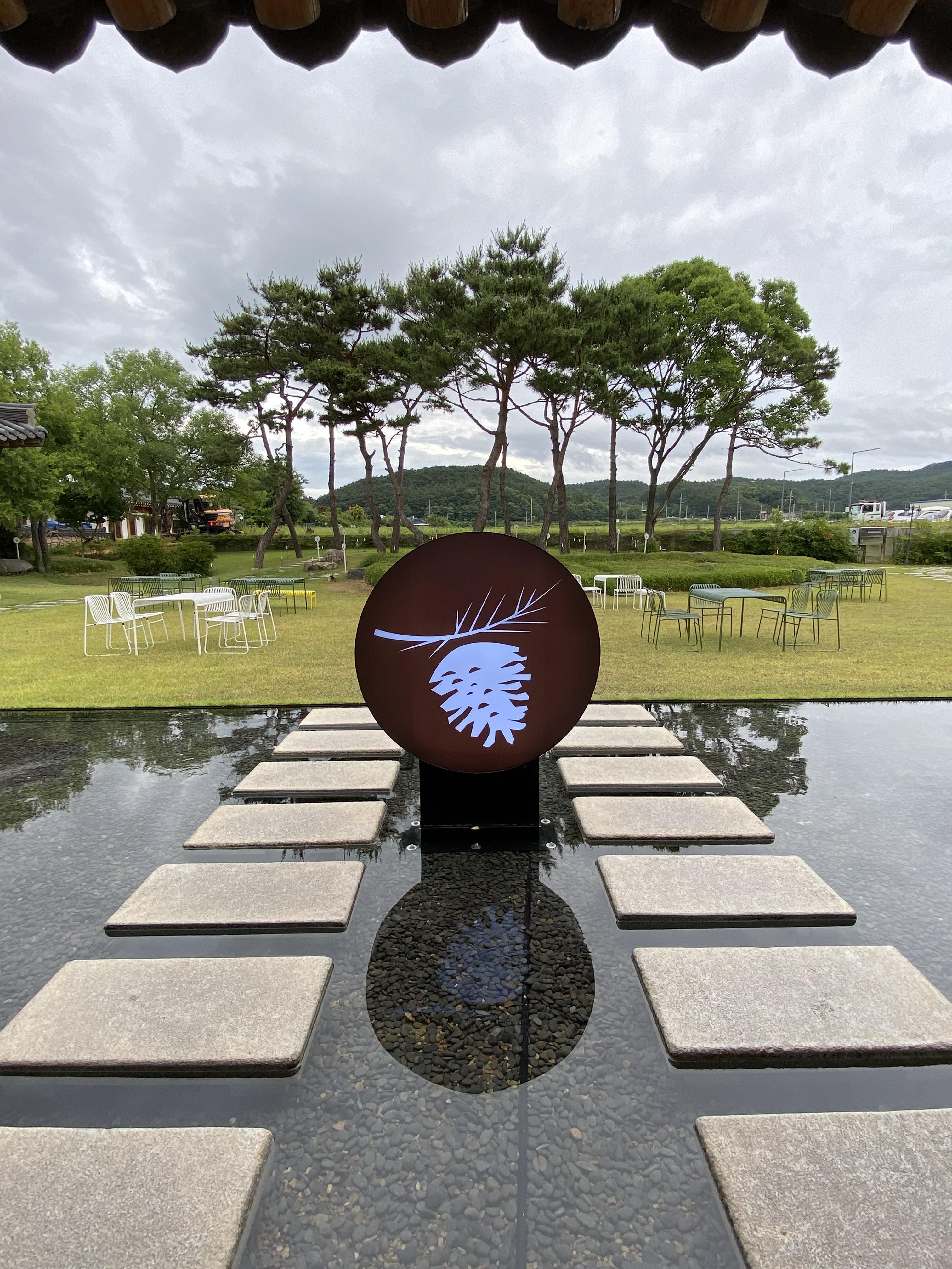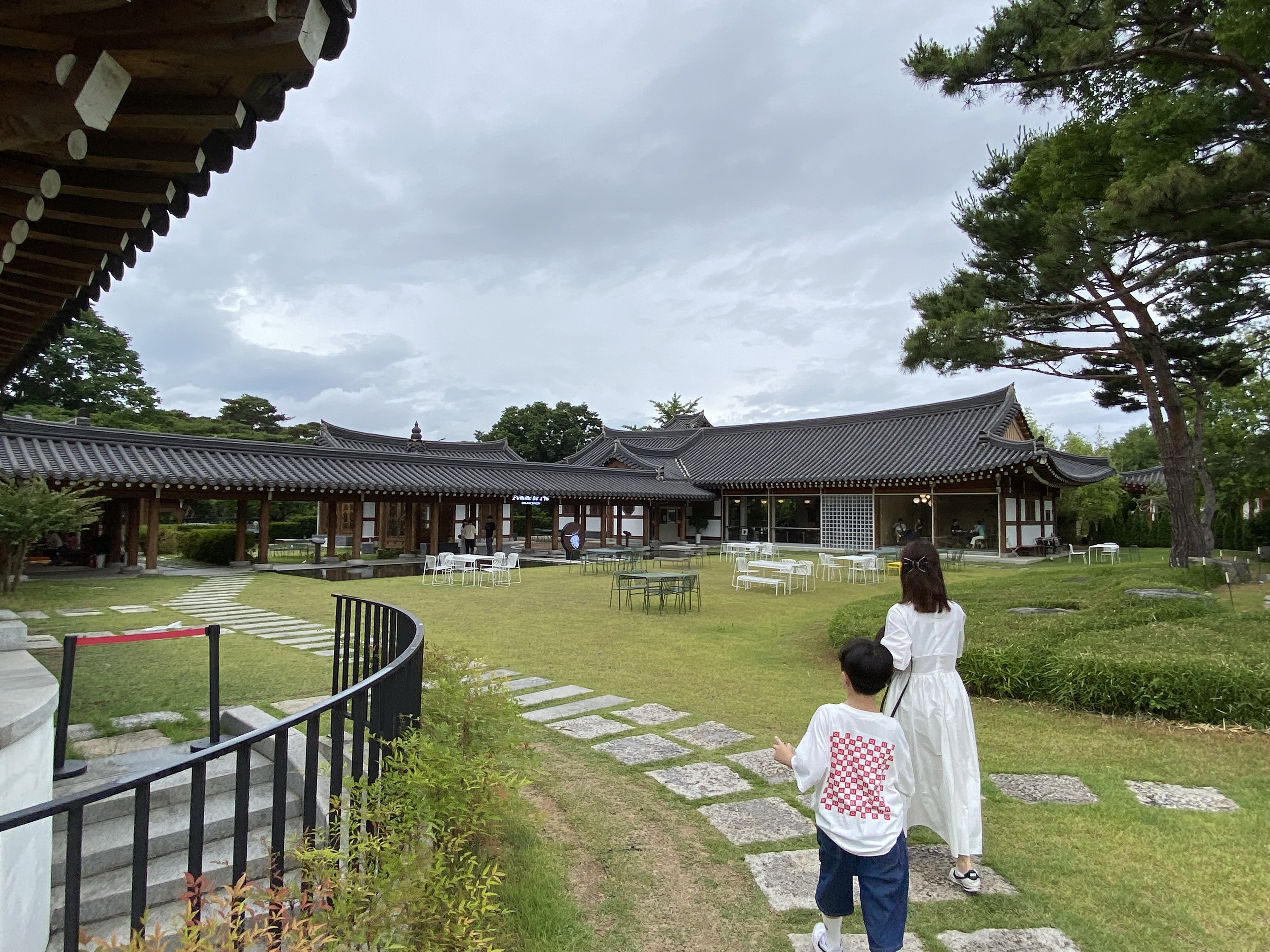 주차를 하고 안내 표지판을 따라 들어가니 폼드팡 경주점 넓은 정원이 나오고 이쁜 한옥 건물이 보입니다.