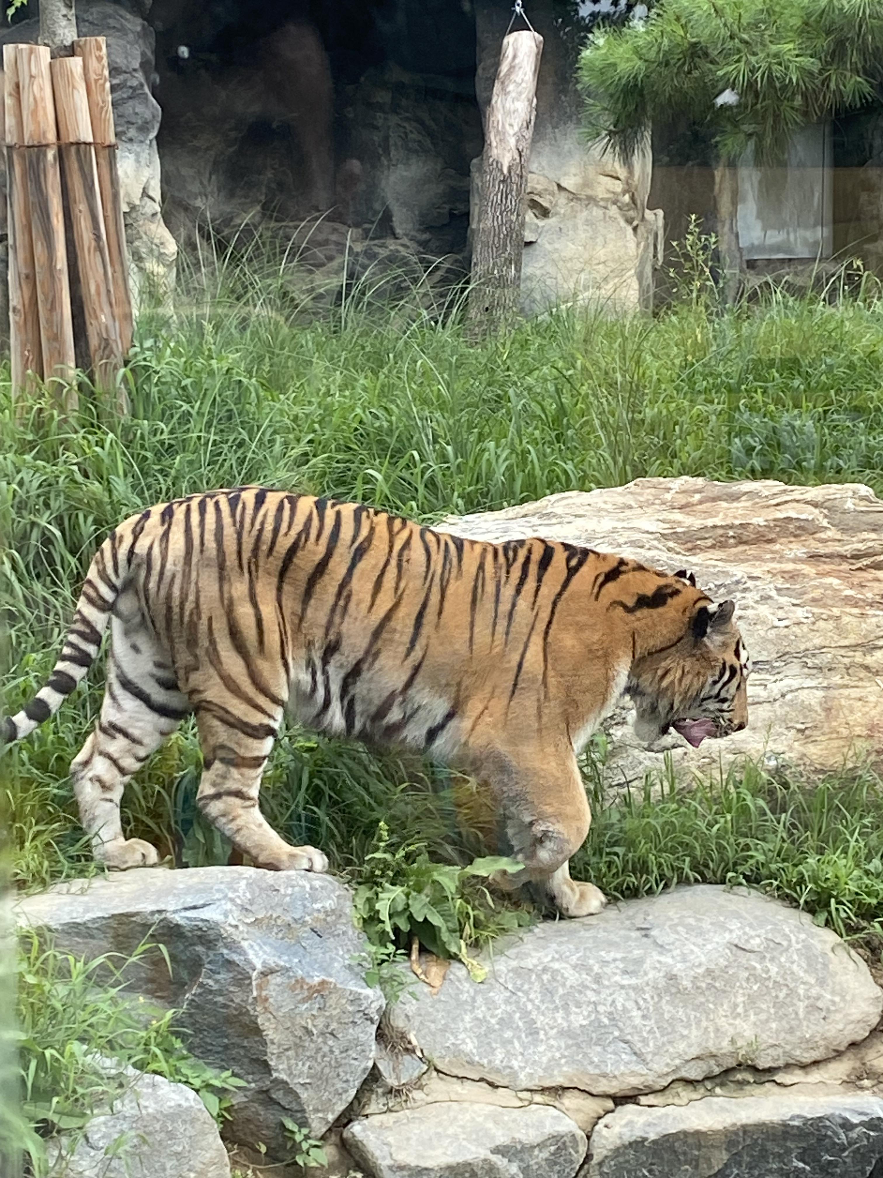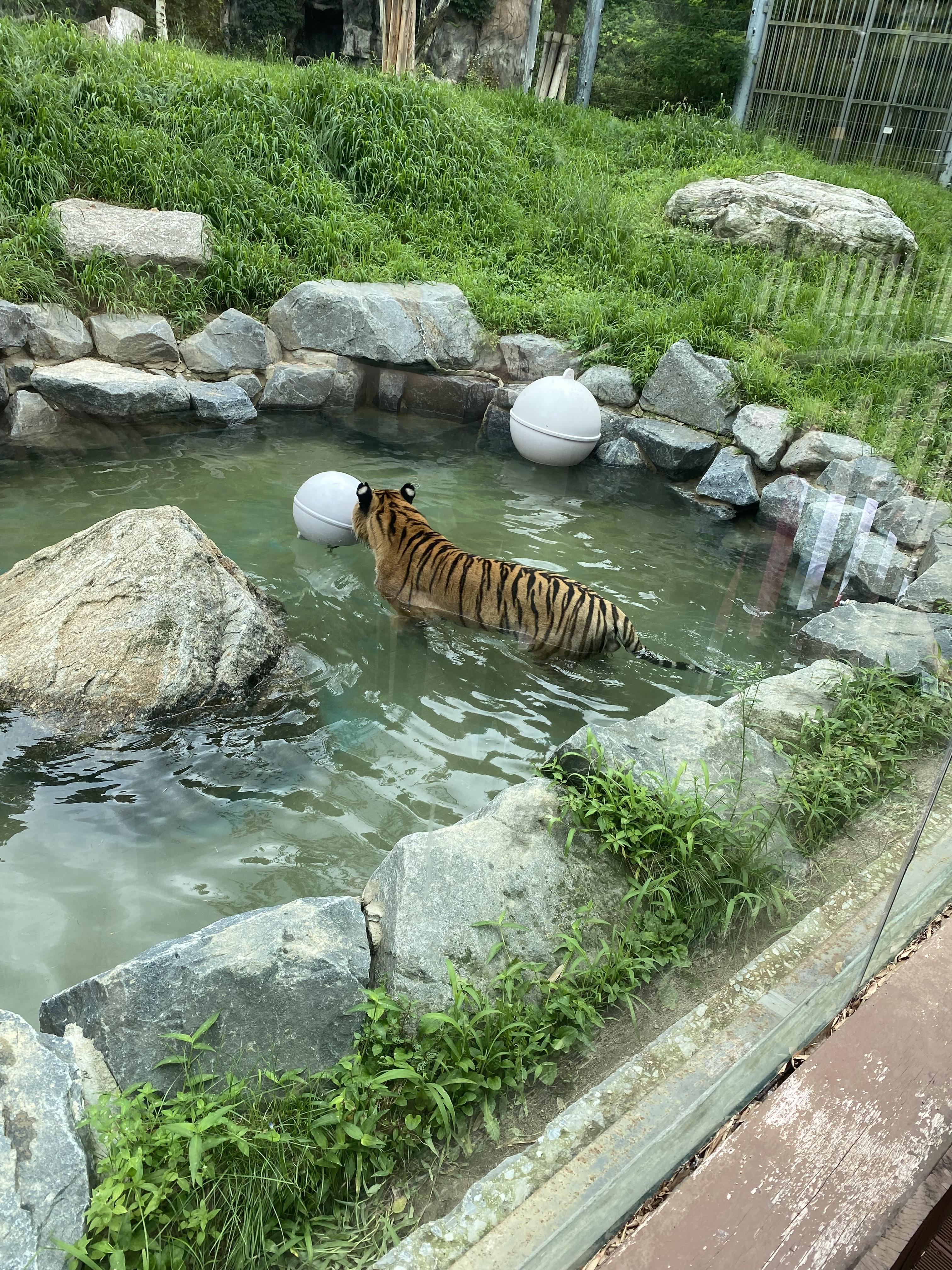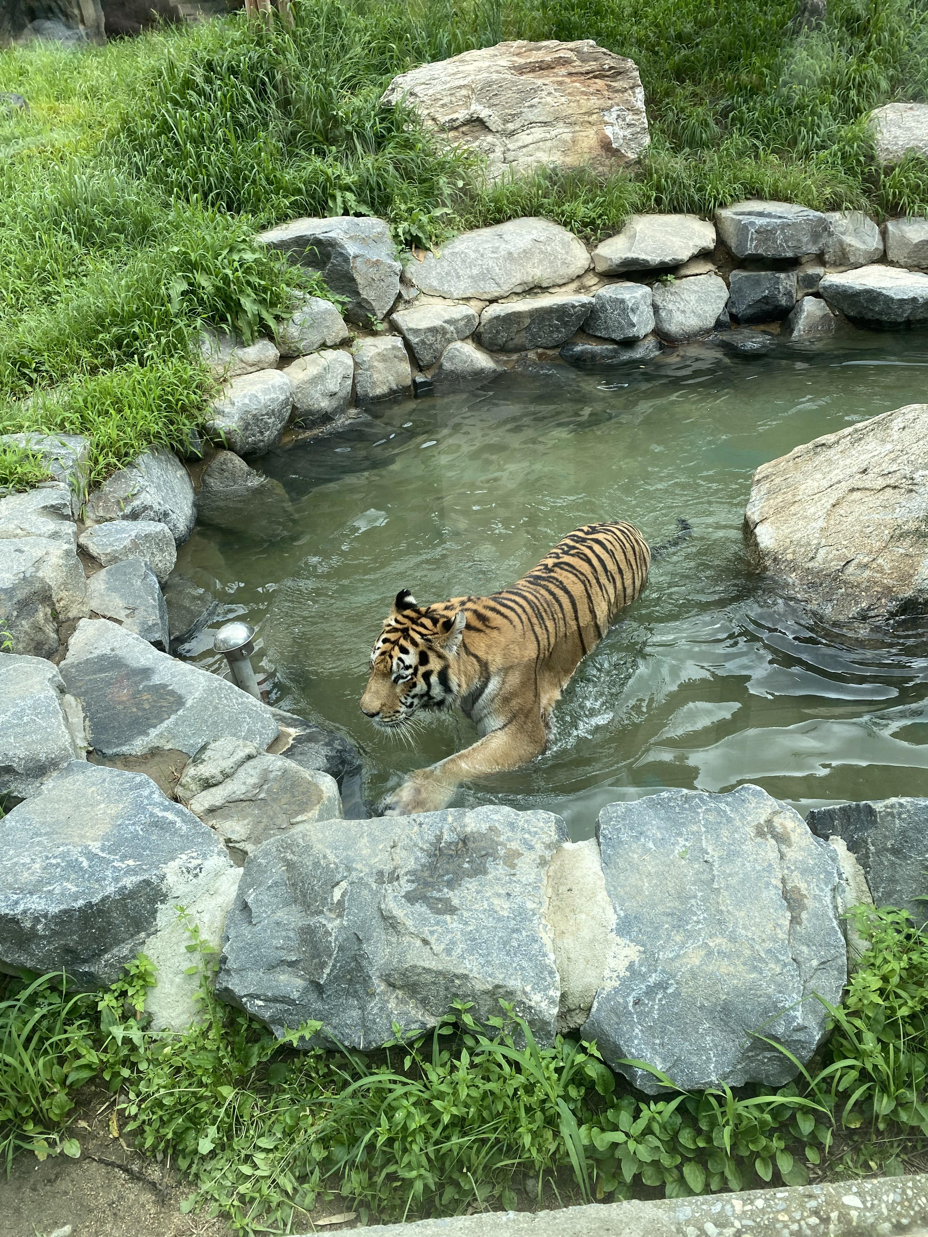 그리고 호랑이~!! 역시 아이들에겐 호랑이가 최고 인기 동물이 아닌가 싶네요. 너무 더워서 그늘에 들어가 있었는데 운 좋게도 한 마리가 물웅덩이로 오더니 매우 가까운 거리에서 관찰할 수가 있었습니다.