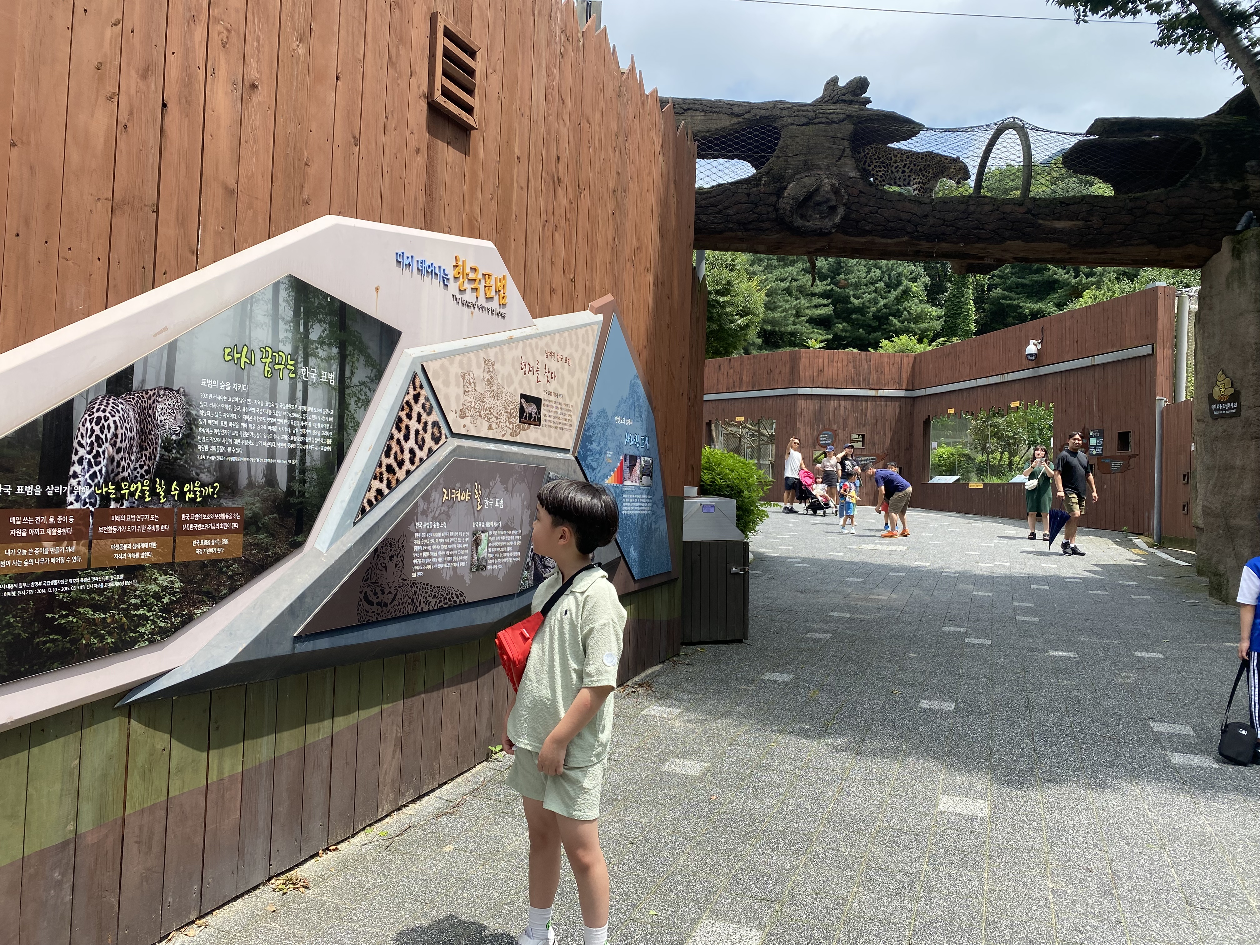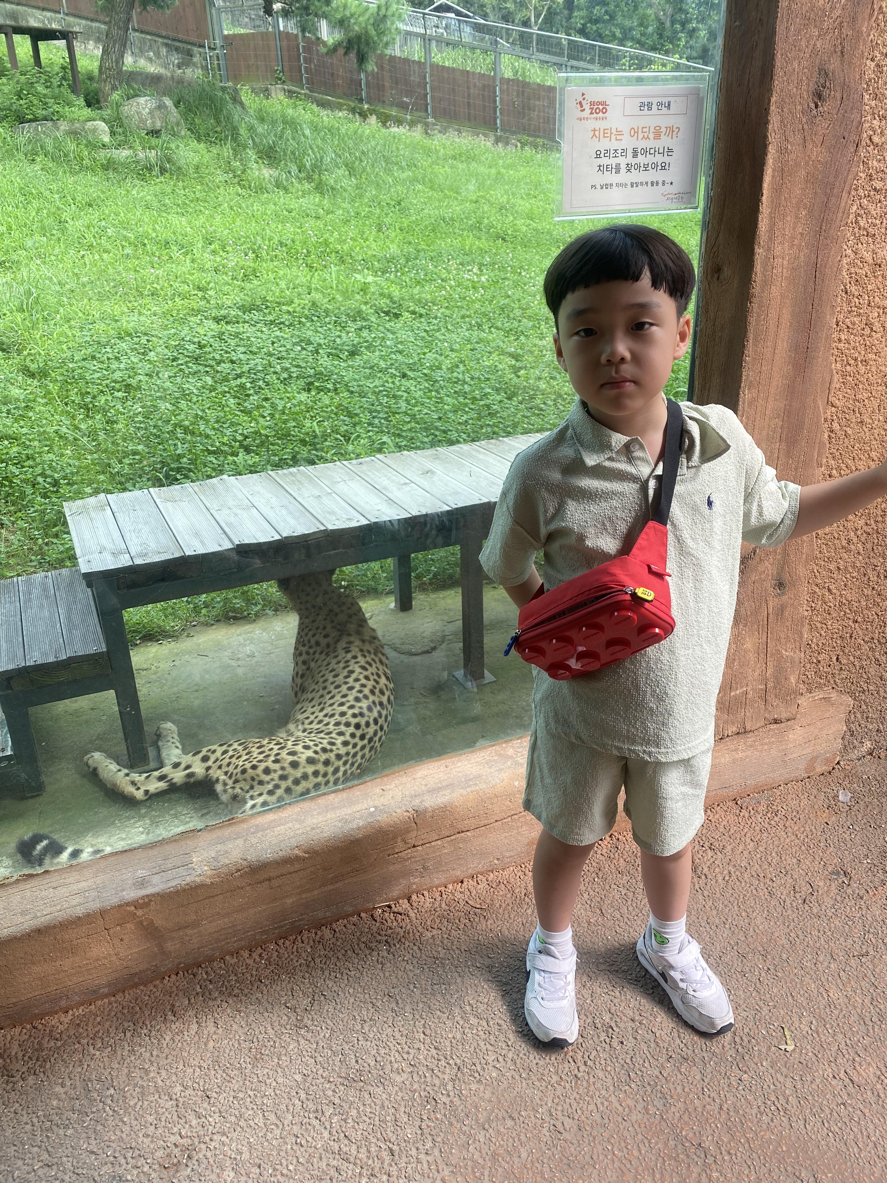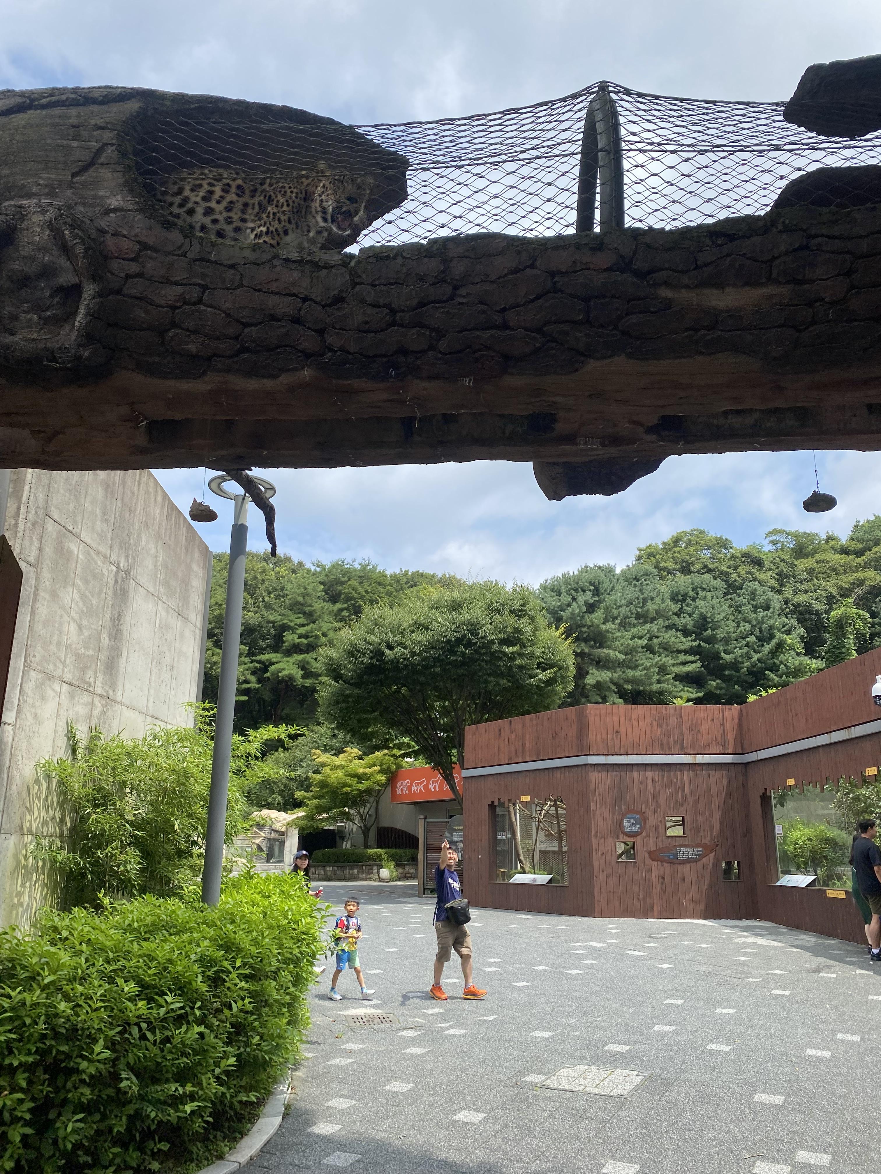 스카이리프트 종점에서 제일 먼저 시작한 동물원 관람은 표범이 아들을 반겨줬습니다.