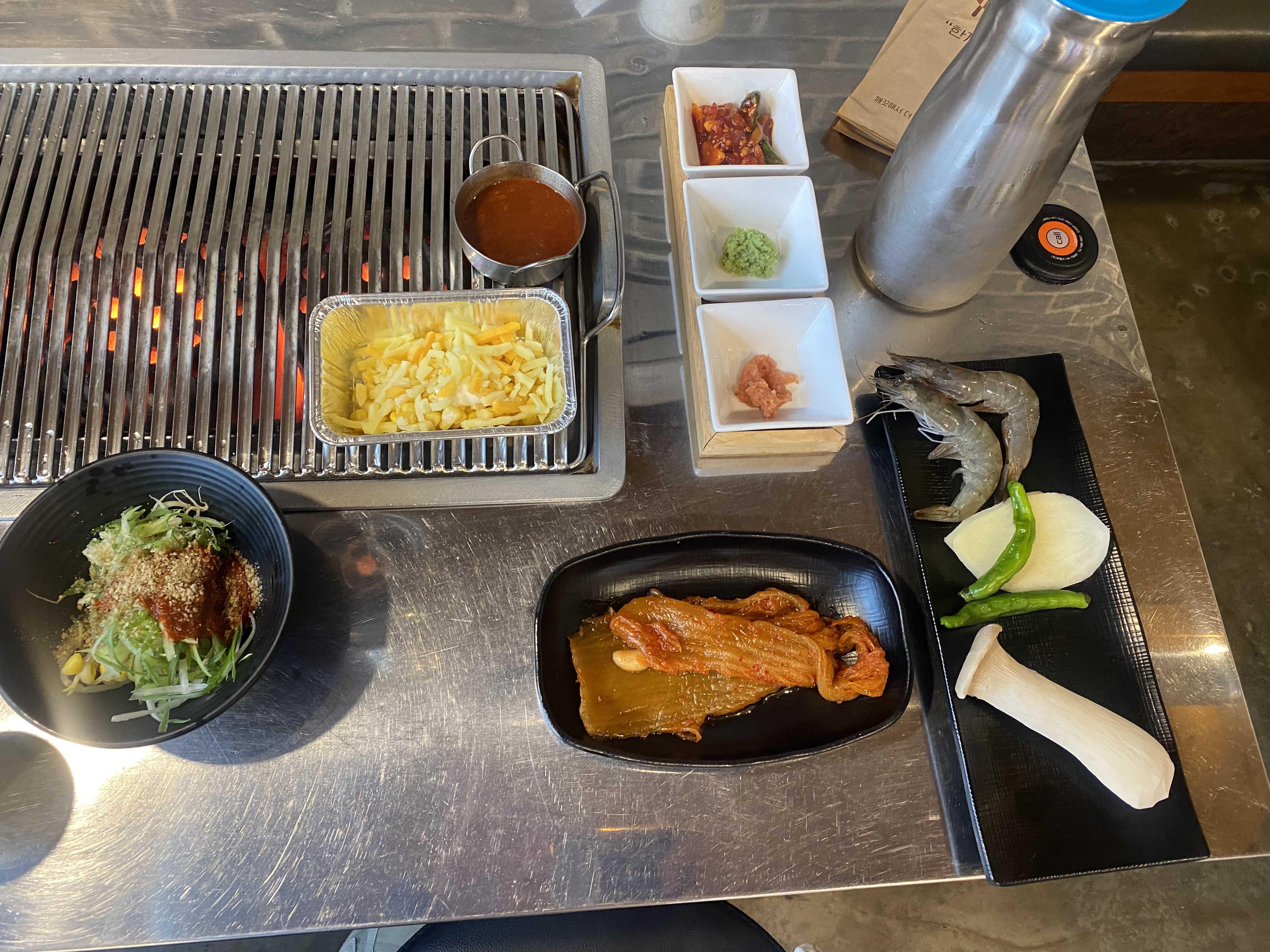 군산 맛집 편을 소개하고 있는데요, 오늘은 3박 4일 여행 중 개인적으로 가장 기억에 남는 맛집이 아닐까 생각됩니다. 유튜브나 블로그, 인스타에 보면 군산 맛집으로 유명한 곳들이 많이 소개되어 있는데 아쉽게도 추석 시즌에 방문했더니 휴무하는 곳이 있어서 계획했던 맛집 투어는 스케줄이 많이 꼬이고 결국 군산 시내에서는 맛집으로 소개된 곳은 한곳도 가보지 못했답니다ㅠㅠ 그래서 그런지 오늘 소개하는 곳이 특별히 더 맛있는 거보다는 맛집 소개가 안된 곳인데 너무 맛있어서 기억에 남는 게 아닐까~ 암튼 군산 재방문하면 꼭 다시 들리고 싶은 곳이기도 하고요 상호는 '연탄구이 미리내'입니다.