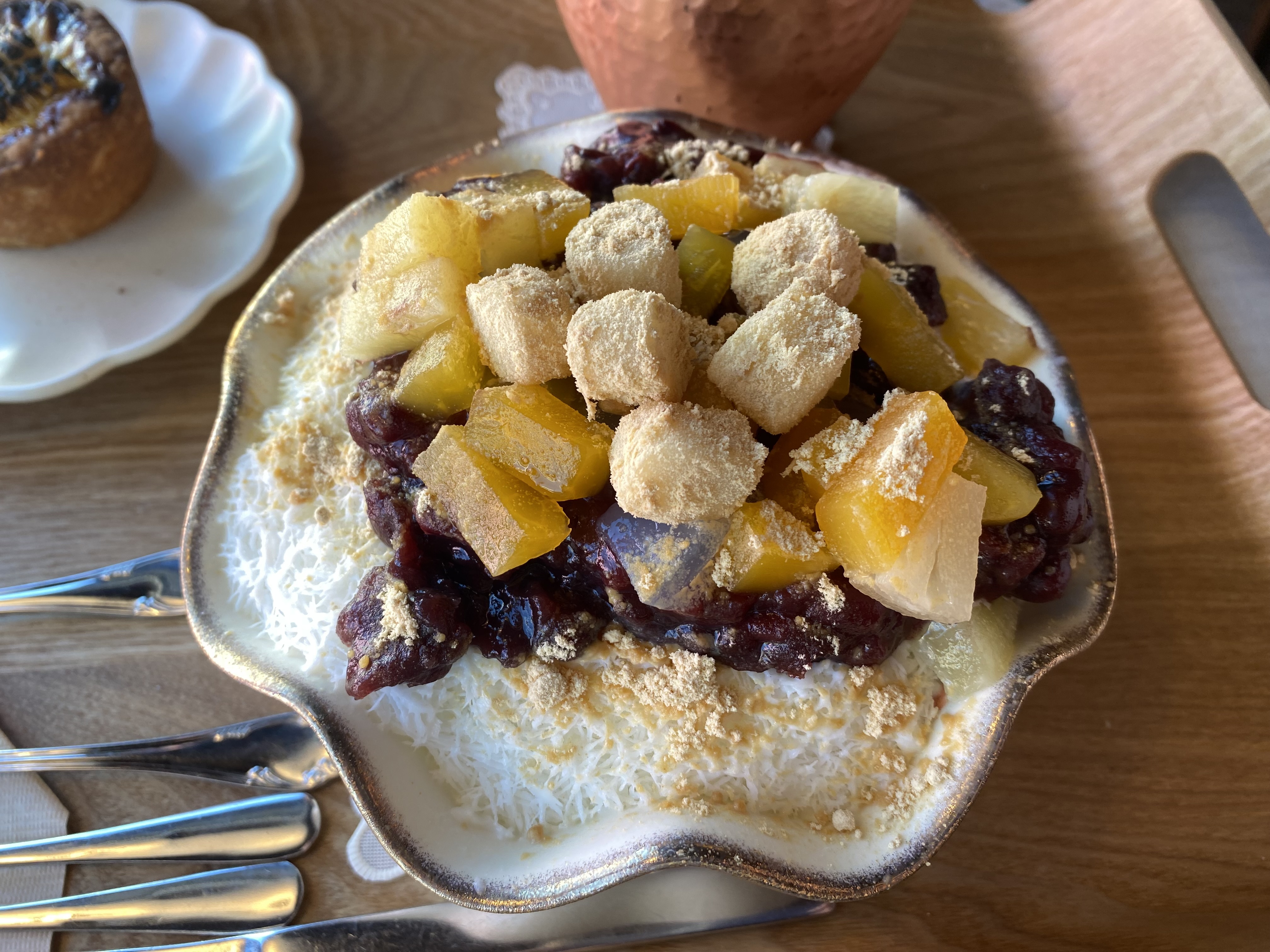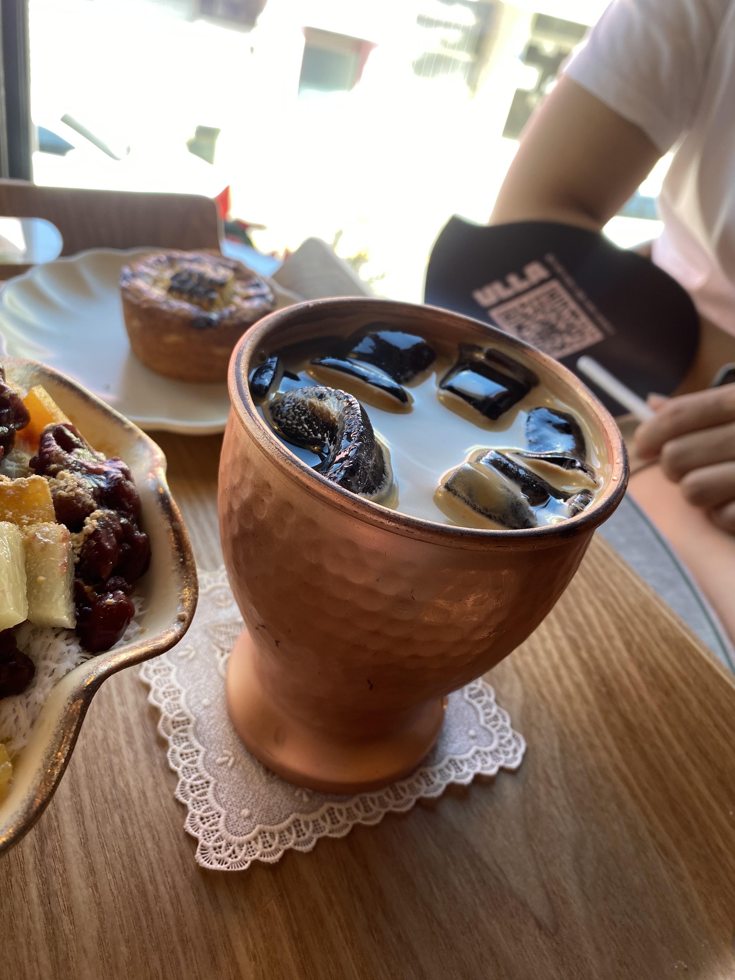 시원한 팥빙수 한 그릇과 커피 한 잔으로 주문을 했습니다. 냉장고 안에 들어있는 밀크티도 맛보고 싶었으나 참고 또 참아야 했습니다.