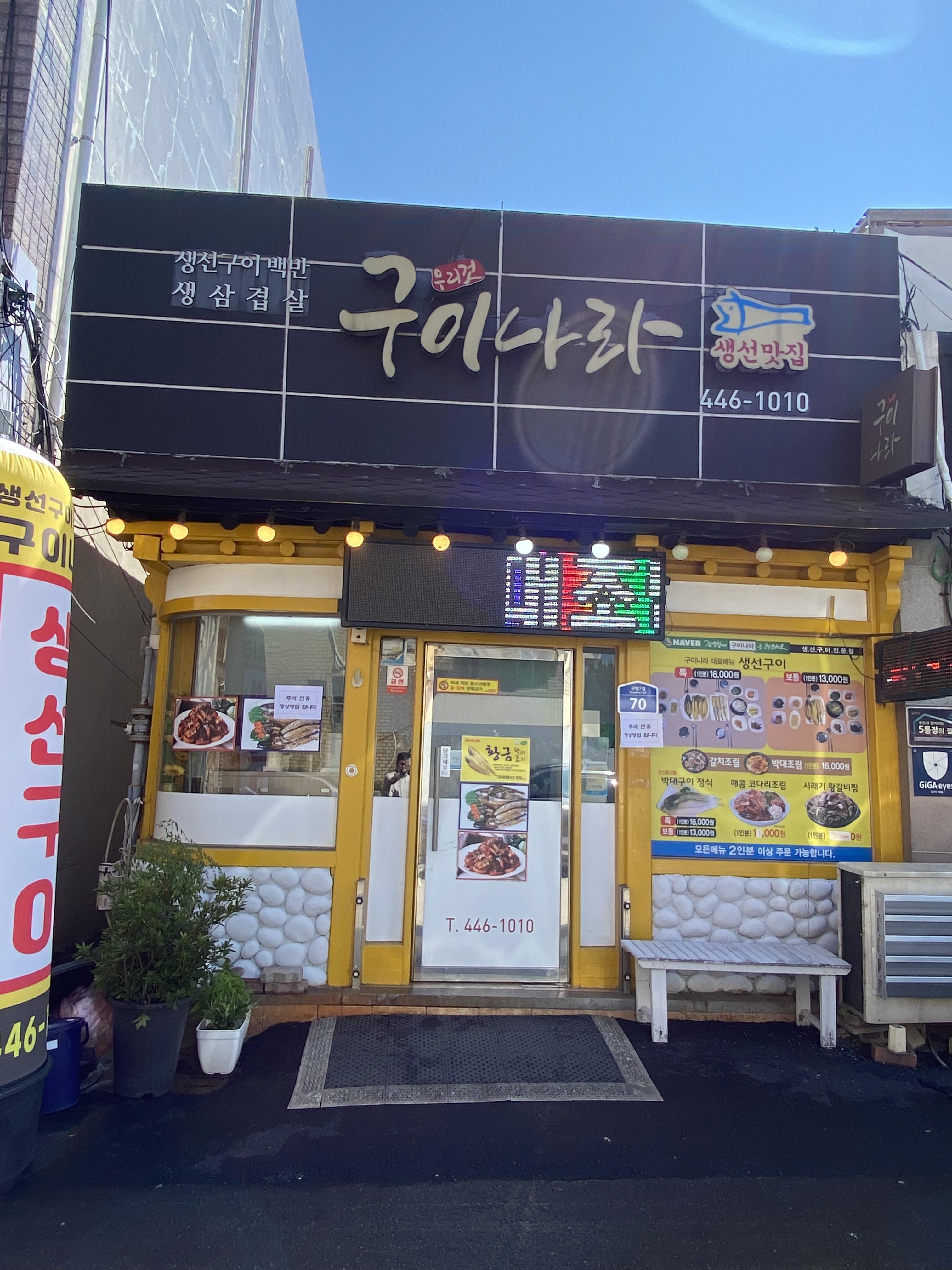 즐거운 3박 4일간의 군산 여행 중 먼저 맛집 소개 글을 올리고 있는데요, 이번 글은 맛집이라기보다는 그냥 추석 당일 대부분 식당이 문을 닫아 어쩔 수 없이 영업 중인 식당을 소개받아 방문한 생선구이 식당 이용 후기 편입니다. 상호는 특별한 게 없어서 '군산 구이나라'로 검색하니 지도에 표시가 되네요.
