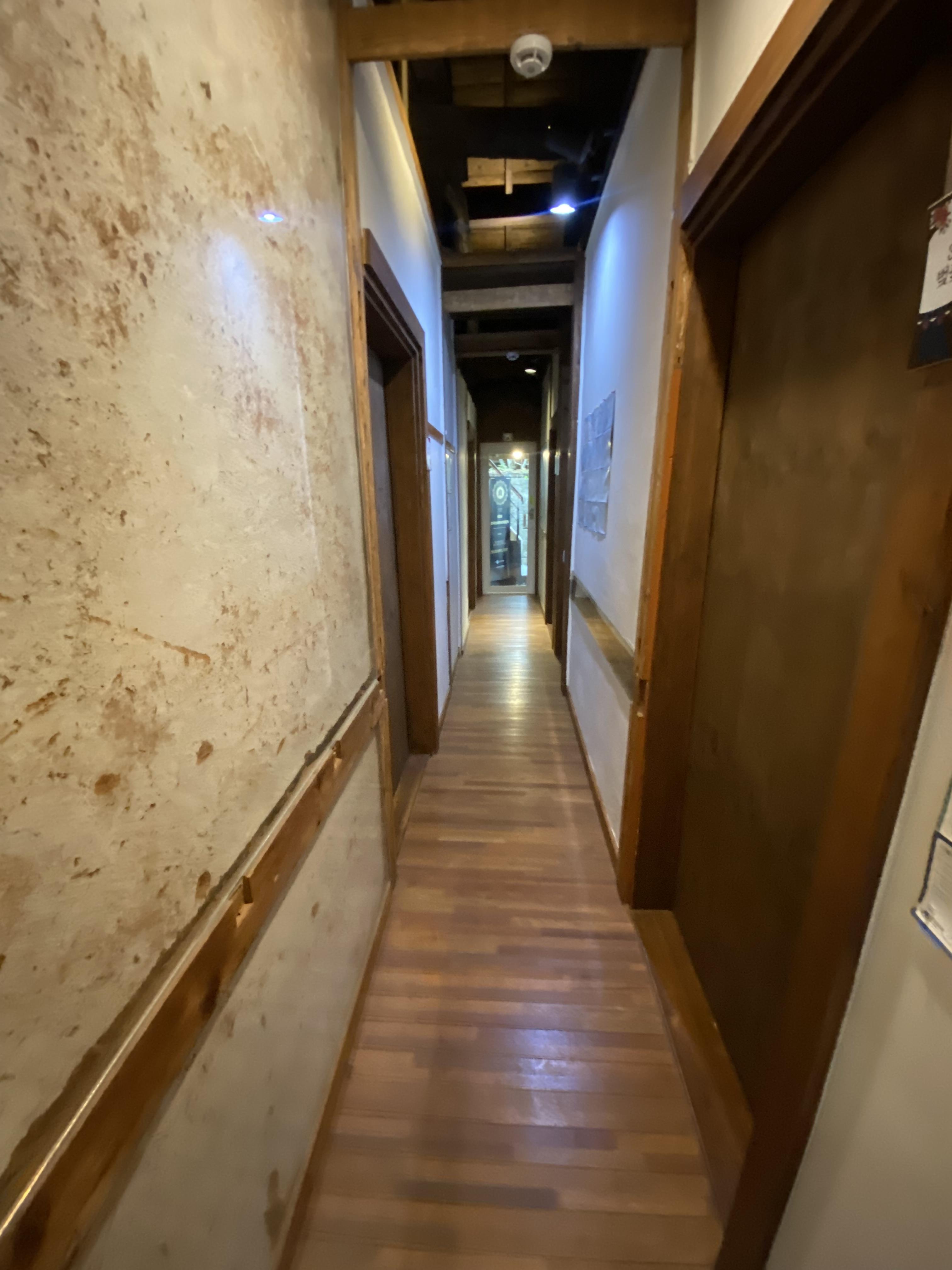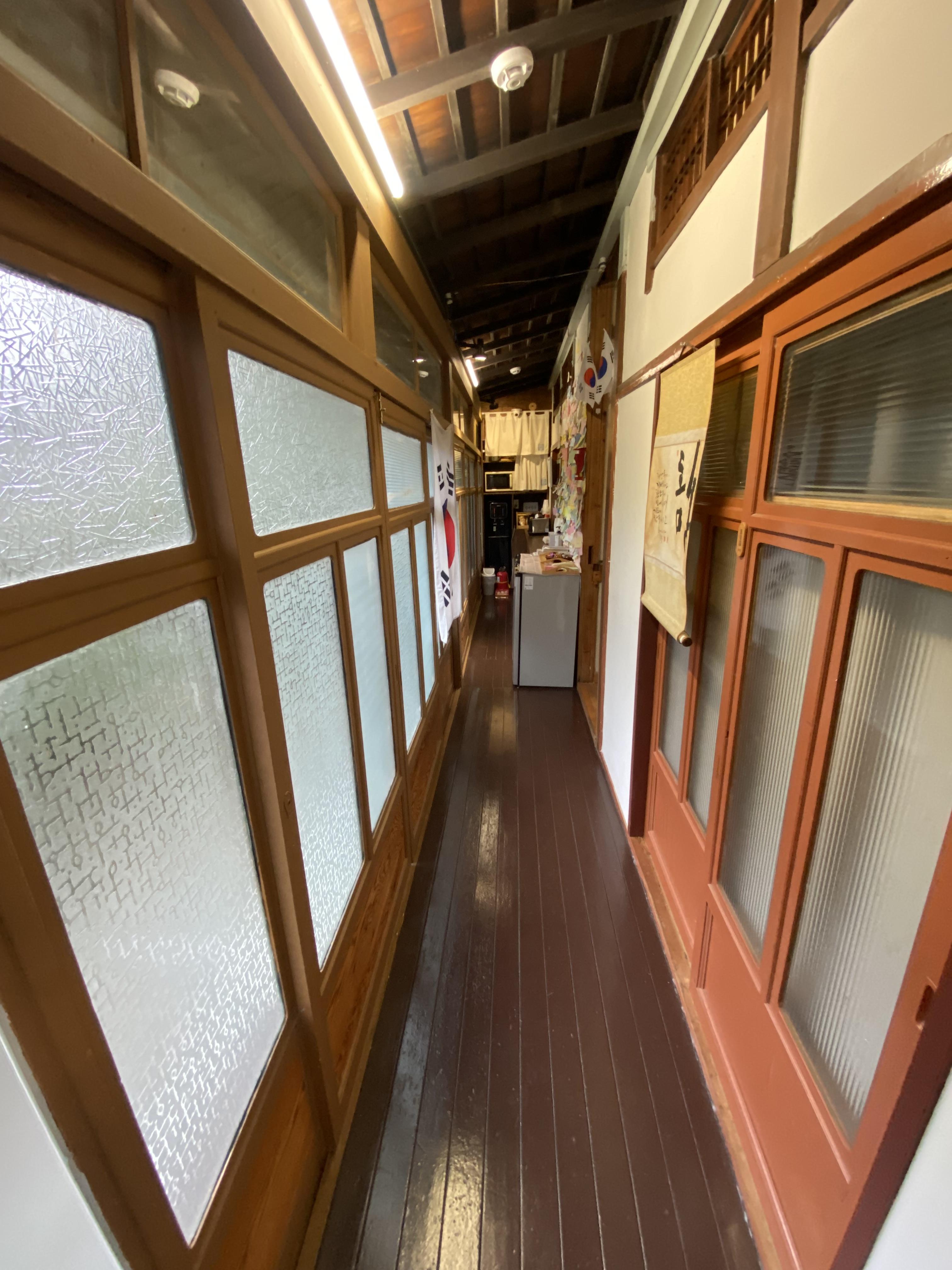 건물 뒤로 돌아가면 신발장이 있고 복도를 따라 각 방들이 있습니다.