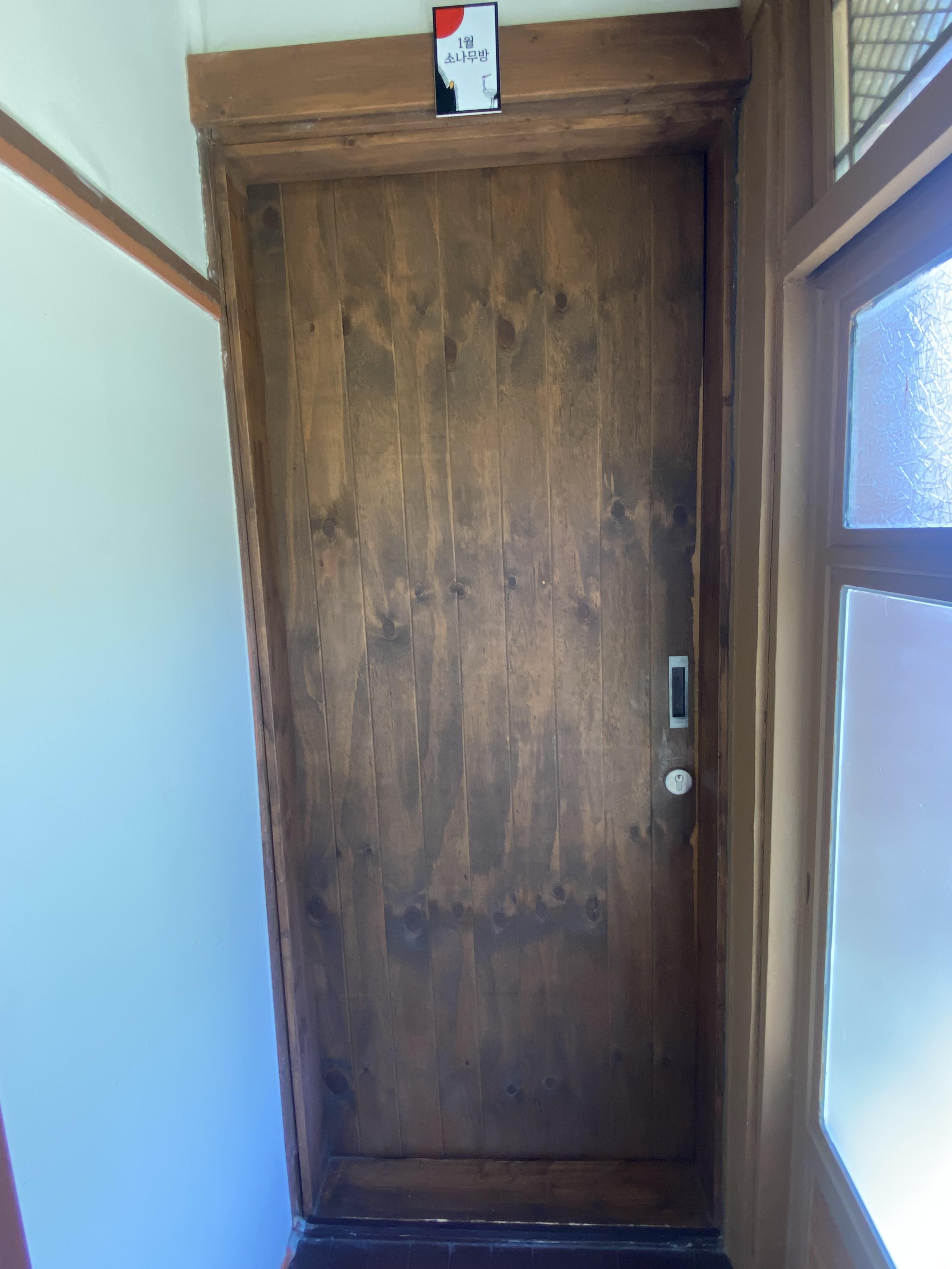 저희가 예약한 방은 가장 큰 방으로 굳이 뒤로 돌아갈 필요 없이 앞 마당에서 바로 들어가면 되는데 1월 소나무 방이었습니다.