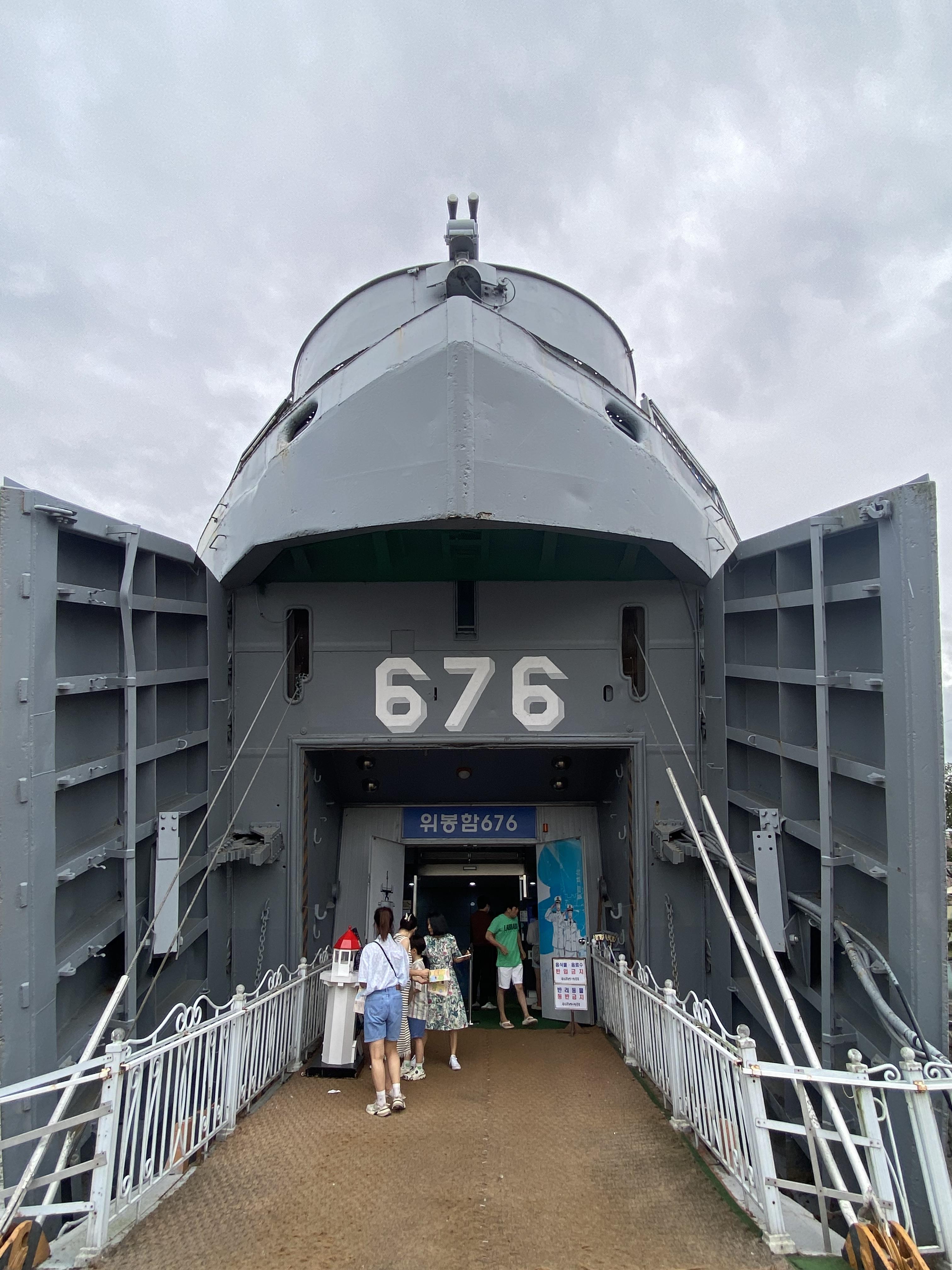 진포해양테마공원 주인공이라고 해야 할까요? 가장 큰 위봉함 676호가 전시되어 있는데 직접 실내로 들어가 체험을 할 수 있습니다.