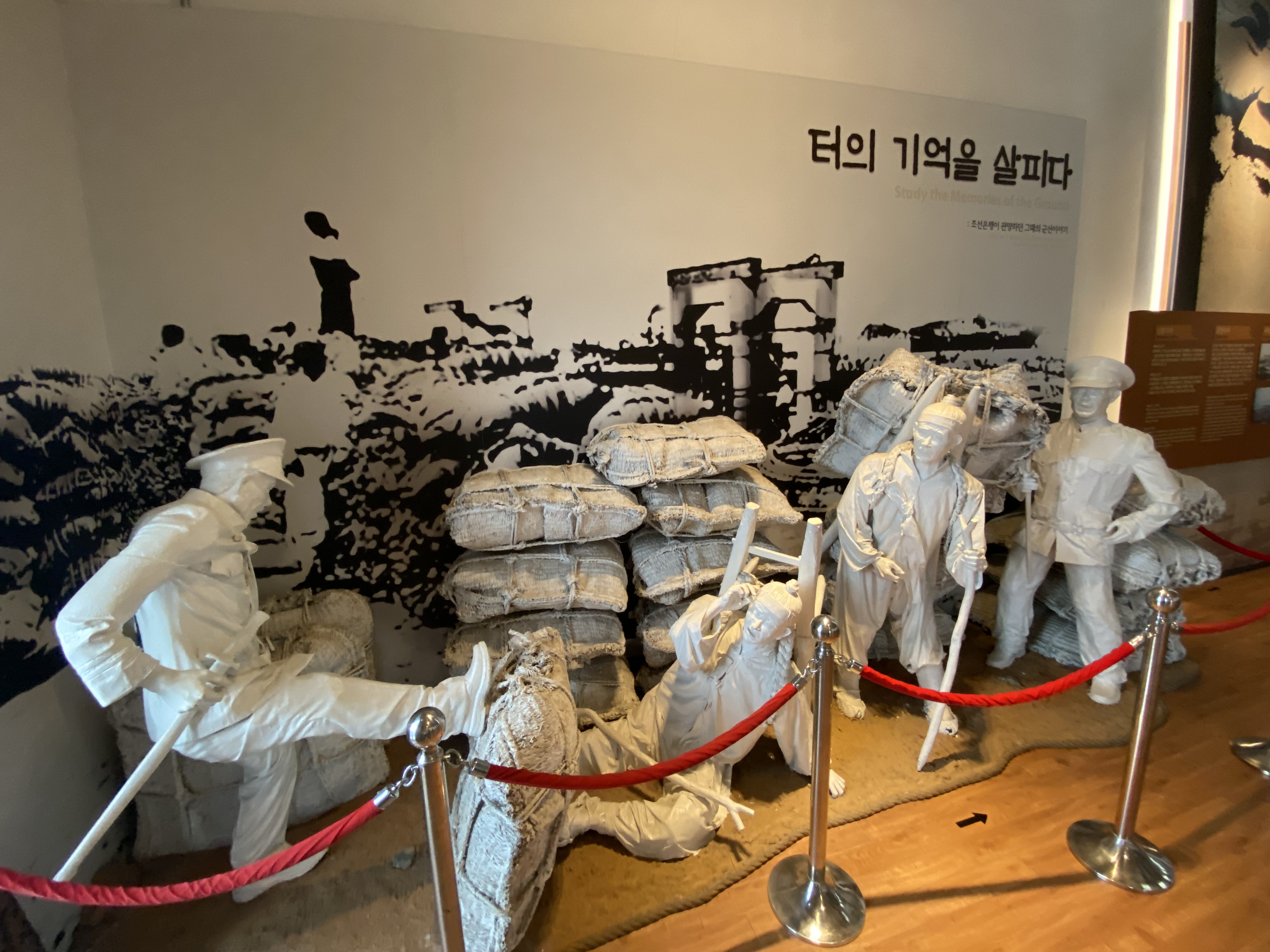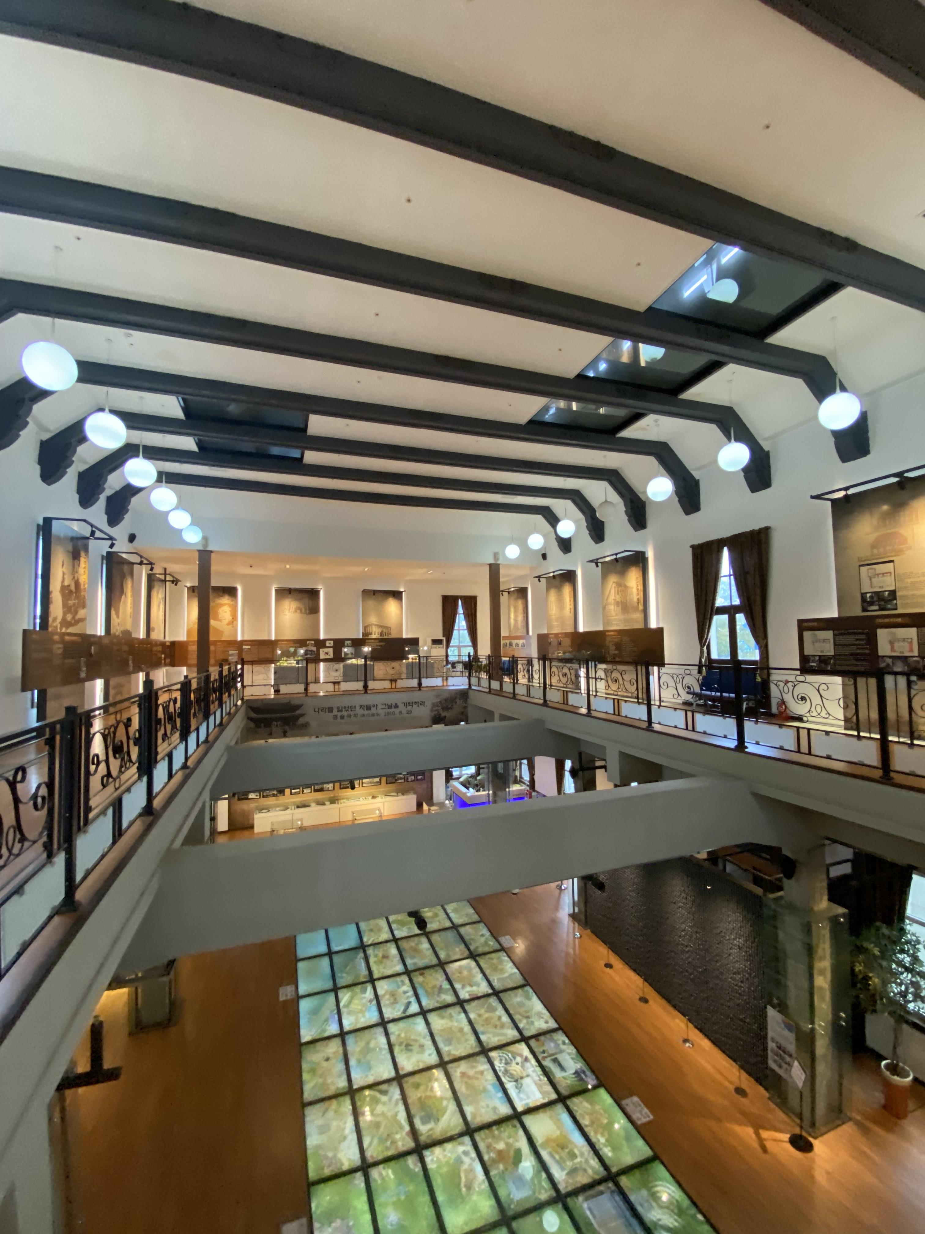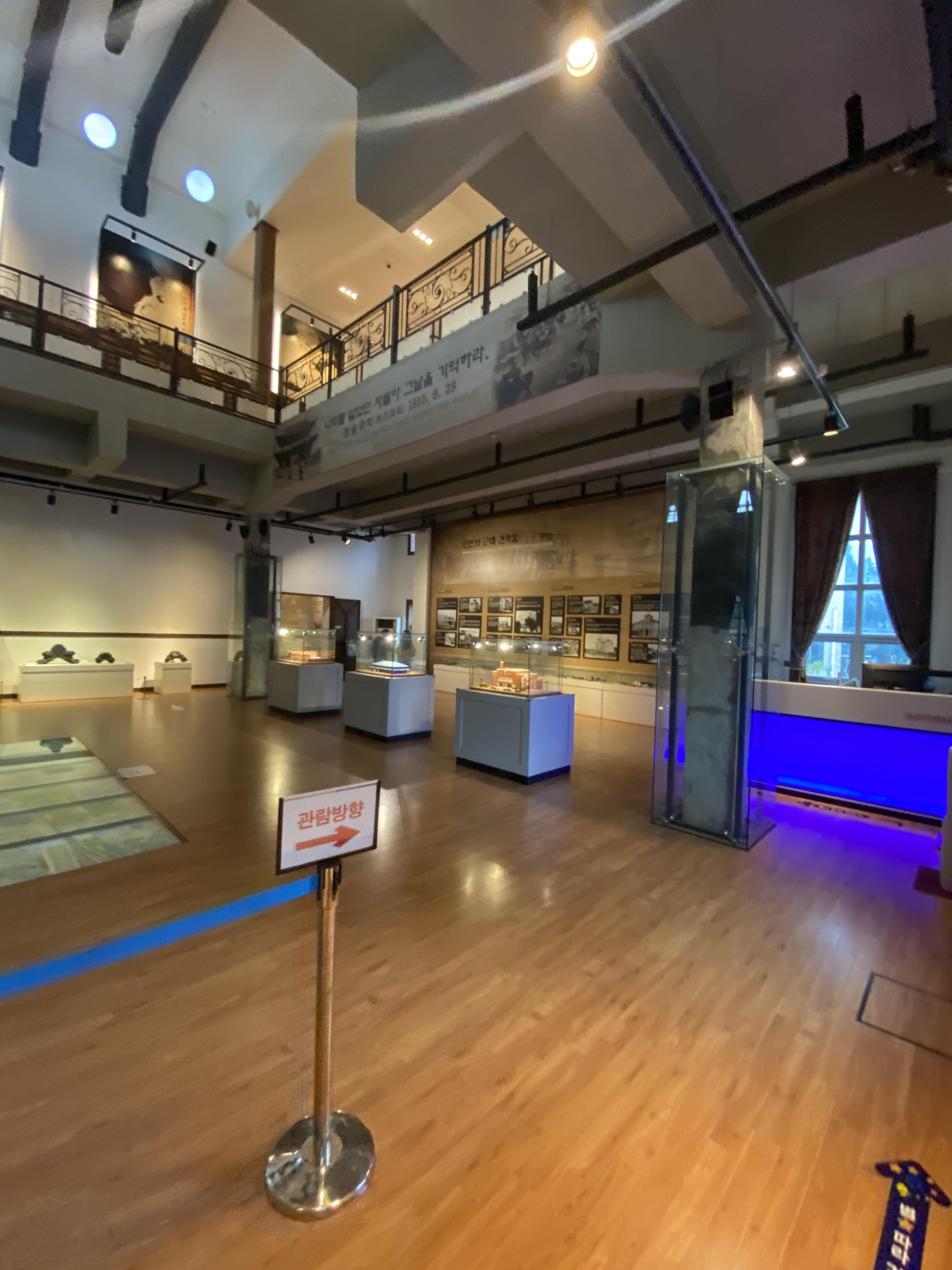2층으로 올라가면 모서리 한쪽에 조선의 물자를 수탈하는 모습으로 조형물을 설치해놨고요, 2층에서 바라본 전경인데 독특한 느낌입니다.