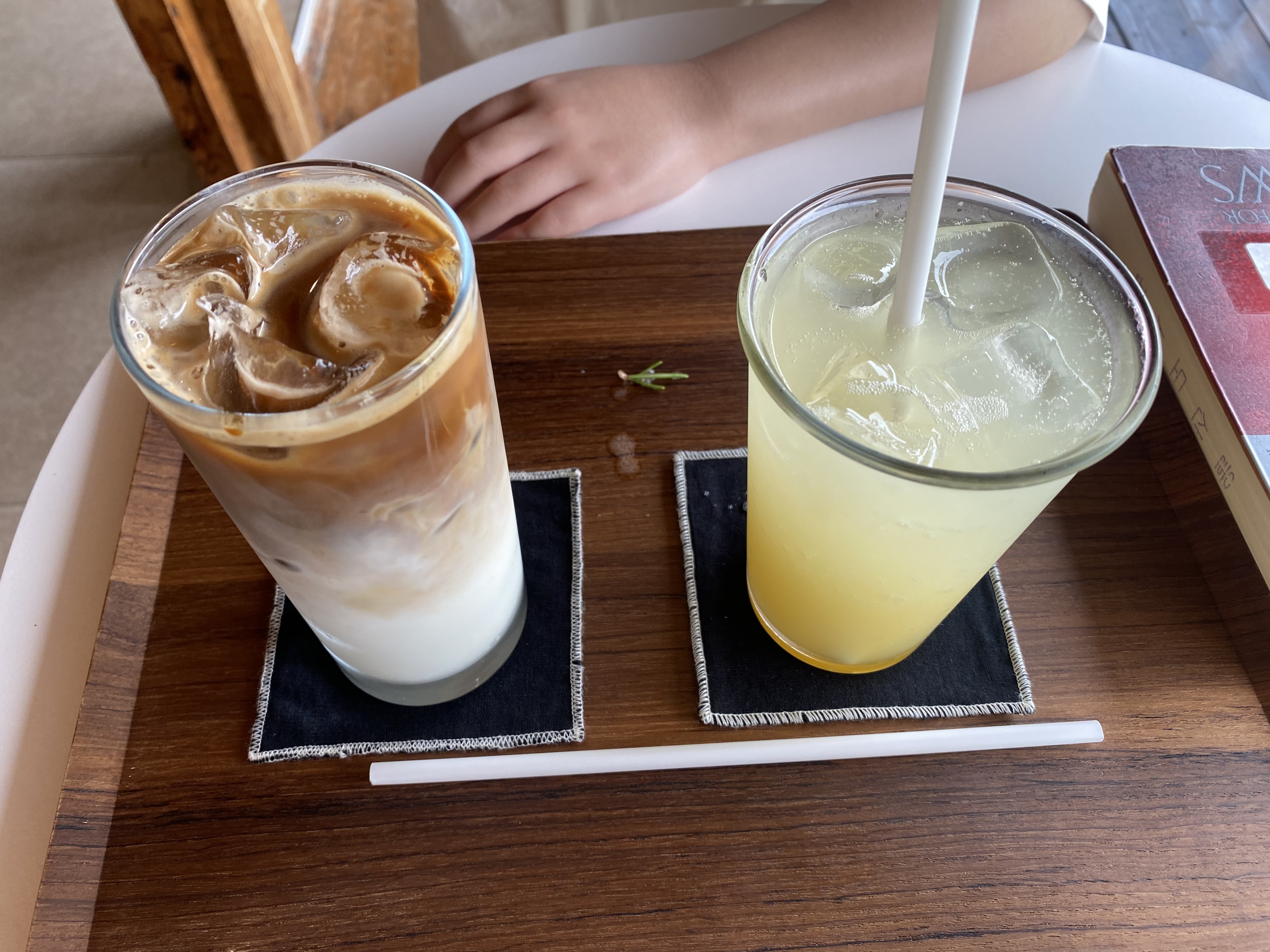 서둘러 실내로 들어가니 마침 2인용 테이블이 비어 있어서 자리를 잡고 메뉴를 보는데~~ 선택이라곤 별로 할 것도 없는 아주 초 깔끔 단출한 음료 메뉴 구성에 아빠는 추천으로 되어 있는 시원한 라떼 한 잔을, 아들은 시원한 유자 주스를 선택했습니다.