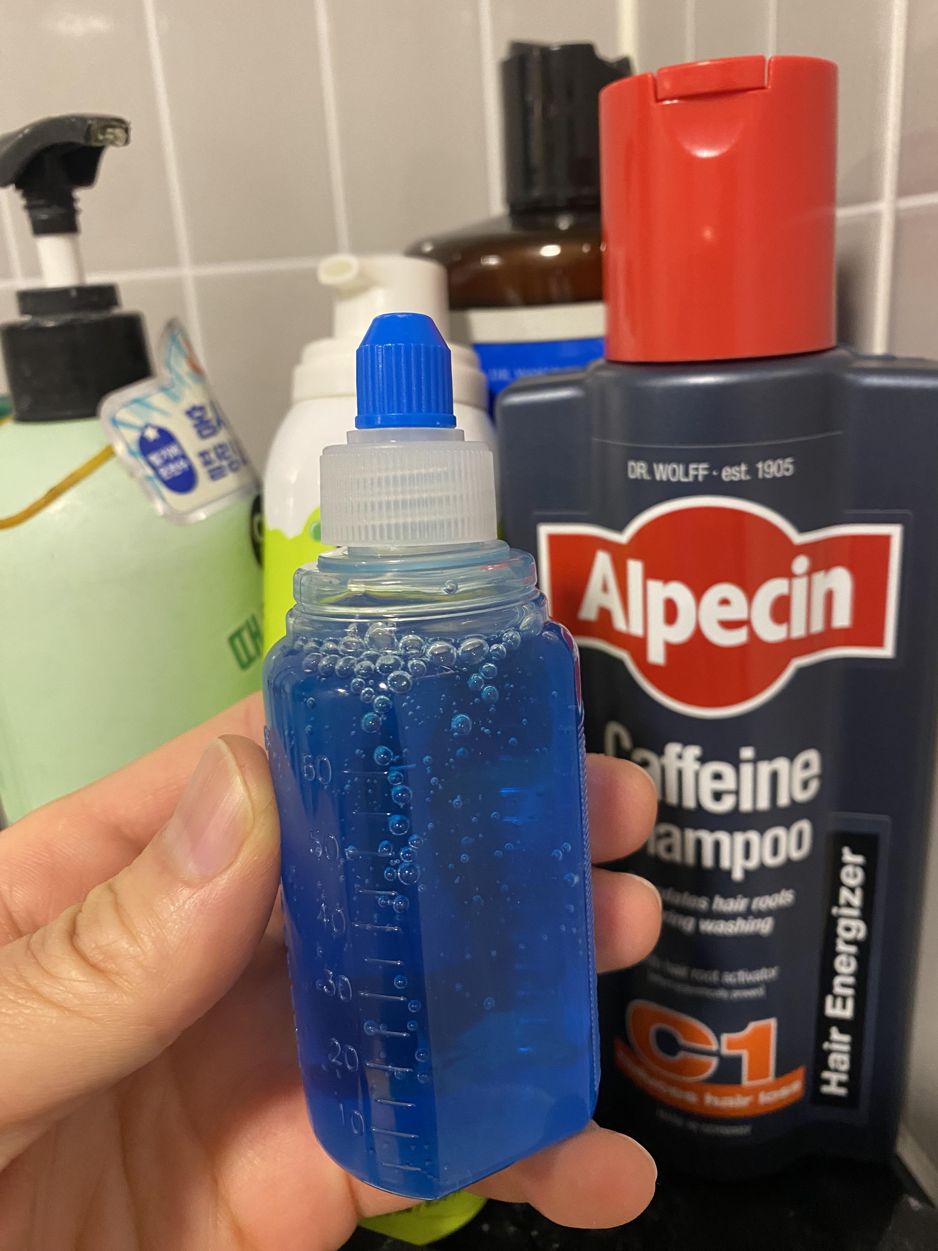 C1 카페인 샴푸 색깔은 파란색이네요. 운동하거나 여행을 갈 때 휴대용으로 간편하게 들고 다니기 쉽게 아들 다 먹고 재활용하는 감기약 통에 가득 담아봤습니다. 쿠팡에서 375ml 제품 단품으로 10,720원에 구입을 했고 10/23부터 물품을 수령해 매일 하루 한 번 저녁에 2분 이상 두피에 스며들게 시간을 두고 사용 중에 있습니다. 시원한 쿨링감은 기존 사용했던 헤드앤숄더 울트라 쿨 멘솔 샴푸와 비교했을 때 그 이상으로 쿨링감이 좋습니다. 두피 진정 효과도 좋고 비듬도 거의 발생되지 않고 말이죠. 기존 멘솔 샴푸와 비교했을 때 가격은 거의 4.5배 정도 차이가 나는데 체감효과는 날씨가 겨울로 넘어가려고 해서 그런지 모르겠으나 일단 탈모 증상은 기존에 한참 심할 때보다는 많이 진정이 된 거 같습니다. 위험한 고비는 넘겼다는 느낌적 느낌이 든달까요? 플라시보 효과일까요? 암튼 심리적 안정 효과가 발휘되어서 그런 건지 탈모샴푸가 효과가 좋아서 그런지는 좀 더 지켜봐야겠는데 일단 두피에 열 많은 분들은 요 샴푸도 강추할만합니다.