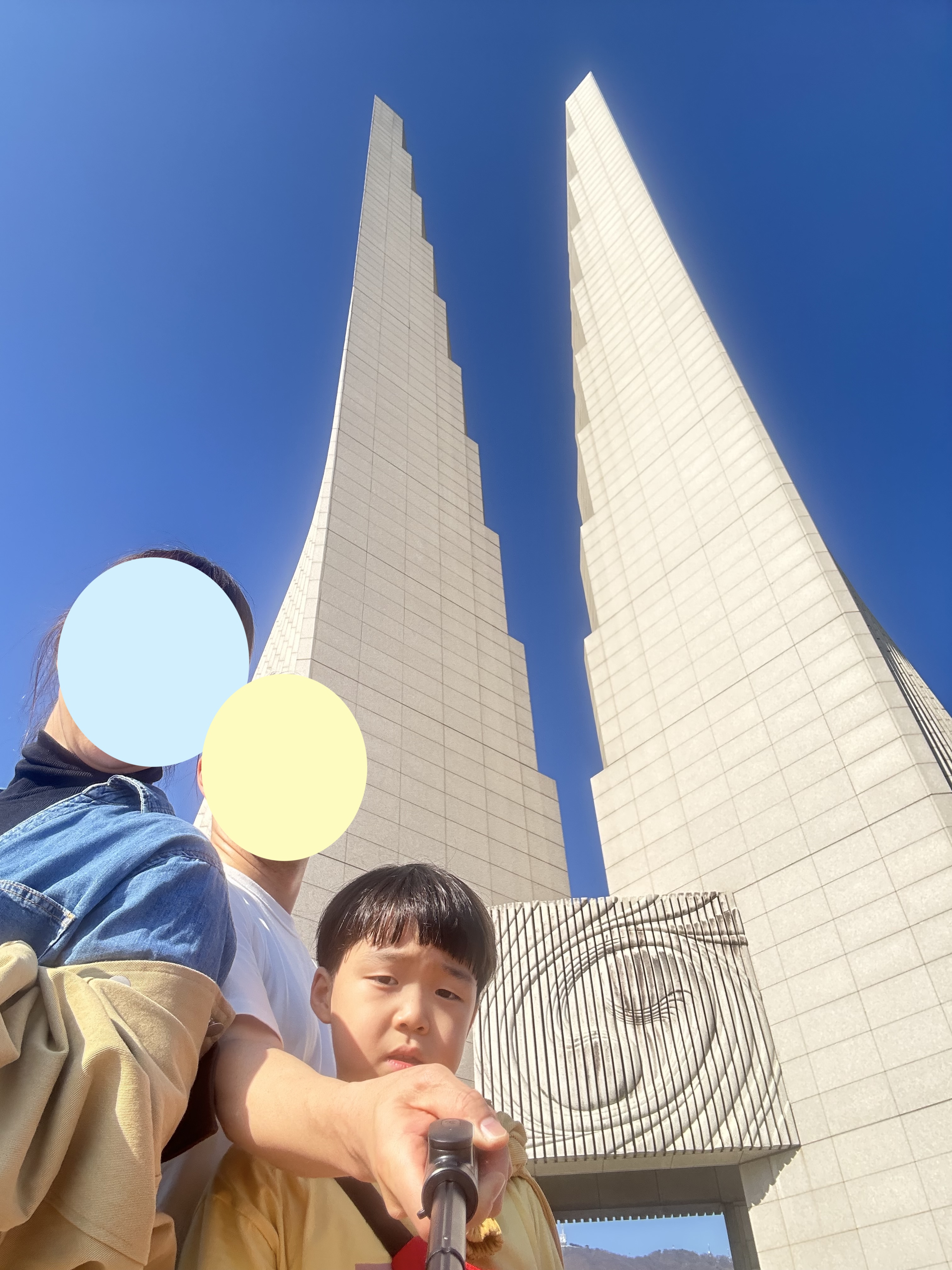 독립기념관 탑 아래에서 셀카봉 본격적인 테스트를 해봤습니다. 역시나 전체 길이가 살짝 아쉽기는 하지만 그래도 안정적으로 셀카봉 조작이 가능해 사용면에서는 무척 만족합니다.