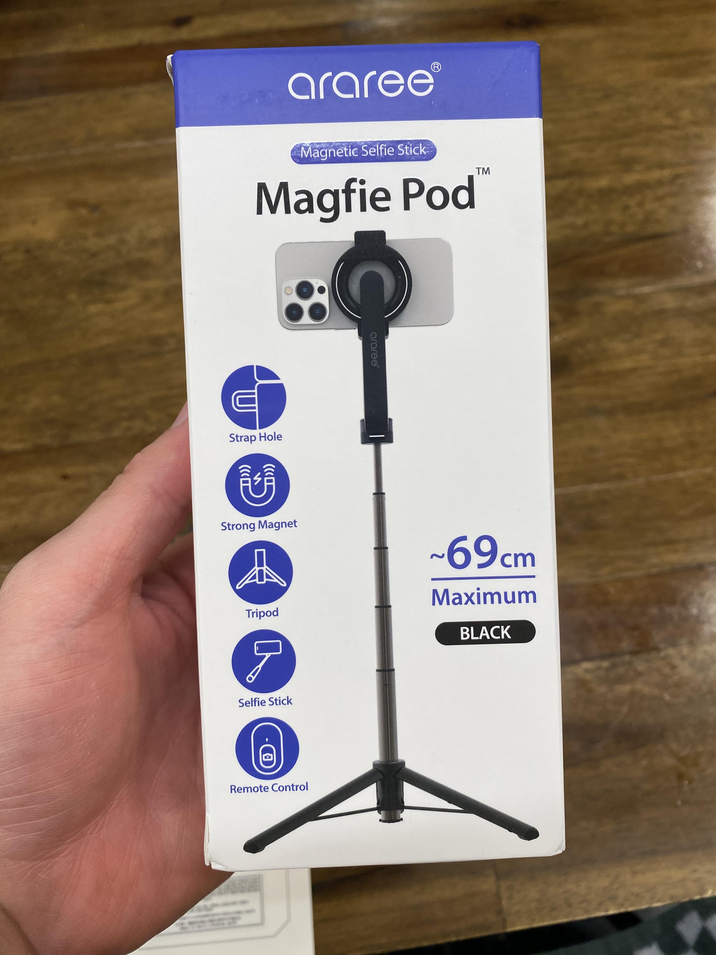 아마도 맥세이프 지원되는 기능으로 인해 아이폰 액세서리가 요 기능이 있는 제품군으로 대세 형성되고 있는 거 같은데 그중에서도 저희 집에 꼭 필요했던 제품! 바로바로~~~ 맥세이프 셀카봉입니다. 셀카봉이 워낙 대중화되어서 기능도 다양화되어 가고 있는데 그중에서 가장 최신 버전이 바로 요 맥세이프 지원되는 셀카봉이 아닐까 생각됩니다. 제가 쿠팡에서 구입한 제품은 '아라리 맥피포드 맥세이프 접이식 삼각대 셀카봉'입니다.