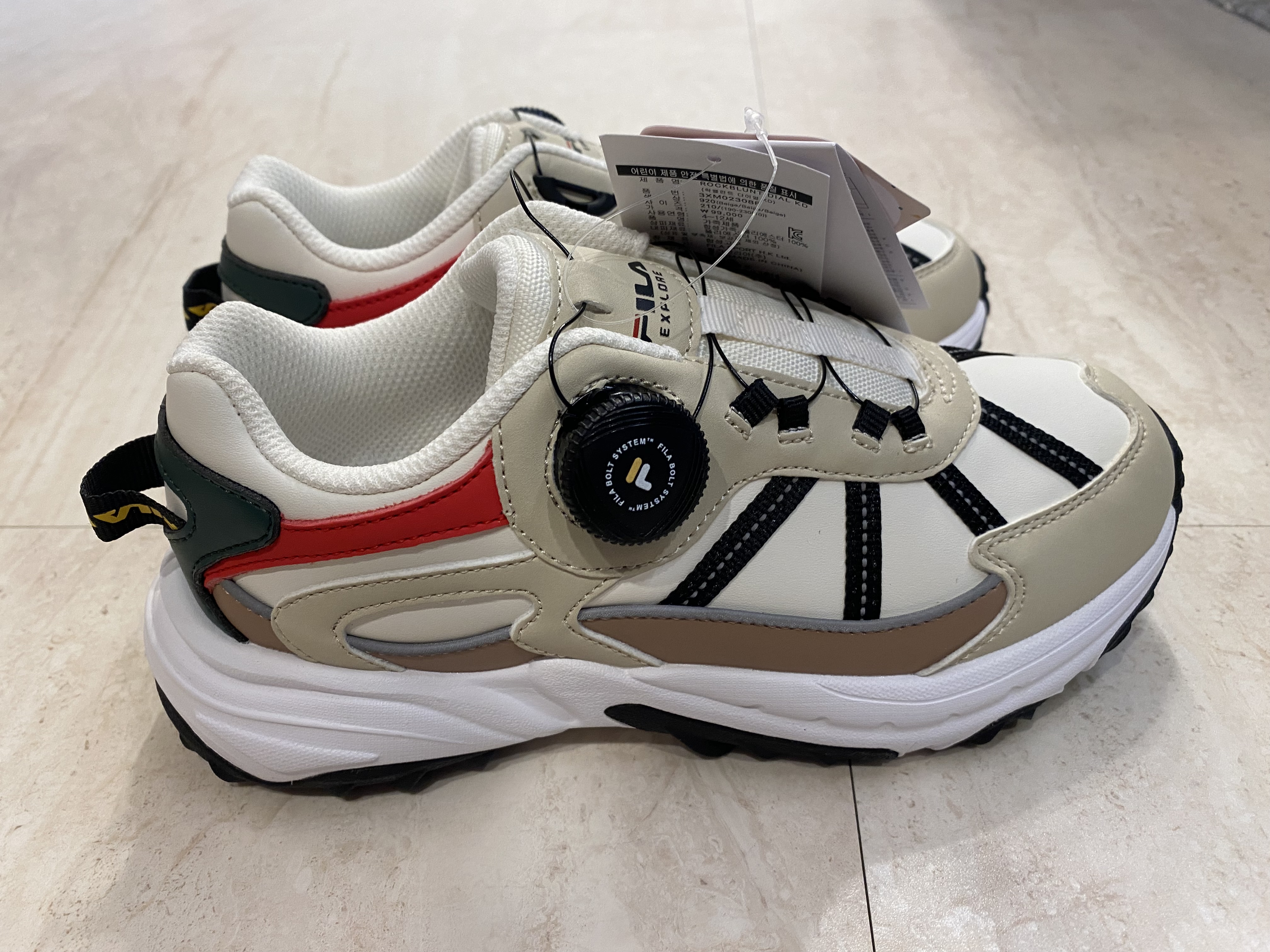 오프라인 할인매장에 그냥 뭐가 있나 보러 갔다가 아들이 다이얼 운동화에 꽂혀 그 자리에서 바로 한번 신어보고 맘에 들어 선택한 신발이 휠라 키즈 오크먼트 다이얼 KD 운동화였습니다.
