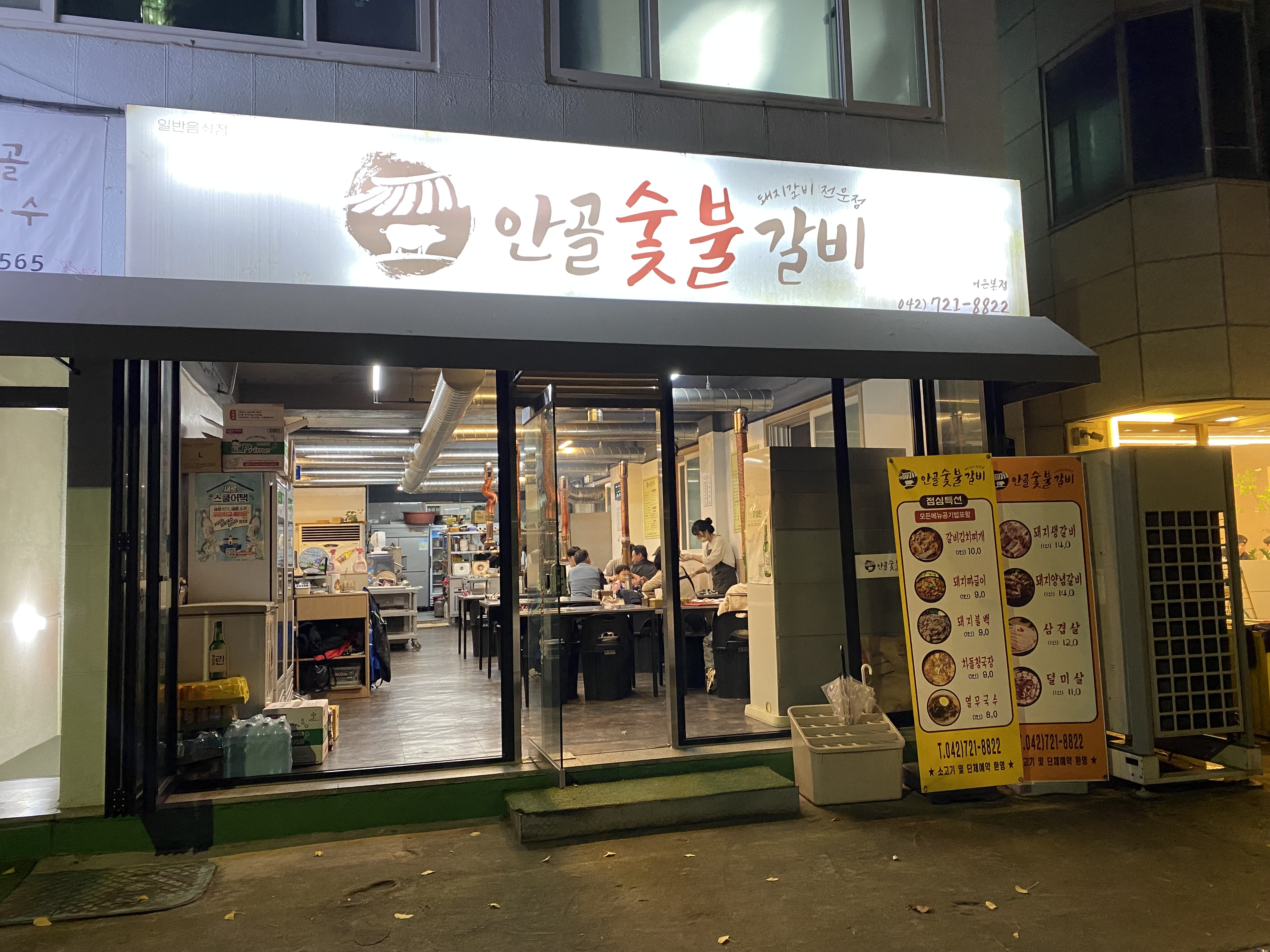 다시 본론으로 들어가서 카이스트 캠퍼스를 둘러보고는 천안으로 넘어가기 전 저녁을 먹고 떠나기로 했는데 카이스트 동네 맛집을 여러 군데 검색을 해보니 돼지갈비 맛집이 여러 군데 뜹니다. 글 보고 있자니 간만에 양념갈비 뜯고 싶어서 고민을 하다가 '안골숯불갈비' 여기로 정했습니다.