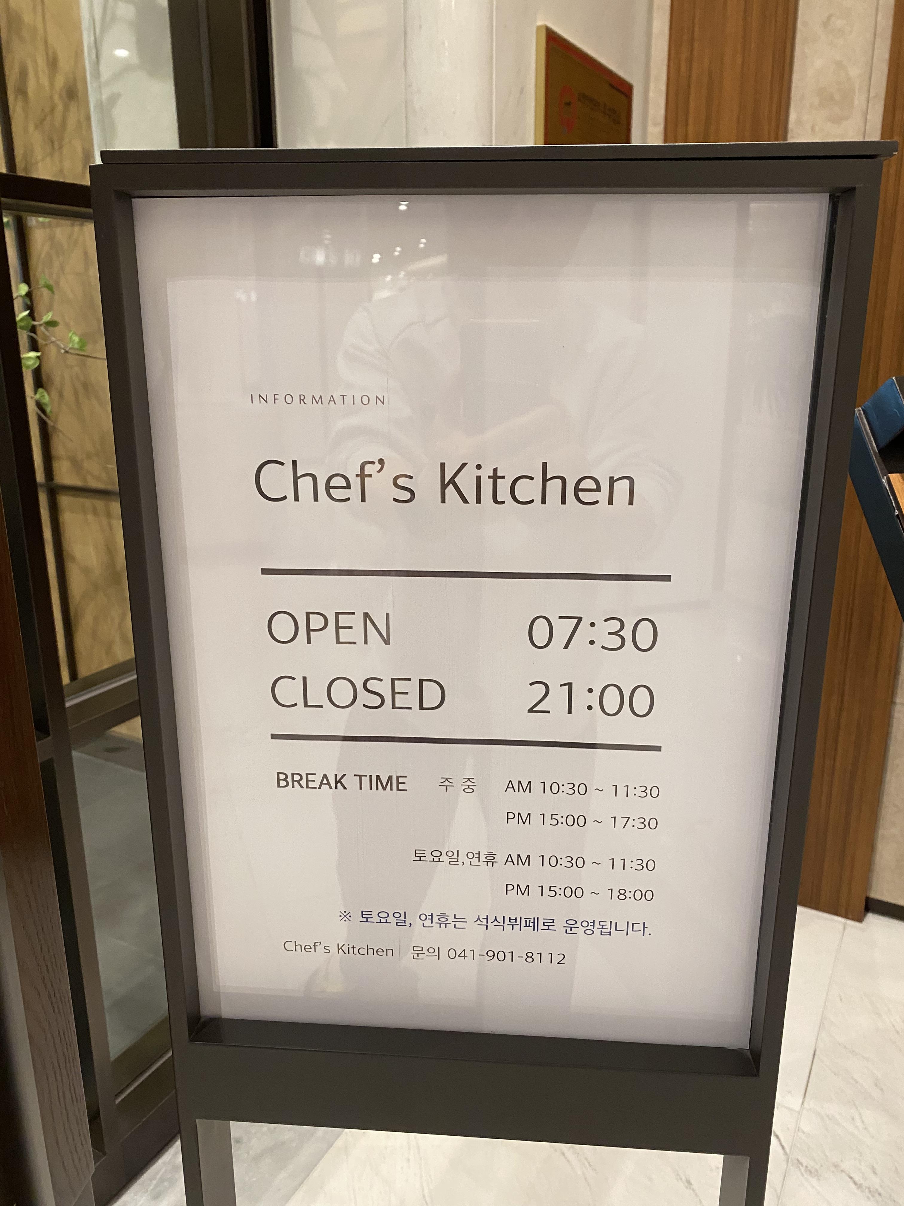 조식 시간은 아침 7시 30분부터 가능합니다. 'Chef's Kitche'상호를 걸고 운영하는 조식 식당인데 음.... 입구부터 분위기가 심상치가 않습니다. 왠지 고급 져 보인다랄까요?