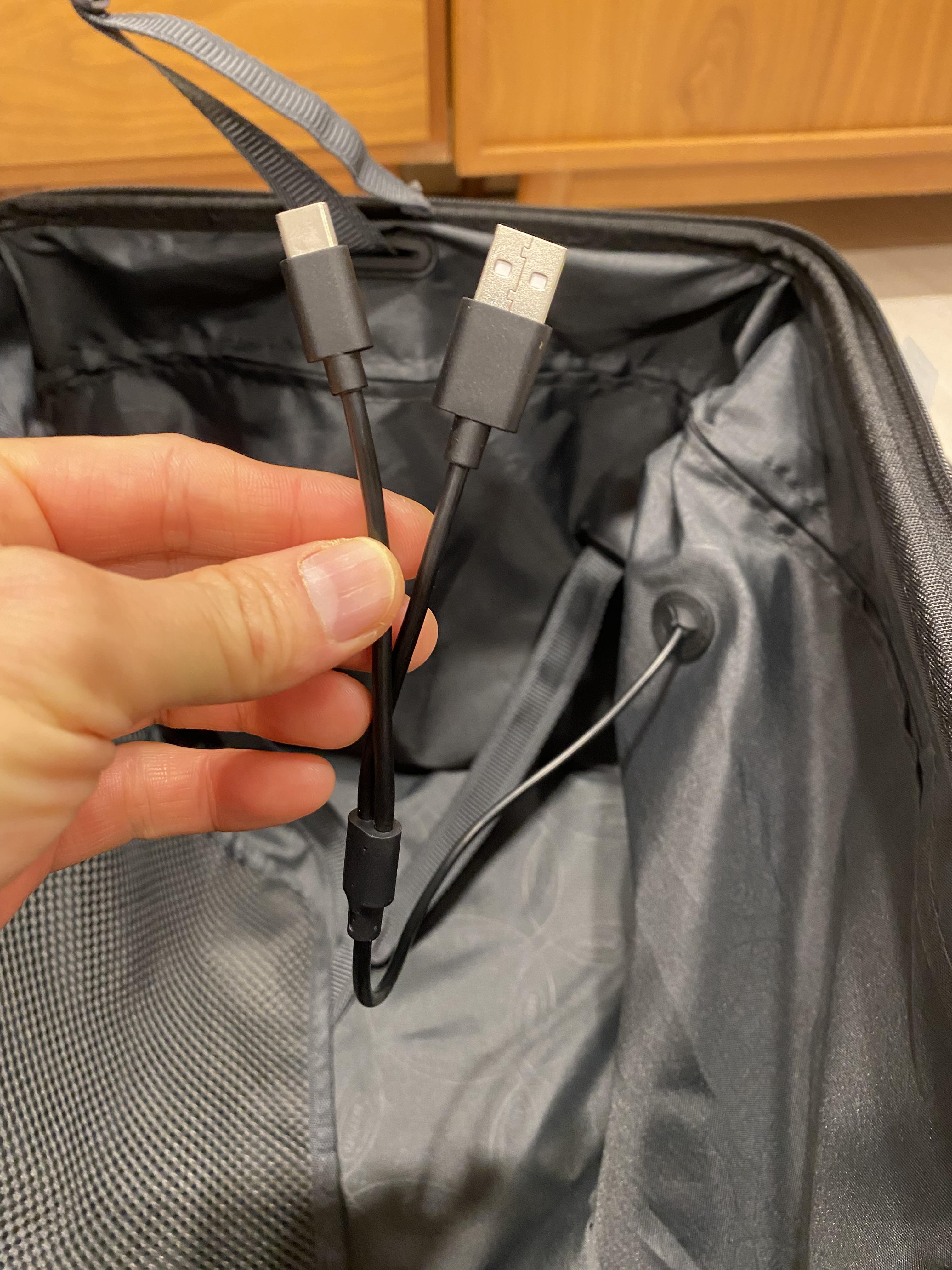 요렇게 캐리어 내부에 보조 배터리 연결 가능한 케이블도 마련되어 있습니다.