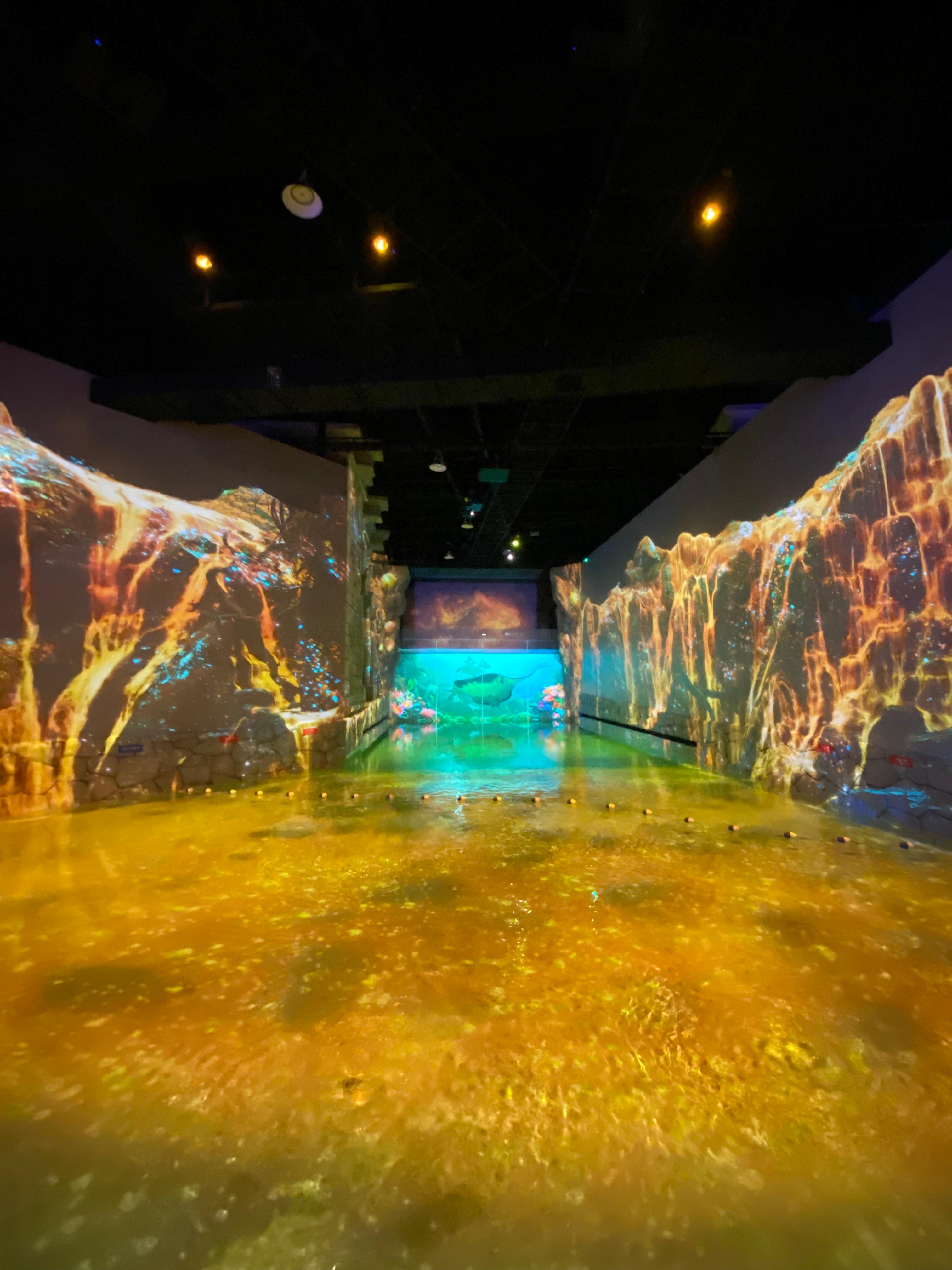 워터월드 제주는 그럼 뭐 하는 곳이냐? 여기가 원래는 초대형 사우나 시설이었는데 미디어 아트 센터로 개조를 해서 바닥에는 발목까지 차오르는 물속에서 다양한 미디어 아트를 체험하는 공간입니다. 제주도에 미디어 아트센터가 크게 생기고 인기를 얻어서 그런지 여러 군데 아트센터가 있더라고요. 그중에 저희는 여기 워터월드 제주를 방문해 봤습니다.