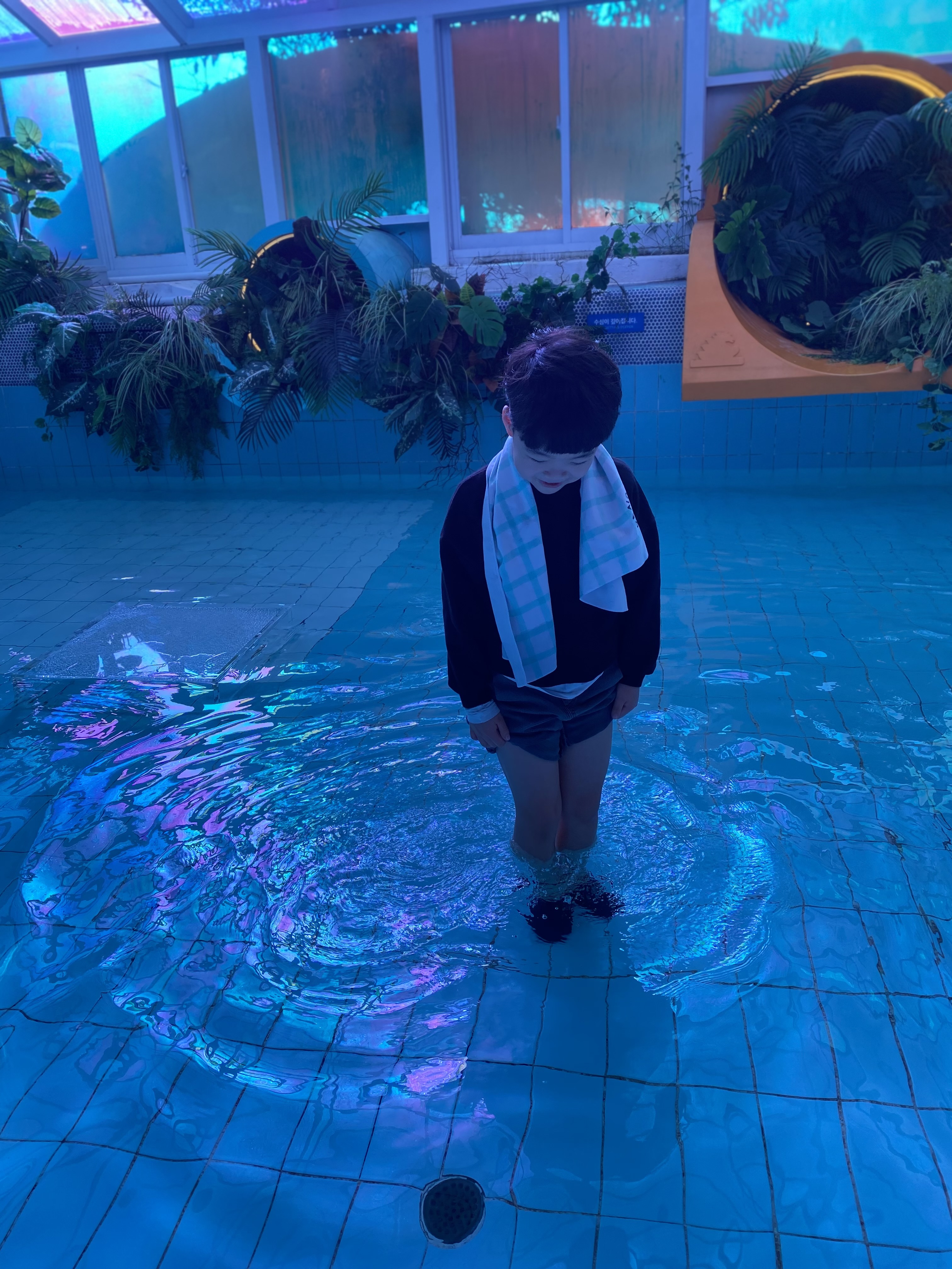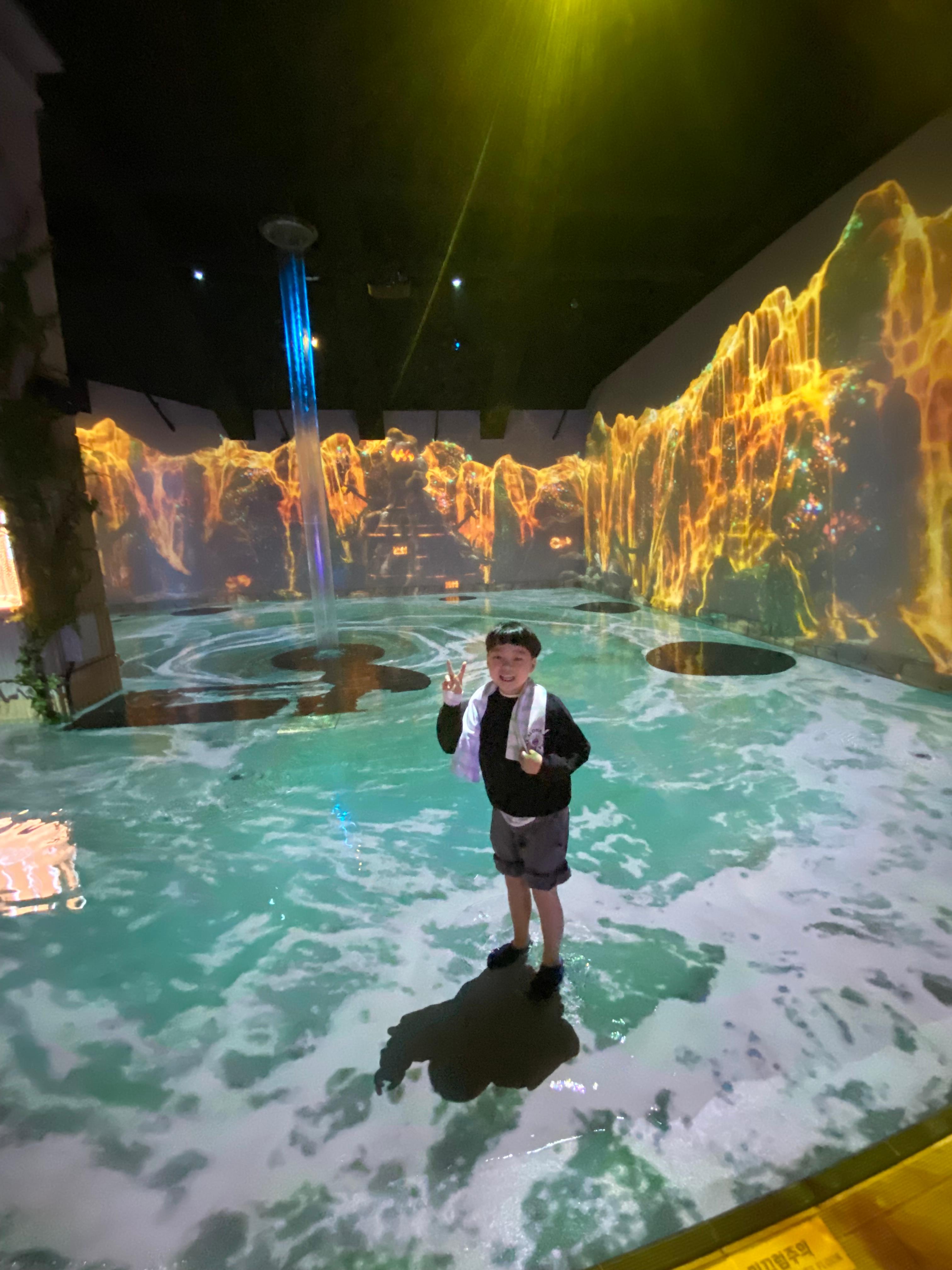 마지막 열 번째 방까지 쭉~ 둘러봤는데 오픈런을 해서 그런가 아님 평일 여행을 해서 그런가 방문객이 저희만 있어서 생각보다 엄청 빨리 돌아봤습니다. 후기를 보면 곳곳을 돌아다니며 사진도 찍고 그러다 보면 두어 시간 금방 간다고 되어 있는데 저흰 사십 분 만에 코스 클리어~!!! 아들이 첨엔 신기해하다가 사진을 너무 많이 찍다 보니 마구 짜증을 내더라고요. 물 있는 공간은 그래도 즐겁게 돌아다녔는데 물 없는 공간은 시시하다고~~ 역시 어린이들은 물이 최고!! 아트 .. 뭐 이런 거 다 필요 없는 거 같아요. 물만 있으면 만사 오케이!!! 미디어 아트는 연인끼리 이쁜 추억사진 남기러 오면 좋겠다는 생각이 들었습니다. 그래도 제주 첫 관광지 코스로 들렀던 워터월드 제주 한번은 방문해 보시길 추천합니다. 참고로 탈의실 따로 없으니께 갈아입는 옷은 차에서 해결합니다.