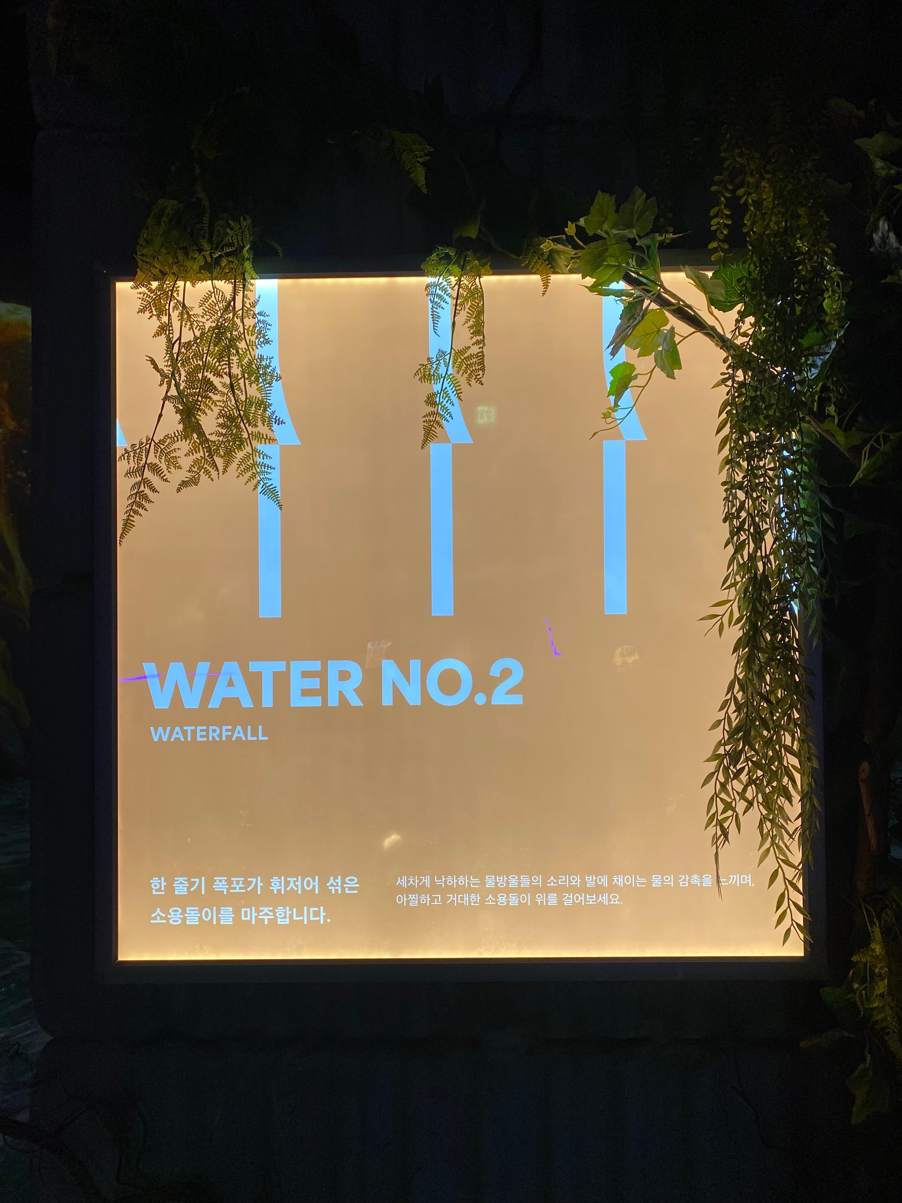 요렇게 각 섹터마다 들어갈 때 룸 넘버 표지판이 있습니다. 총 10개의 섹션이 마련되어 있고요~ 넓은 공간에 다채로운 미디어 아트가 물과 함께 만나 다양한 느낌의 이쁜 사진을 남길 수 있어서 좋았습니다.