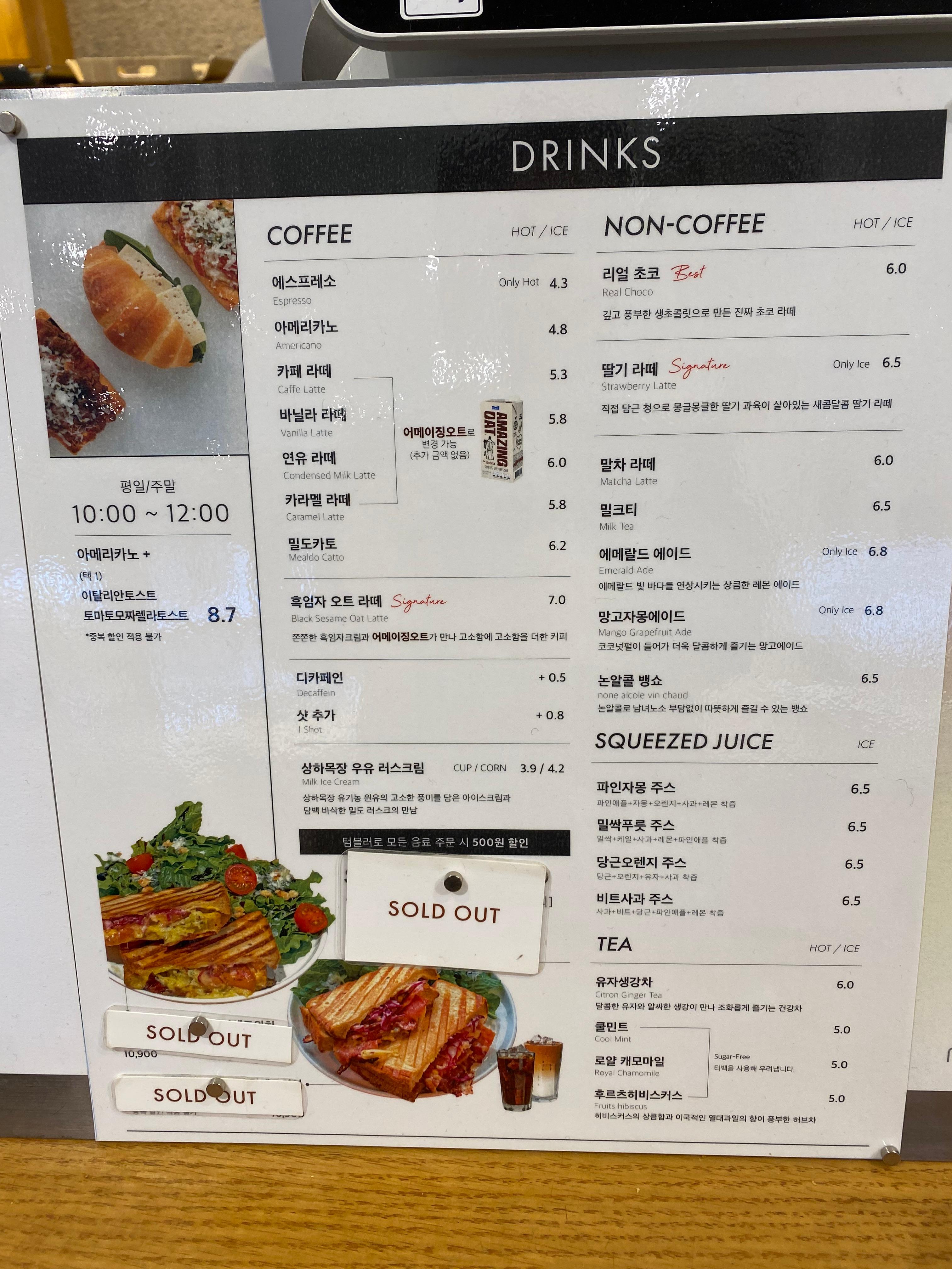 눈에 띄게 만든 음료들만 따로 이미지 메뉴로 붙여놨는데 눈길이 절로 갑니다.