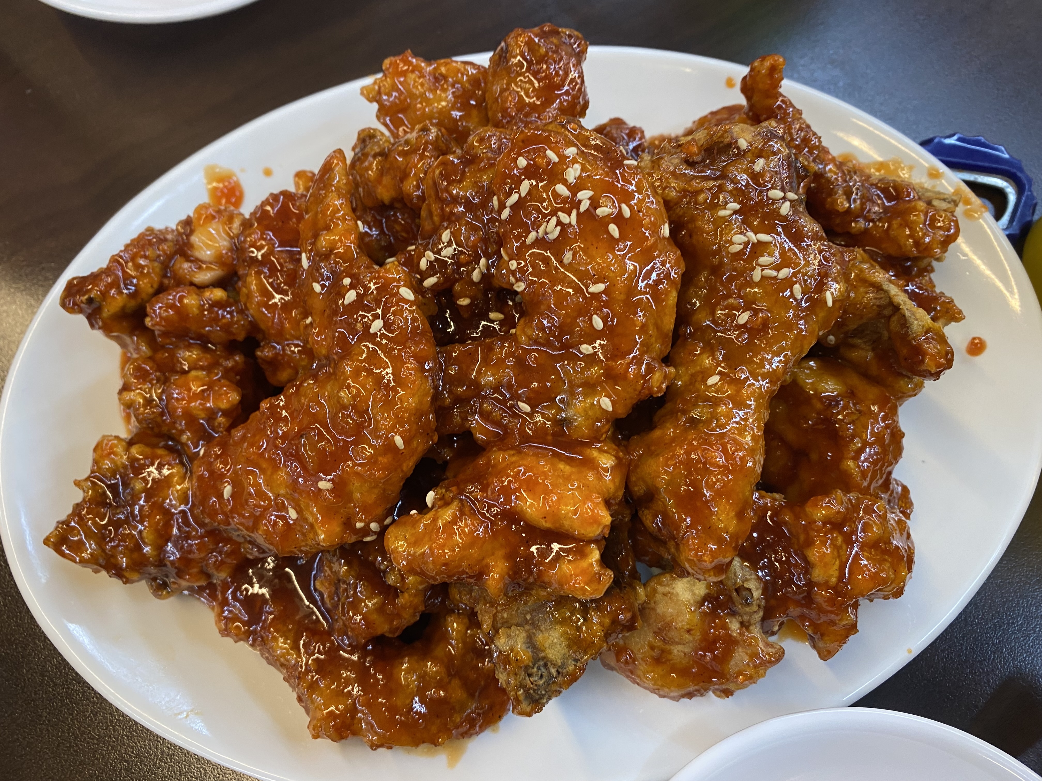먹음직스러운 양념치킨이 나왔습니다.