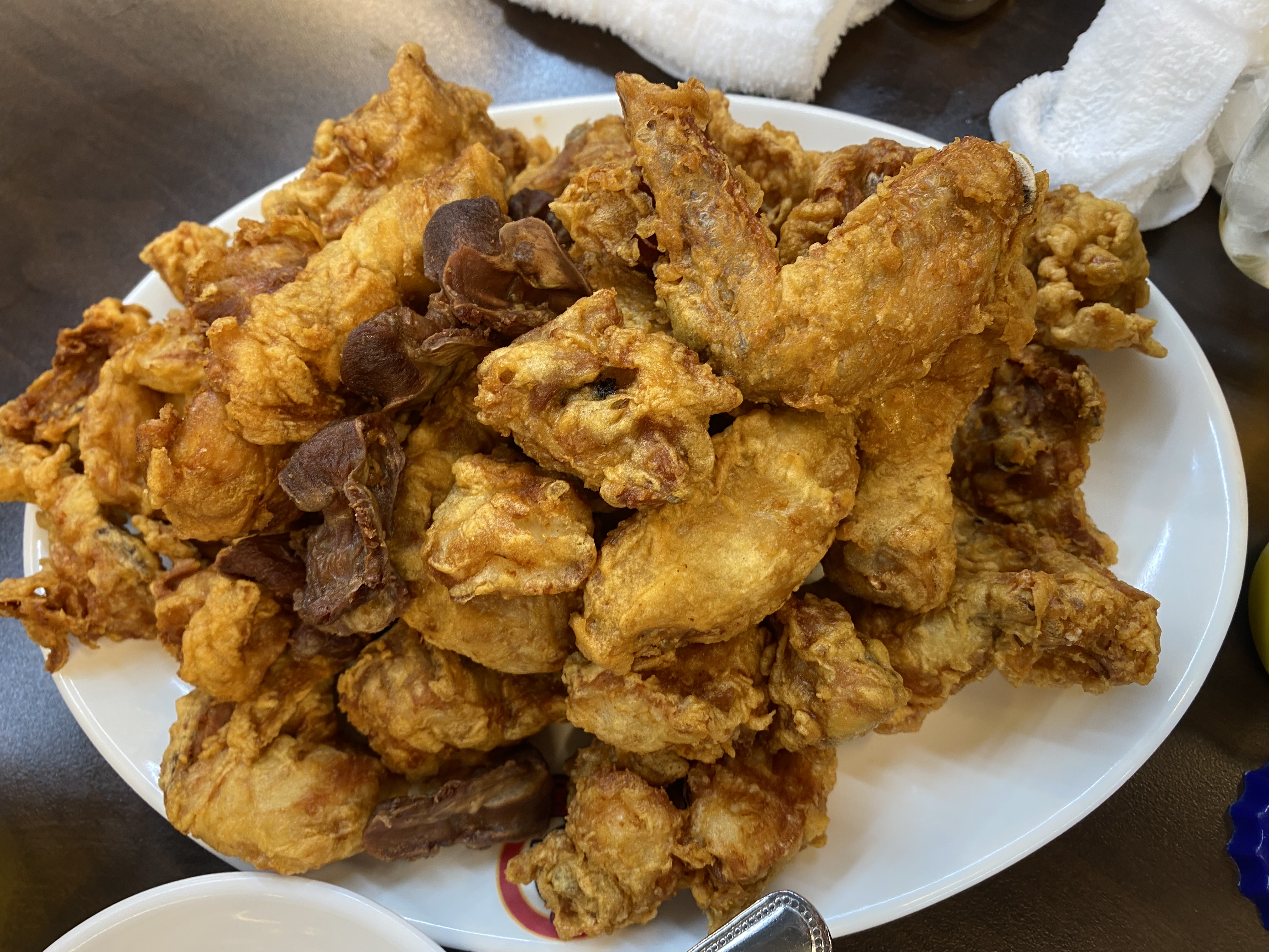 똥집이 함께 튀겨진 후라이드 한 접시 가득 나왔습니다.