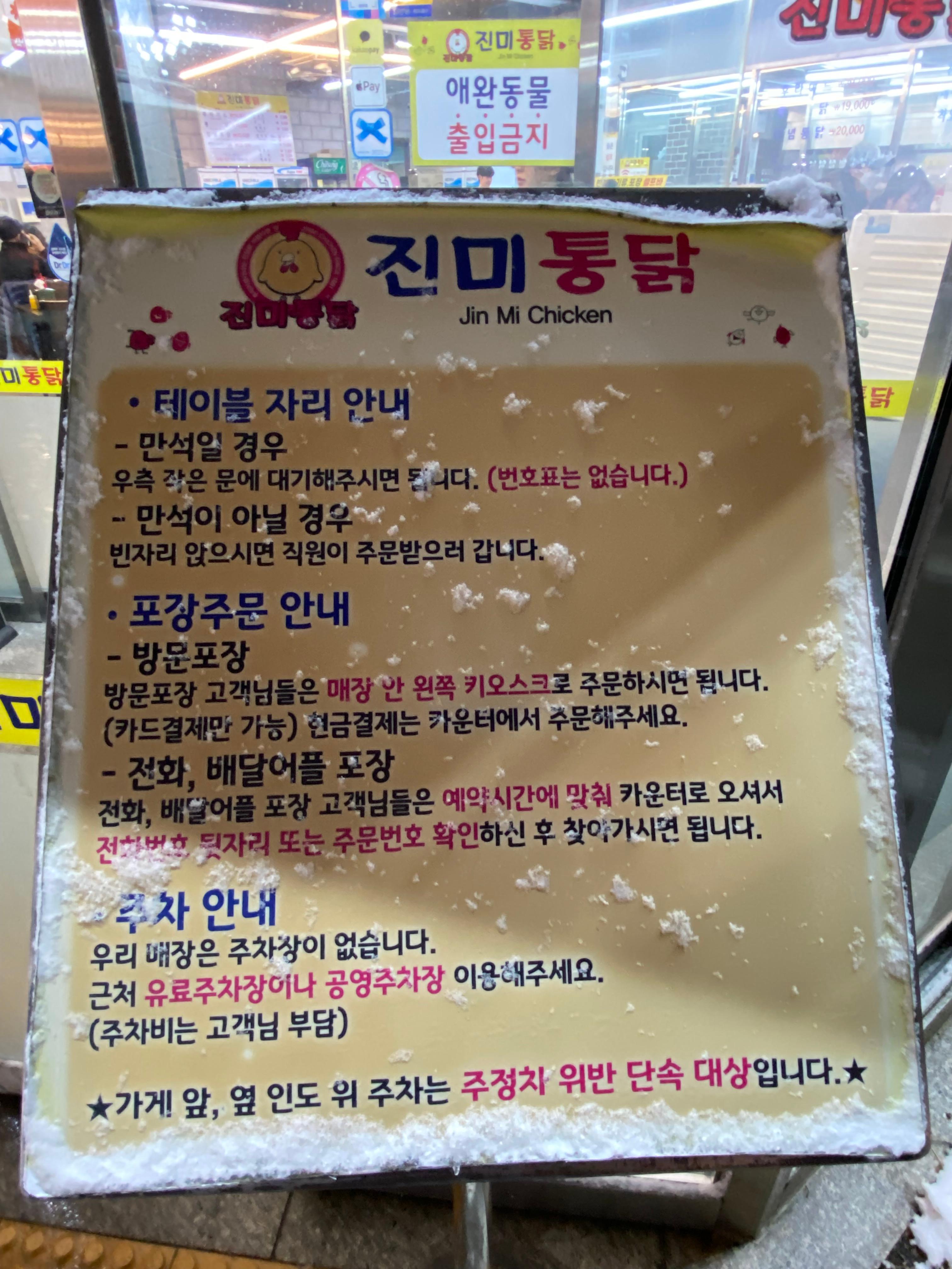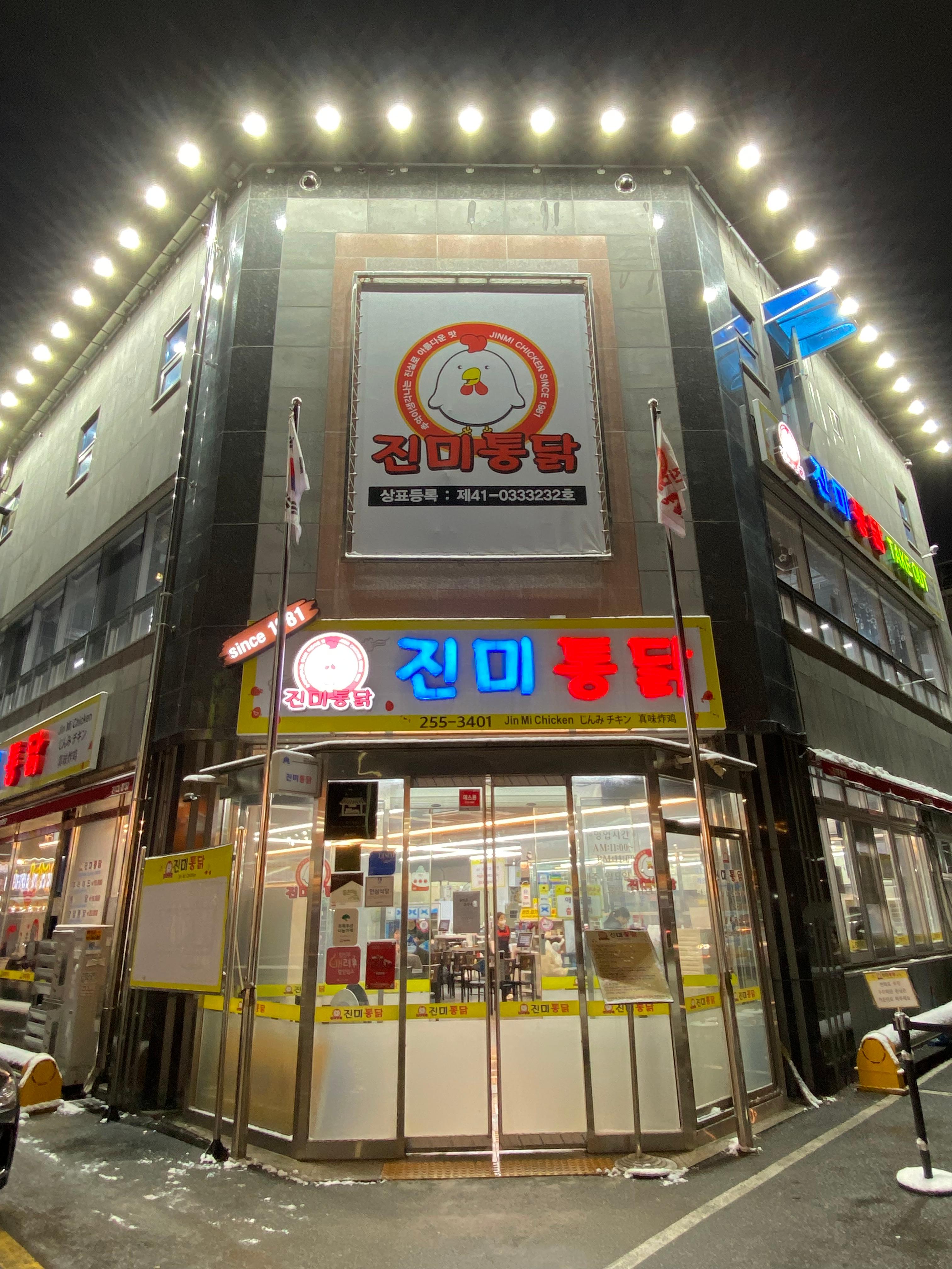 눈이 너무 많이 오기도 했고 설 연휴라 혹시나 싶어 웹에서 미리 영업하는지 알아봤었거든요. 그런데 역시나 웹에서는 방문 당일 휴무한다고 안내가 되어있더란 말씀! 수원 통닭거리는 꼭 한번 가보고 싶기에 굳이 진미 아니라도 맛난데 가서 통닭거리 느낌을 즐기고 싶었습니다. 차를 몰고 일단 통닭거리로 가는데 멀리 진미 통닭 건물에 불이 환하게 밝혀져 있고 사람들이 북적북적~~ 오예~~ 오늘 밤은 치맥 파티다~!!!!!