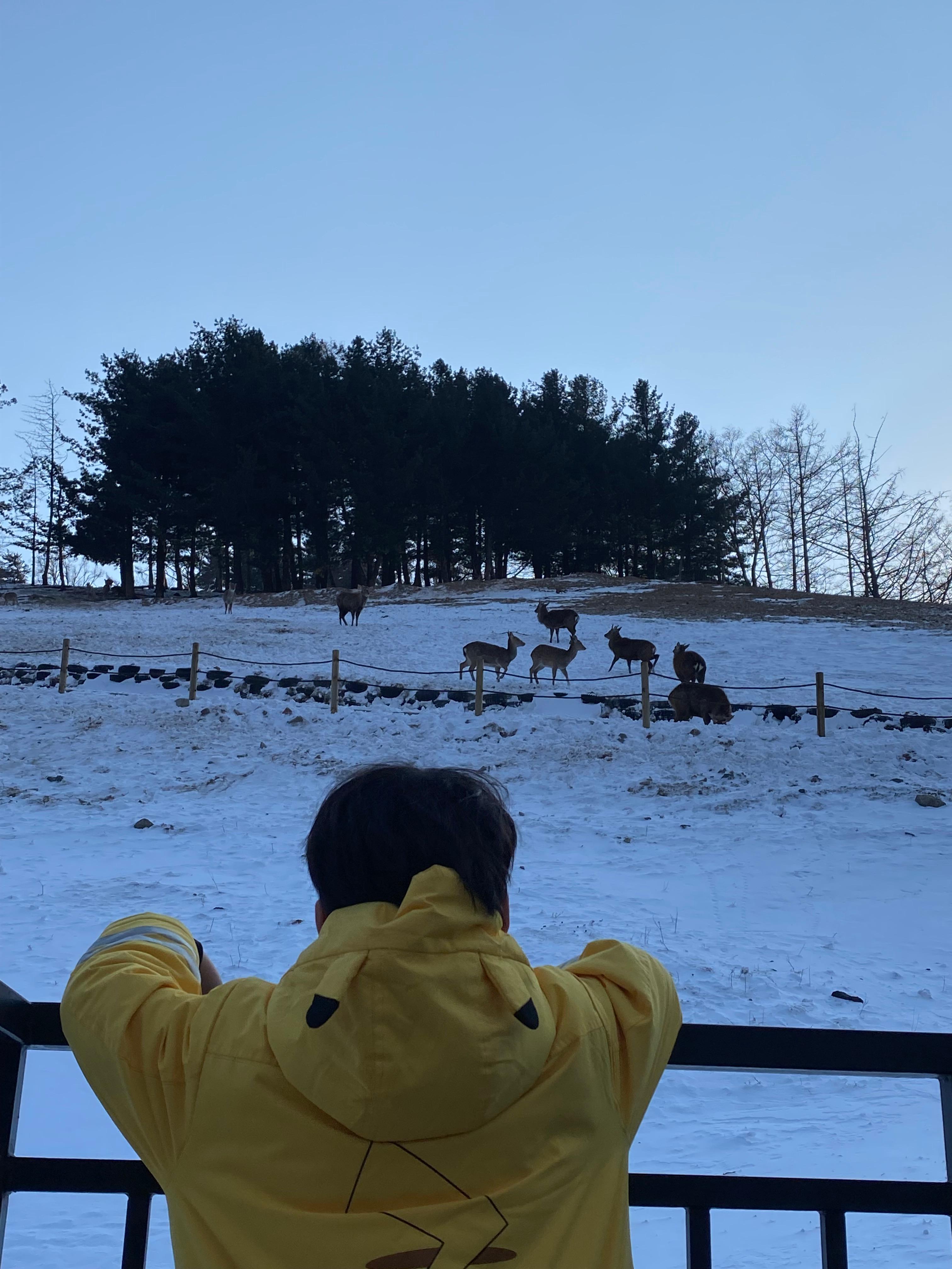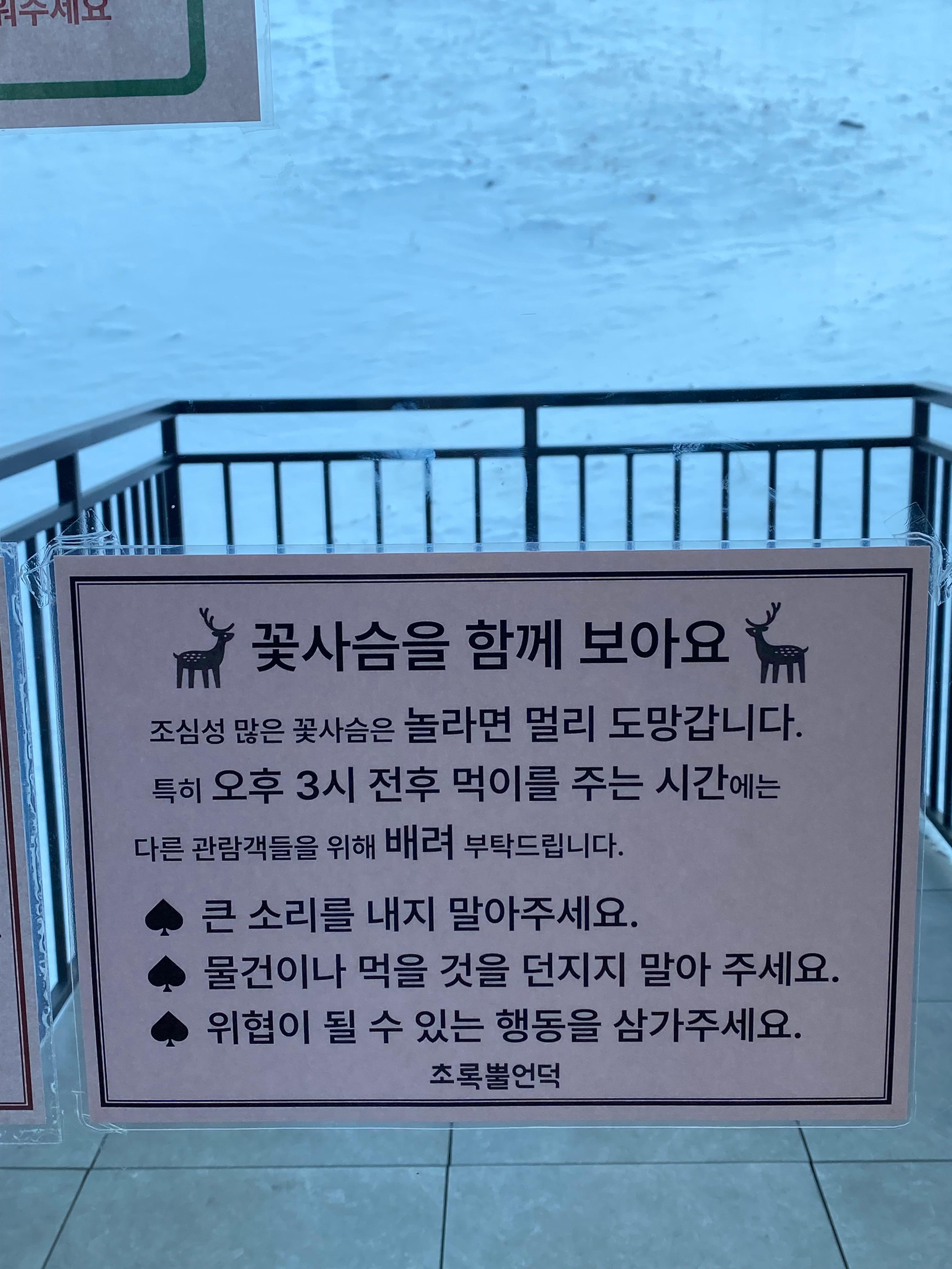 민감한 사슴이라 언덕 끄트머리에 많은 사슴들이 내려오지 못하고 멀뚱멀뚱 사람을 관람하는 것인지~ 가까이 용기 내어 내려온 사슴들은 방문객들의 좋은 사진 배경이 되어주는 모델 역할을 해주었죠^^