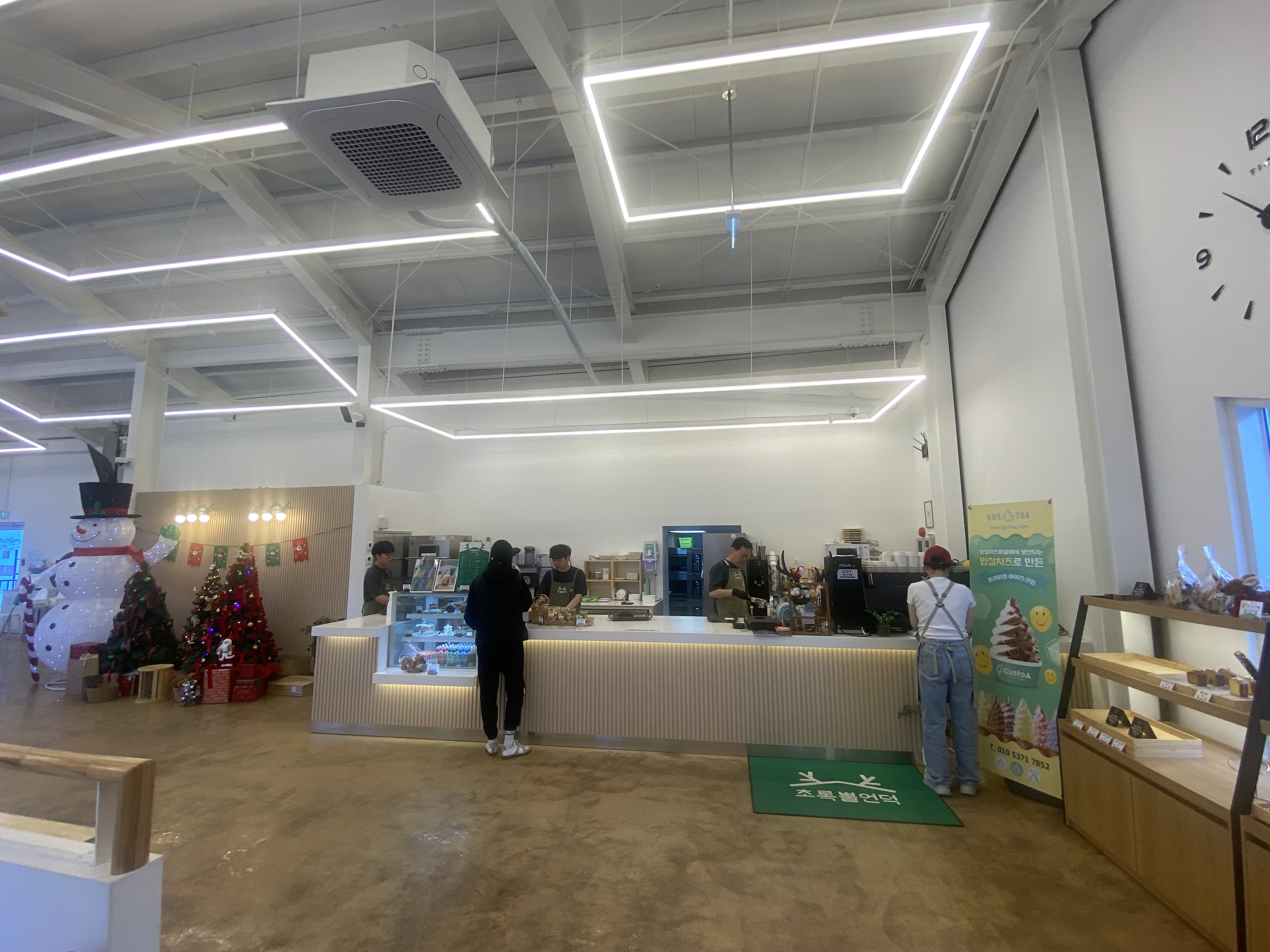 태백 여행 중 심신이 지쳐서 잠시 휴식의 시간이 필요했습니다. 카페 검색을 해봤고요~ 사슴을 볼 수 있는 카페가 있다고 해서 가봤지요. 바로바로 '초록뿔 언덕 카페'입니다. 외부 건물 크기에 좀 놀랐는데 실내 들어가서는 더욱 놀랬습니다.