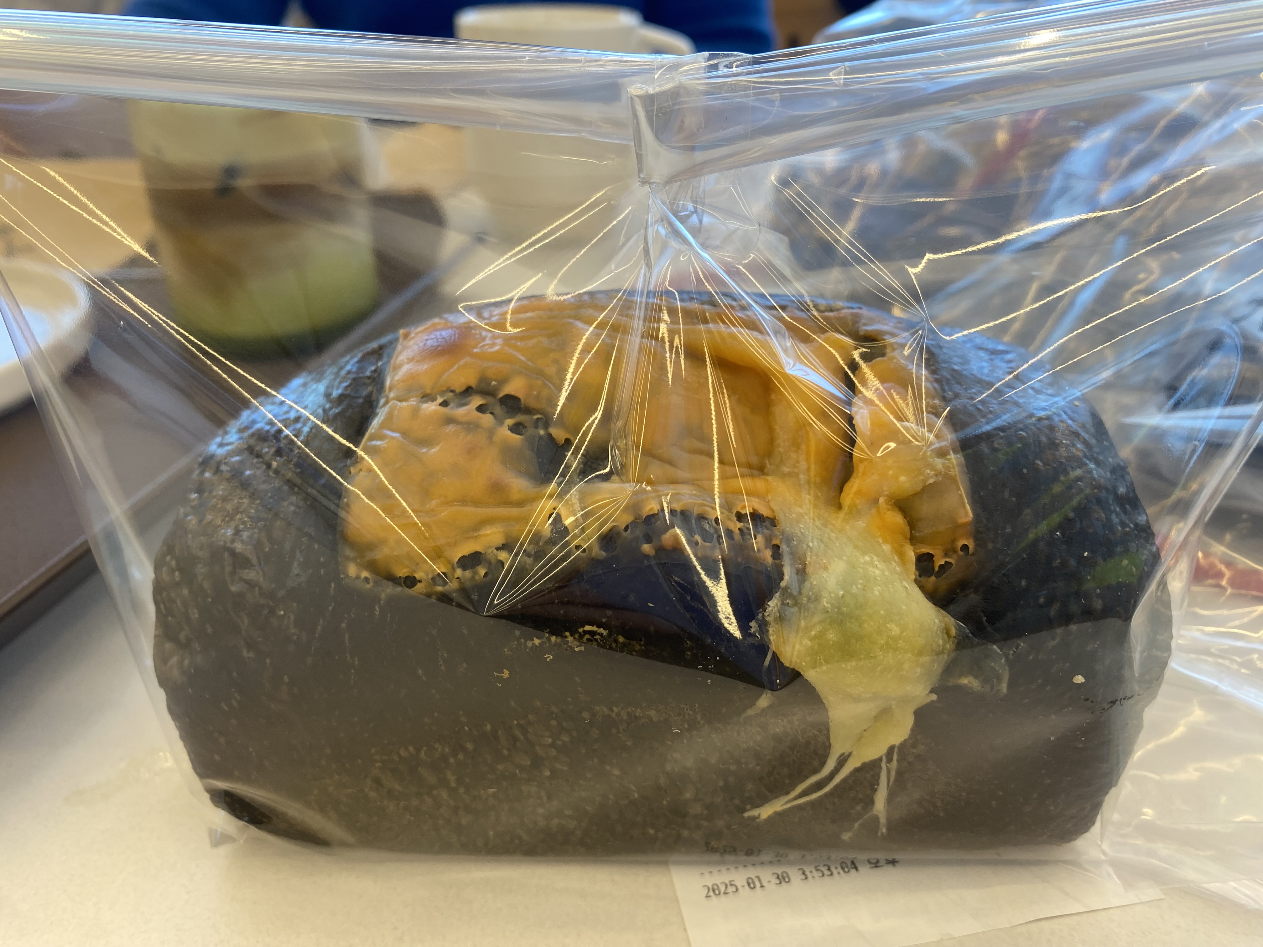 다음날 먹을 일용할 양식으로 포장 주문한 먹물 치즈 식빵은 양파가 들어가 있어서 향이 살짝 비추인데 맛은 짭자리 달콤한 맛이라 입에 착착 감긴다고 할까요? 양파 향 호불호 갈리지만 그 정도 향 극복 가능하면 맛보는 걸 추천합니다. 소금빵은 뭐~ 설명이 필요없겠쥬? 아들도 맛있다고 엄지 척! 순삭 했습니다. 태백 여행에서 잠시 쉬어가는 카페로 매우 만족했던 초록뿔 언덕 카페 되겠습니다.