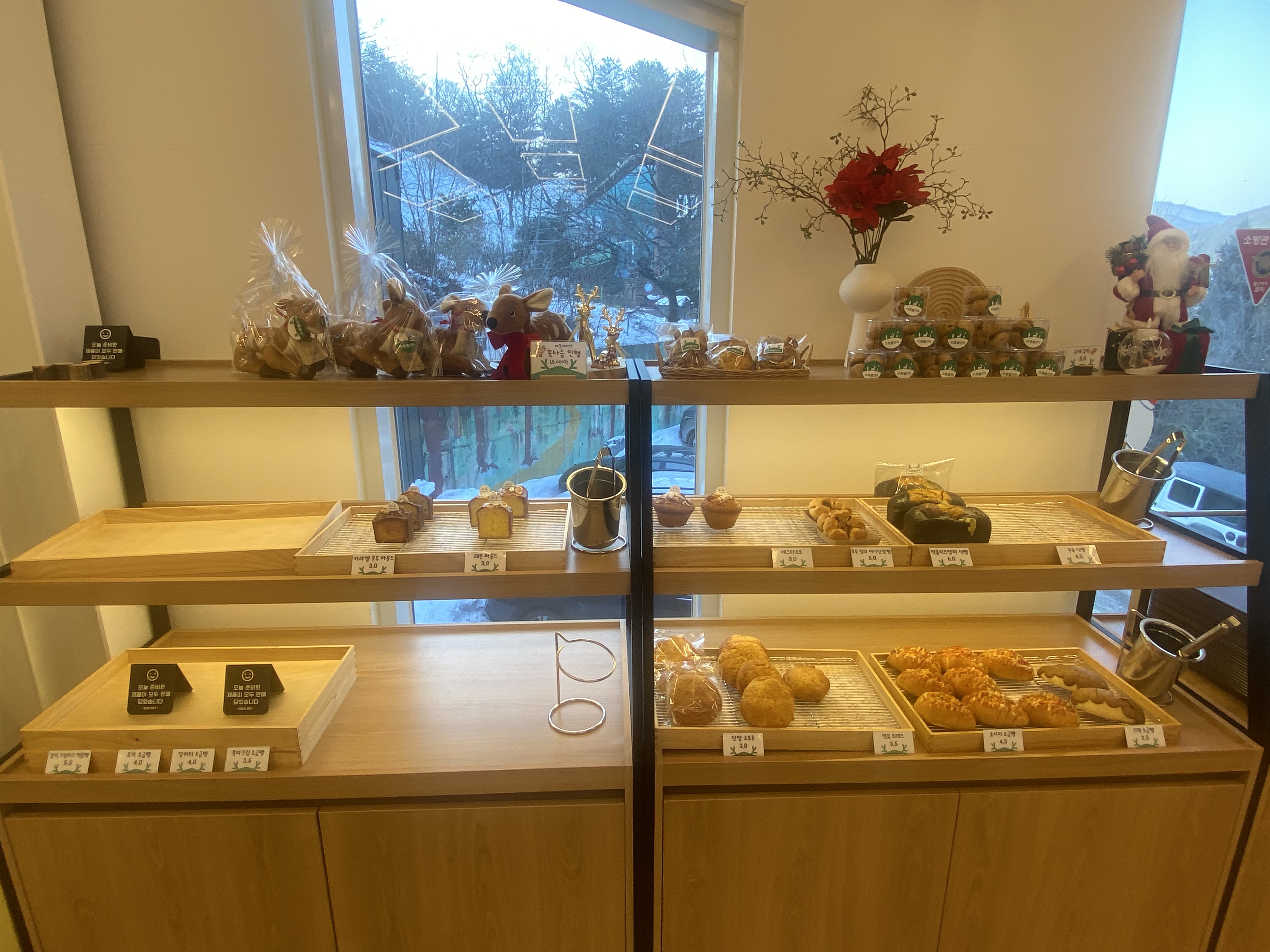 중간 사진에는 잘 모르겠으나 이미 만석에 엄청난 인파가 초록뿔 언덕 카페를 가득 채우고 있었습니다. 빵들도 인기 있는 메뉴는 벌써 품절이 되어 버렸고요.ㅠㅠ