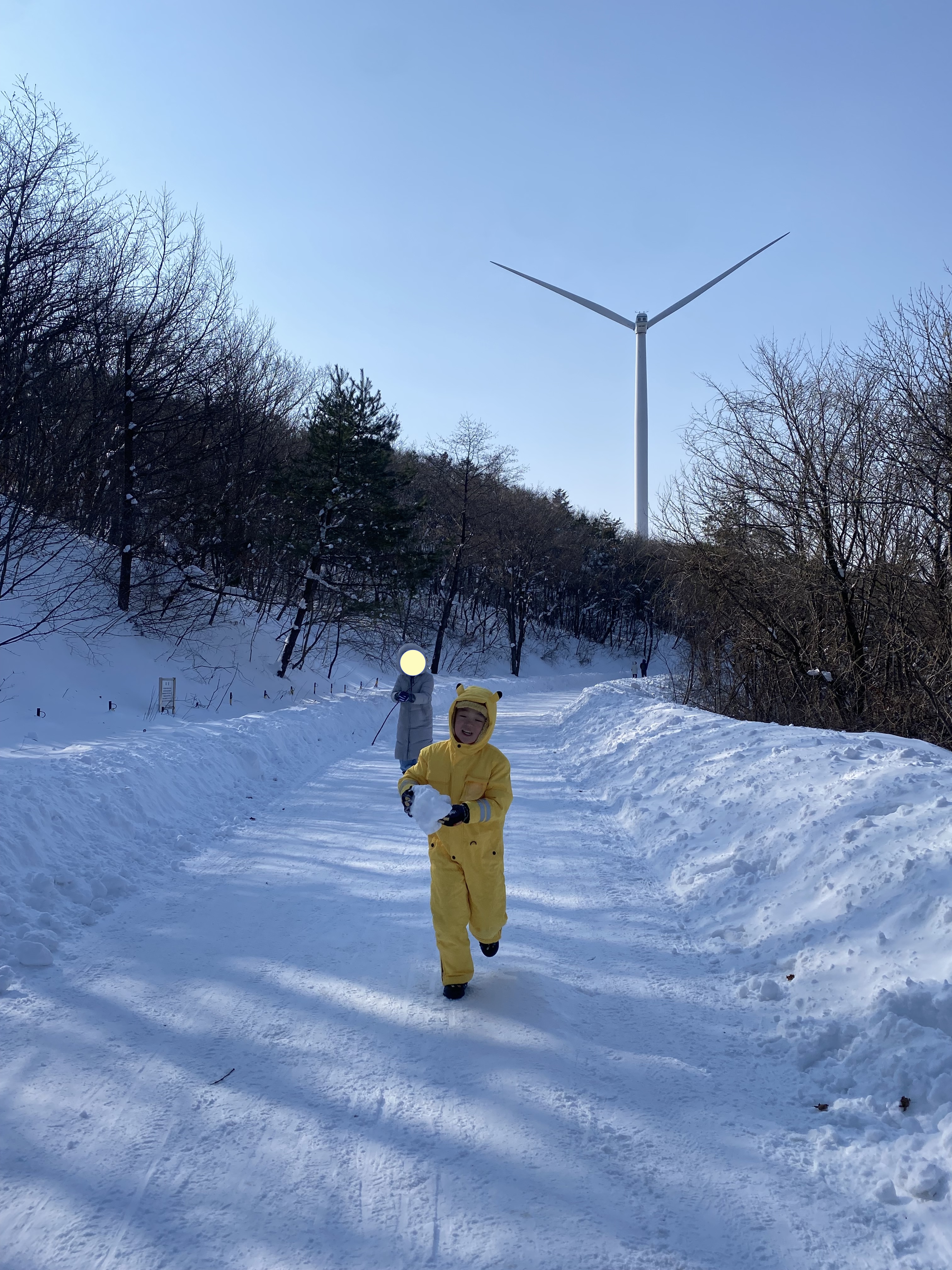 풍력발전기가 있는 곳으로 한참을 들어가면 비박을 할 수 있는 장소가 나오는데 가급적 SUV 차량으로 이동하시길~ 4년 전 차를 몰고 갔던 길을 아들 눈썰매 태워서 끌고 가봤습니다. 너무 힘들어 결국 중간에 유턴해서 돌아올 수밖에 없었습니다. 만항재 갈림길에 눈밭에 뒹굴고 나면 잠시 쉬어갈 수 있는 휴게소가 마련되어 있는데 눈썰매 대여도 해주고요, 뜨끈한 어묵 한 사발에 감자전 꼭 맛보시길 강추합니다. 만항재는 진짜 태백, 정선, 영월 여행할 때 반드시 들러야 할 곳입니다. 강추!!!!
