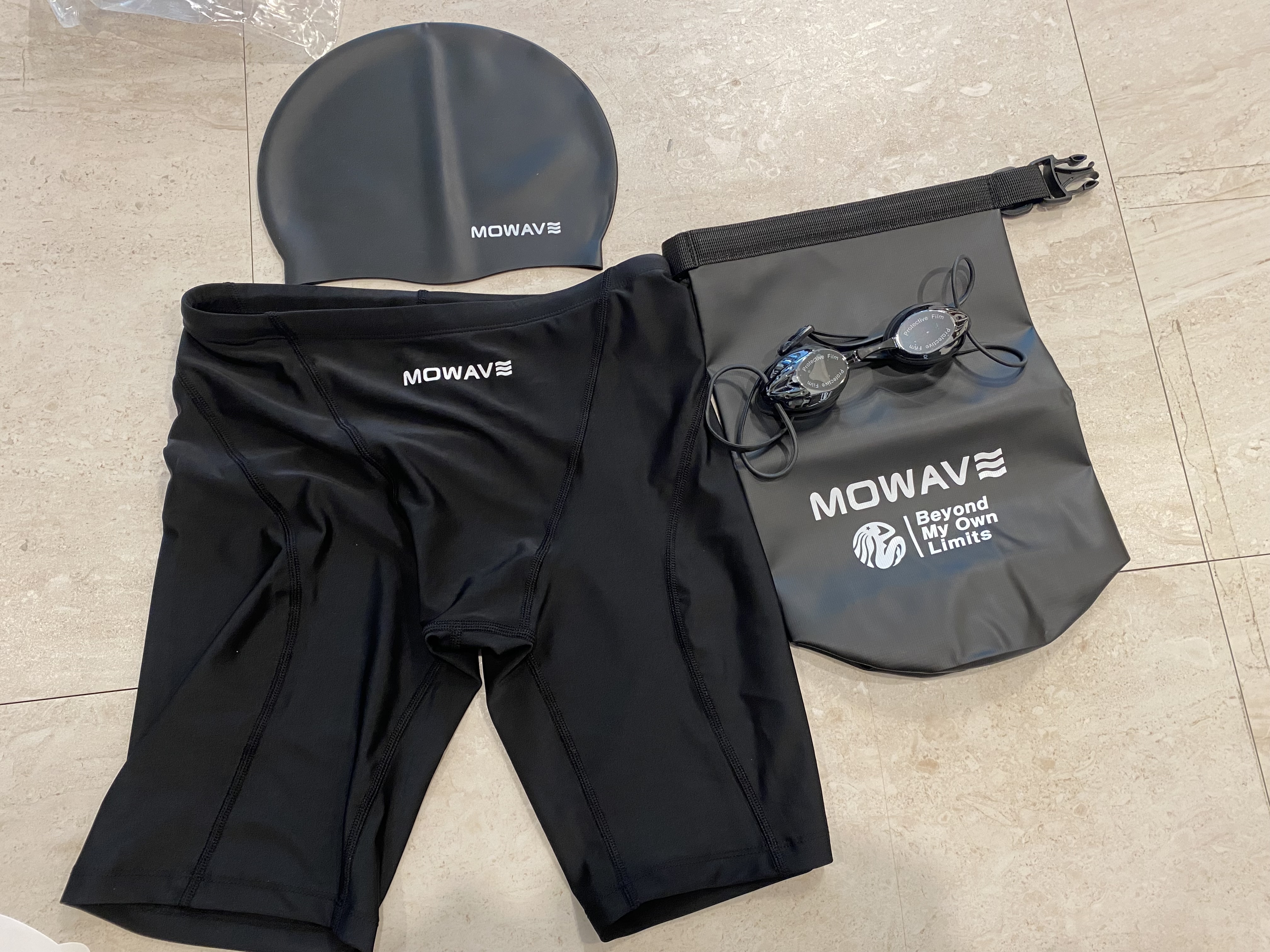 잠시 고민을 하다가 일단 사보고 품질이 너무 파이면 바로 환불시키기로 하고 29,900원에 구입한 '모와비 남성 5부 사각 수영복 4종 세트'입니다. 수영모, 수경, 수영복, 방수 가방 요렇게 구성되어 있습니다.